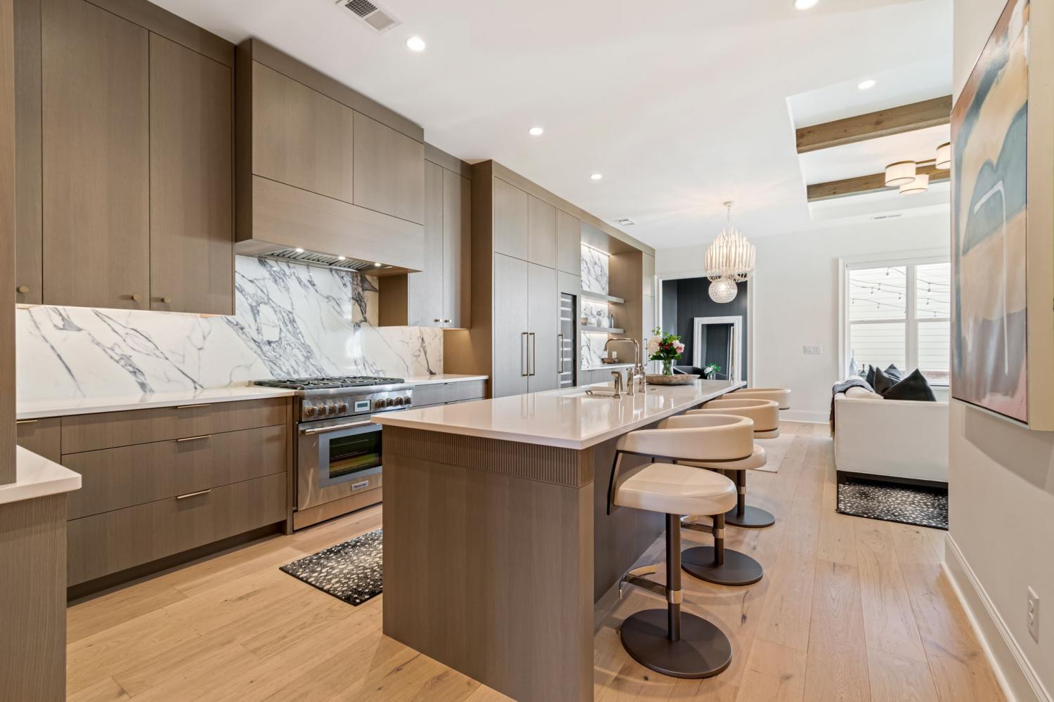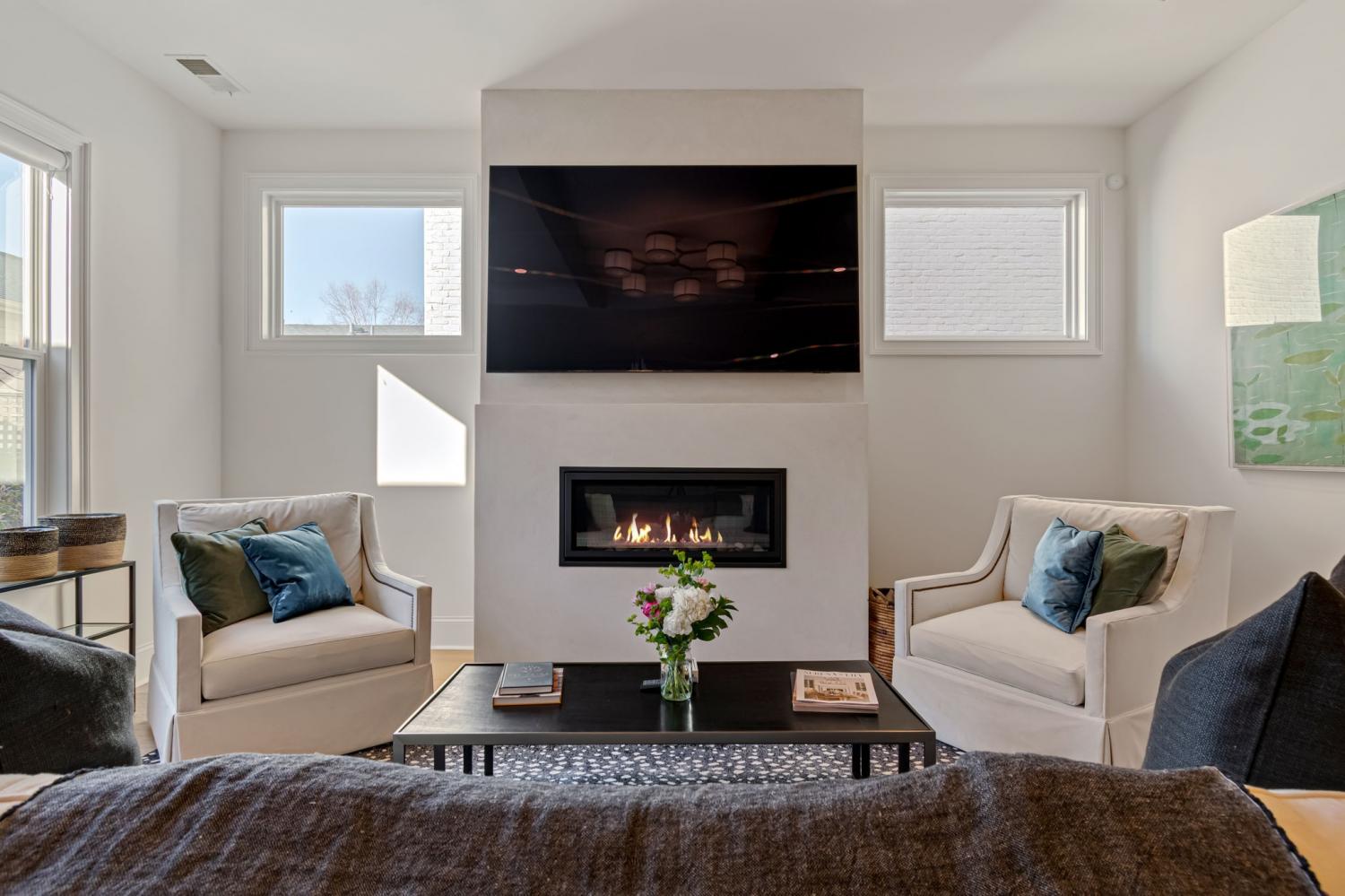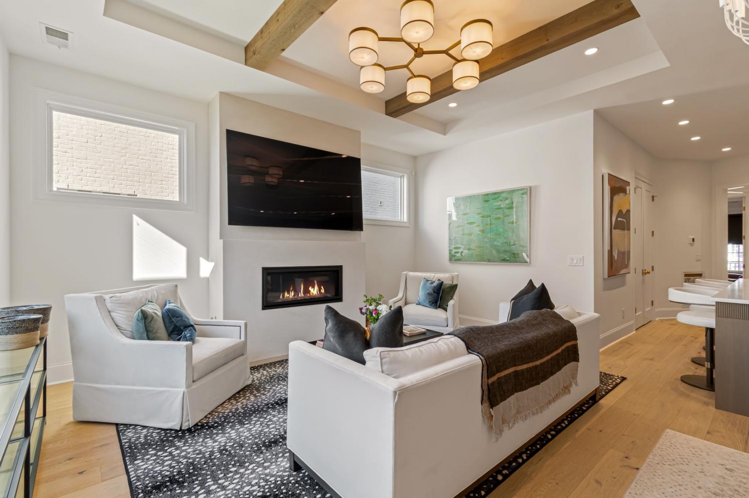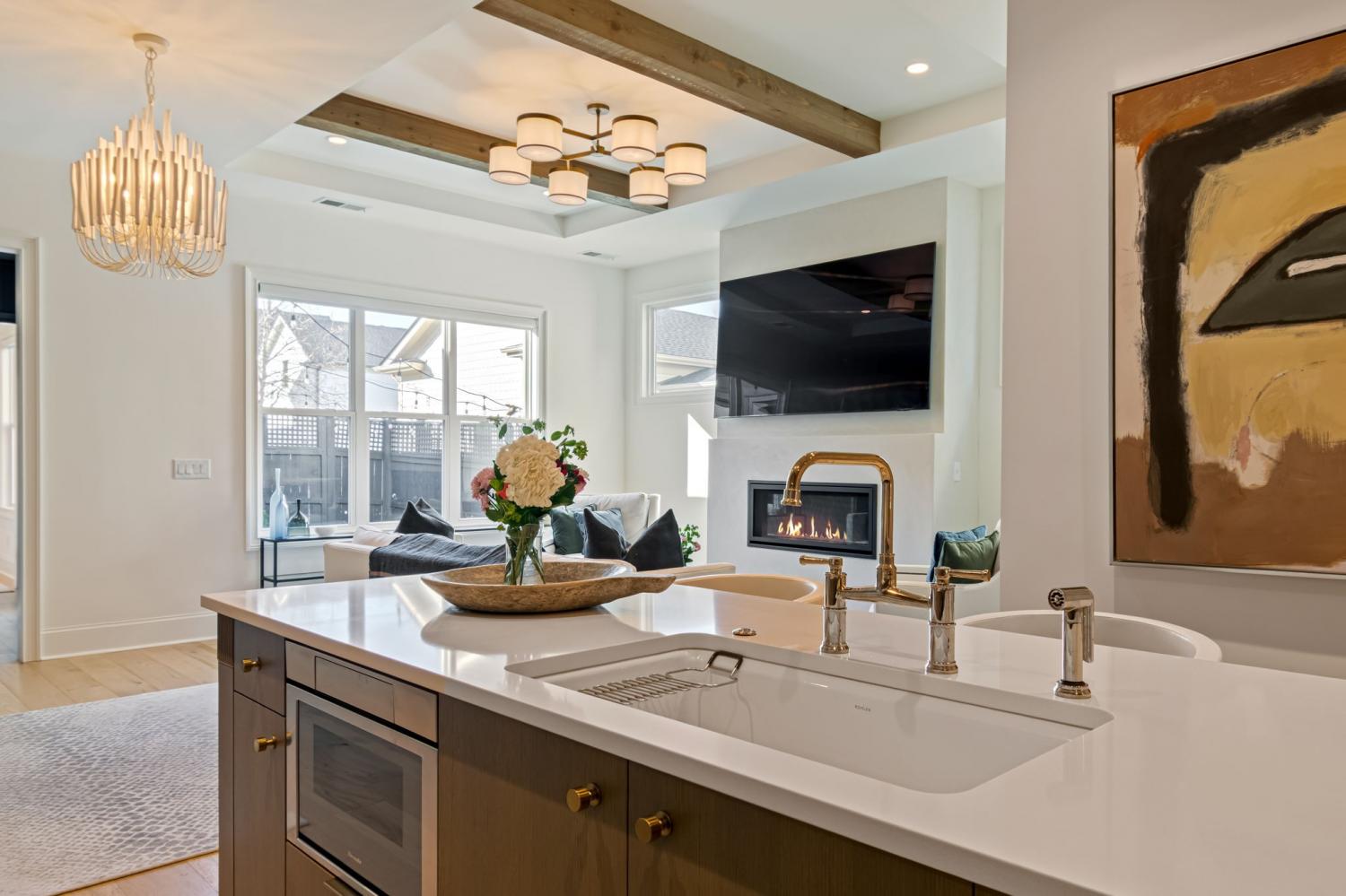 Prime corner Westhaven brownstone—fully rebuilt from the studs with impeccable attention to detail and designer finishes for the most discerning buyer. Flooded with natural light and facing protected green space with tranquil wildlife views, this home is a calm, elegant retreat just walkable to town, the clubhouse and school. A chef’s dream: custom 10' floor-to-ceiling rift-sawn oak kitchen and bar cabinetry by Nashville’s top luxury cabinetmaker, 8" European oak floors throughout, Thermador built-ins (24" refrigerator & freezer, 24" dual-temperature wine fridge, 36" 6-burner gas range with oven, dishwasher, built-in microwave), and an oversized 10' island with reeded detailing that seats four. A bespoke dual-door pantry and abundant storage keep entertaining effortless. The home has been fully rewired and upgraded with new outlets, switches and temperature-controlled 4" recessed LED lighting. Signature fixtures from Visual Comfort, Arteriors and Currey & Company, custom wood beams, and a sleek linear fireplace framed in white plaster set a warm, modern tone. Full window treatments in all rooms with motorized roller shades in main living area and main bedrooms. The primary suite is a spa sanctuary with marble floors and counters, an oversized shower with ROHL fixtures, a linen closet and an expansive 10' floor-to-ceiling California Closet. Upstairs: three bedrooms and two full baths; one bedroom transformed into a luxe dressing room with custom California Closet, vanity and desk, plus a versatile bonus room. Outdoors: new GOAT turf with a putting green, integrated new outdoor lighting, and full surveillance front and back with alarm system. New roof, new exterior paint, new tankless water heater, finished garage with abundant storage and polyaspartic coated flooring. Meticulous, move-in ready, and thoughtfully appointed—too many luxury details to list. Truly a low maintenance, lock & leave property!