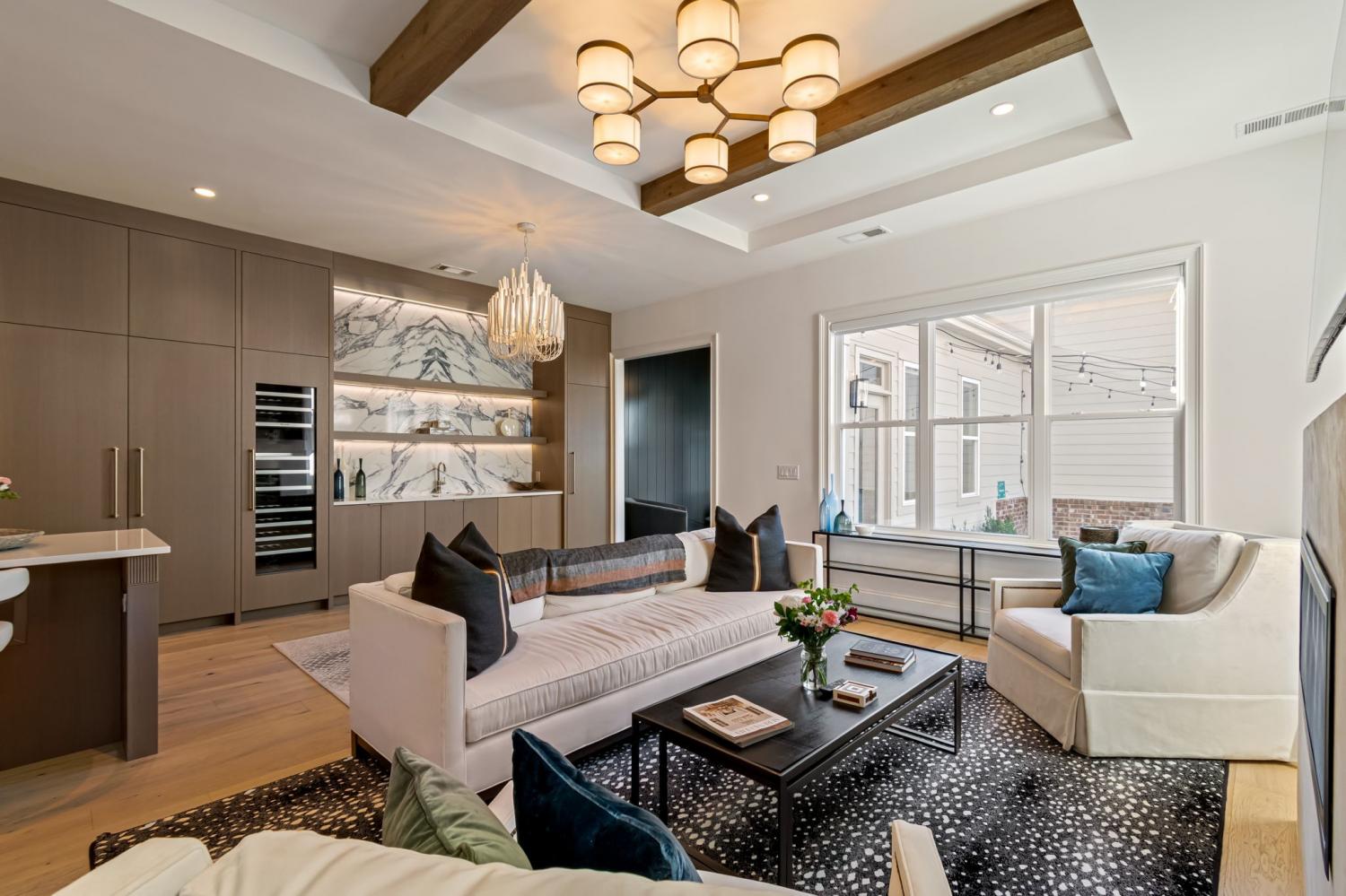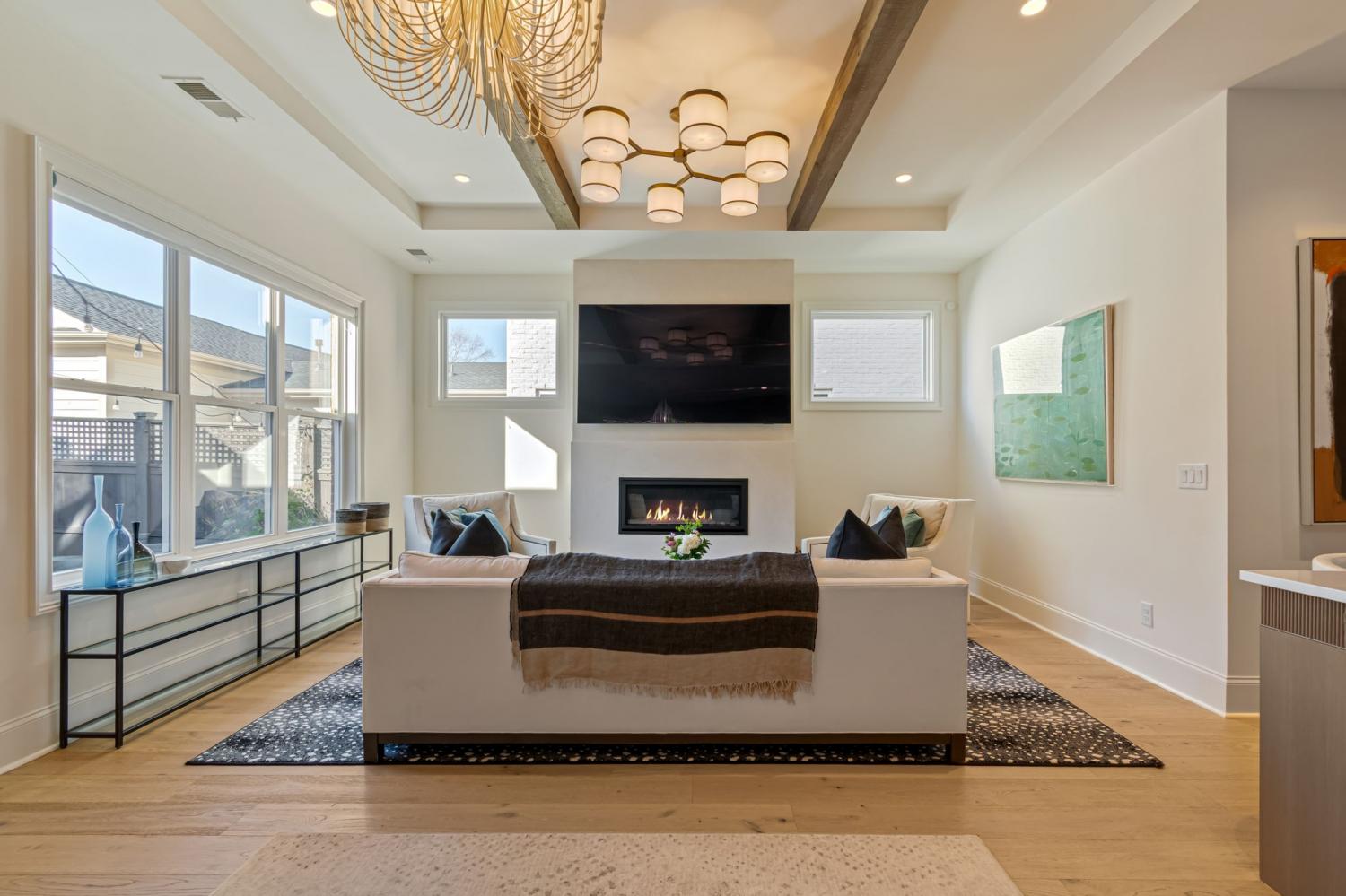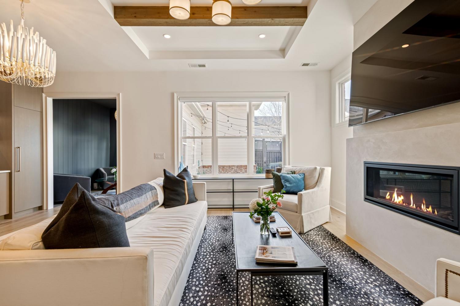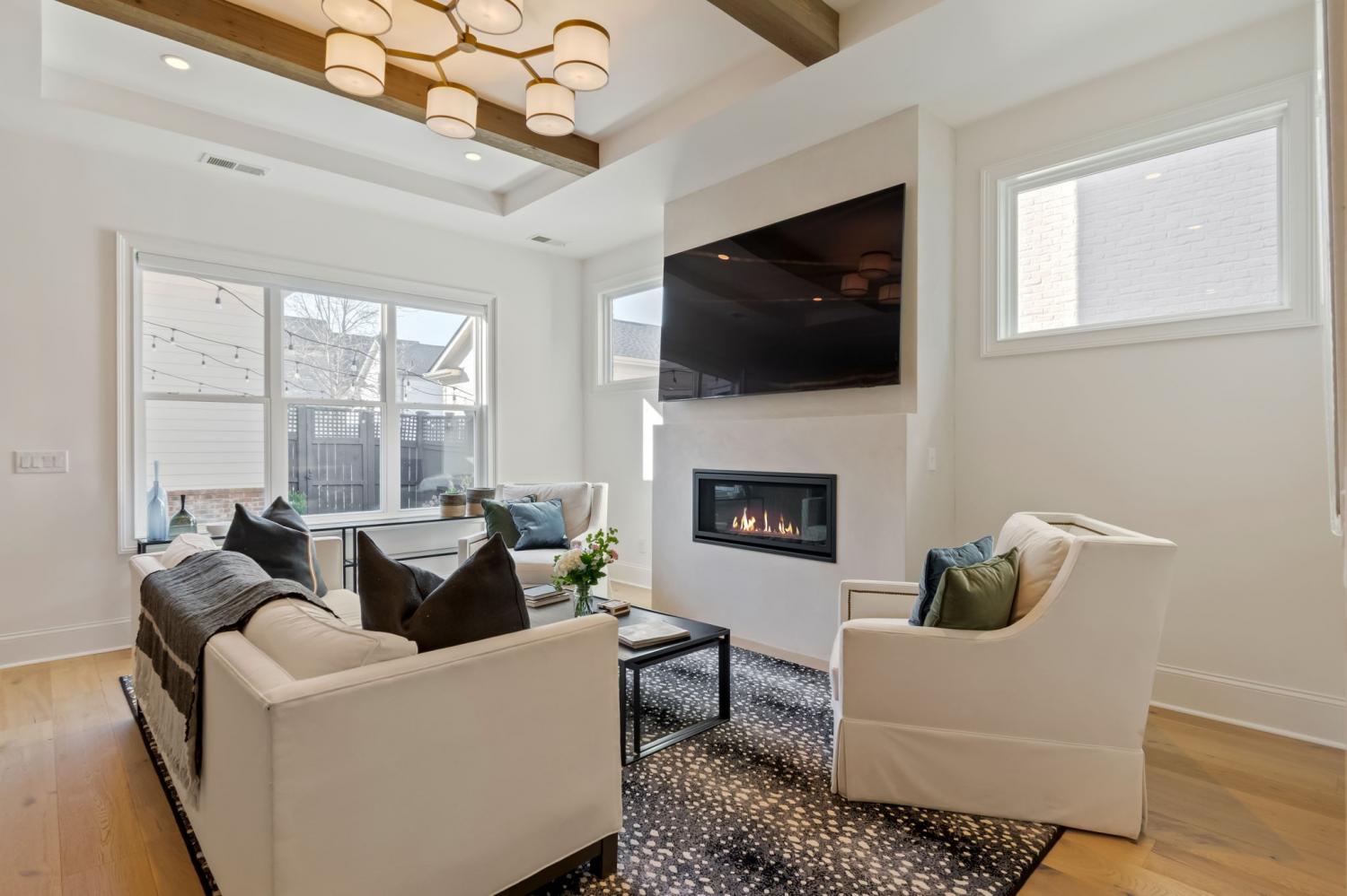 Prime corner Westhaven brownstone—fully rebuilt from the studs with impeccable attention to detail and designer finishes for the most discerning buyer. Flooded with natural light and facing protected green space with tranquil wildlife views, this home is a calm, elegant retreat just walkable to town, the clubhouse and school. A chef’s dream: custom 10' floor-to-ceiling rift-sawn oak kitchen and bar cabinetry by Nashville’s top luxury cabinetmaker, 8" European oak floors throughout, Thermador built-ins (24" refrigerator & freezer, 24" dual-temperature wine fridge, 36" 6-burner gas range with oven, dishwasher, built-in microwave), and an oversized 10' island with reeded detailing that seats four. A bespoke dual-door pantry and abundant storage keep entertaining effortless. The home has been fully rewired and upgraded with new outlets, switches and temperature-controlled 4" recessed LED lighting. Signature fixtures from Visual Comfort, Arteriors and Currey & Company, custom wood beams, and a sleek linear fireplace framed in white plaster set a warm, modern tone. Full window treatments in all rooms with motorized roller shades in main living area and main bedrooms. The primary suite is a spa sanctuary with marble floors and counters, an oversized shower with ROHL fixtures, a linen closet and an expansive 10' floor-to-ceiling California Closet. Upstairs: three bedrooms and two full baths; one bedroom transformed into a luxe dressing room with custom California Closet, vanity and desk, plus a versatile bonus room. Outdoors: new GOAT turf with a putting green, integrated new outdoor lighting, and full surveillance front and back with alarm system. New roof, new exterior paint, new tankless water heater, finished garage with abundant storage and polyaspartic coated flooring. Meticulous, move-in ready, and thoughtfully appointed—too many luxury details to list. Truly a low maintenance, lock & leave property!