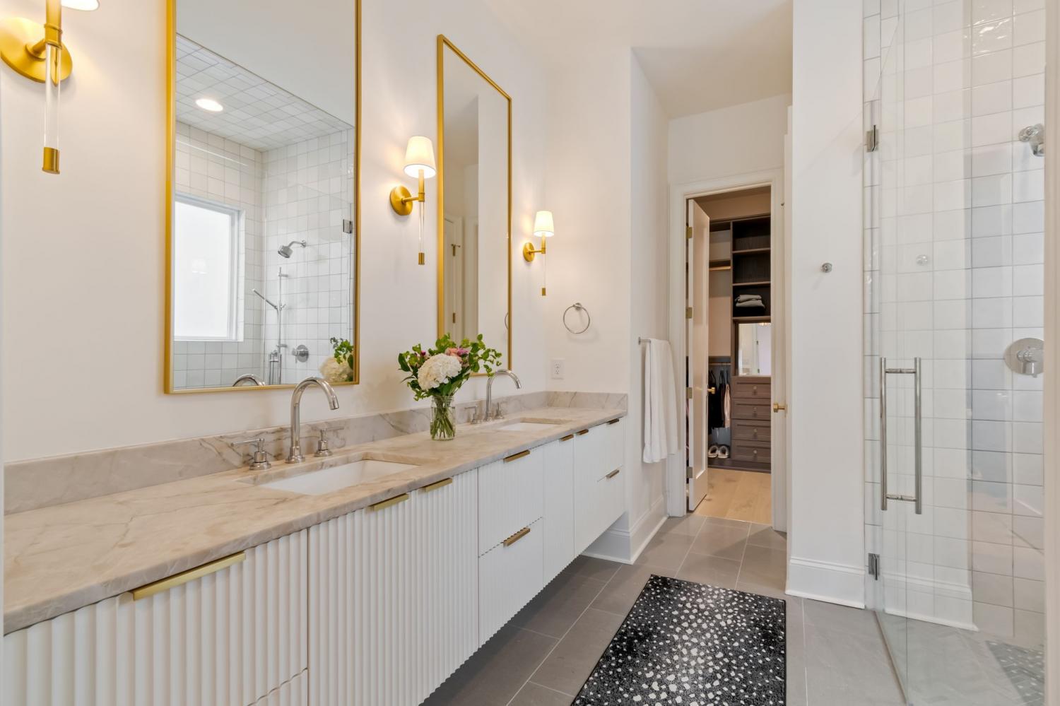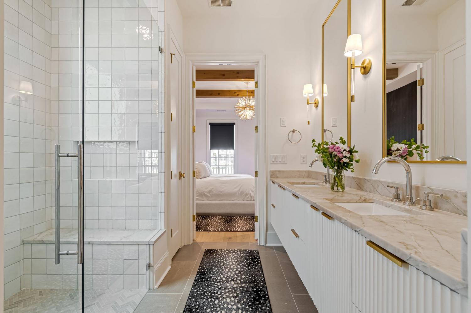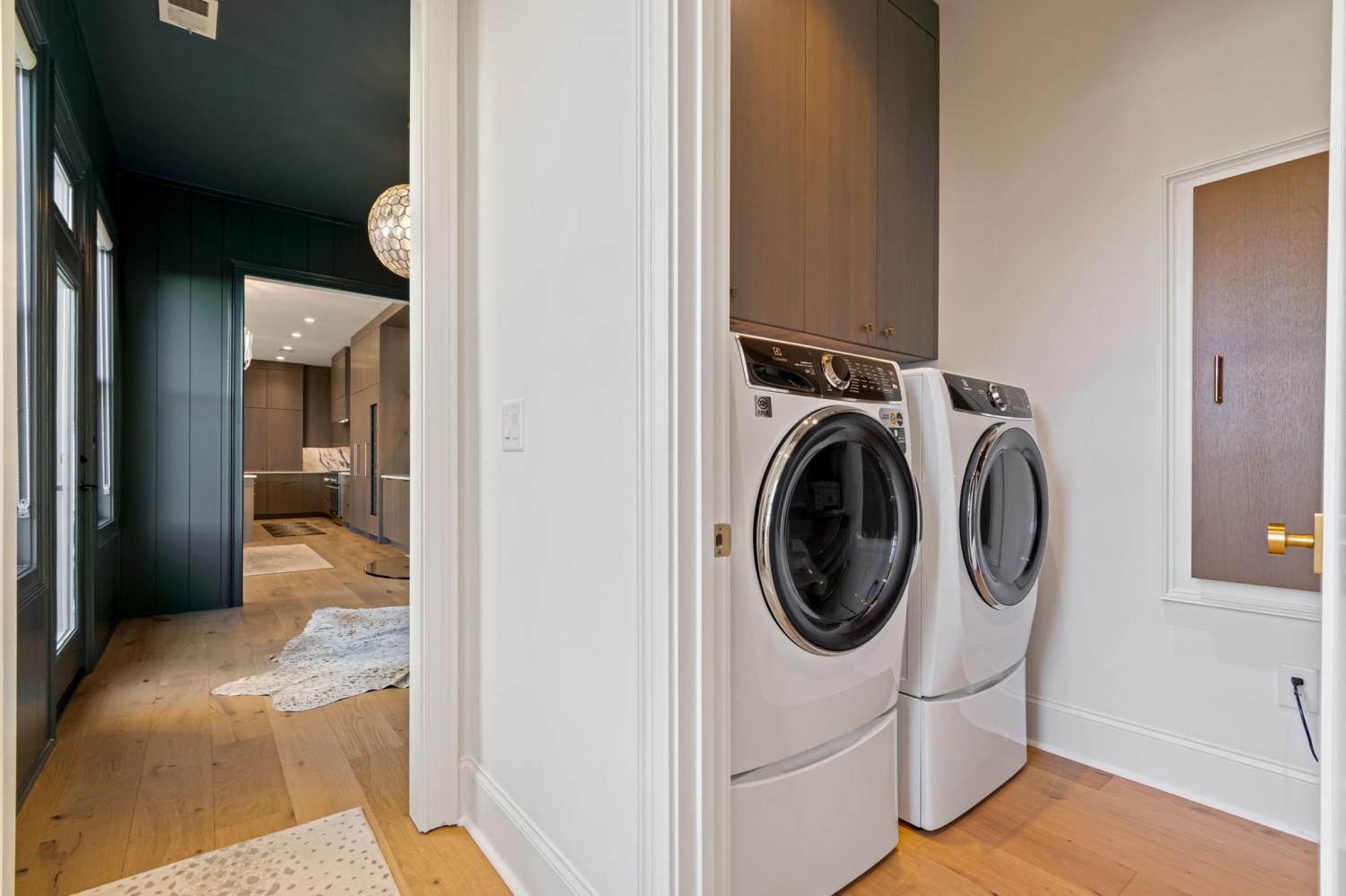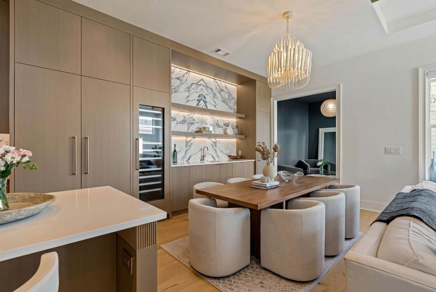 Prime corner Westhaven brownstone—fully rebuilt from the studs with impeccable attention to detail and designer finishes for the most discerning buyer. Flooded with natural light and facing protected green space with tranquil wildlife views, this home is a calm, elegant retreat just walkable to town, the clubhouse and school. A chef’s dream: custom 10' floor-to-ceiling rift-sawn oak kitchen and bar cabinetry by Nashville’s top luxury cabinetmaker, 8" European oak floors throughout, Thermador built-ins (24" refrigerator & freezer, 24" dual-temperature wine fridge, 36" 6-burner gas range with oven, dishwasher, built-in microwave), and an oversized 10' island with reeded detailing that seats four. A bespoke dual-door pantry and abundant storage keep entertaining effortless. The home has been fully rewired and upgraded with new outlets, switches and temperature-controlled 4" recessed LED lighting. Signature fixtures from Visual Comfort, Arteriors and Currey & Company, custom wood beams, and a sleek linear fireplace framed in white plaster set a warm, modern tone. Full window treatments in all rooms with motorized roller shades in main living area and main bedrooms. The primary suite is a spa sanctuary with marble floors and counters, an oversized shower with ROHL fixtures, a linen closet and an expansive 10' floor-to-ceiling California Closet. Upstairs: three bedrooms and two full baths; one bedroom transformed into a luxe dressing room with custom California Closet, vanity and desk, plus a versatile bonus room. Outdoors: new GOAT turf with a putting green, integrated new outdoor lighting, and full surveillance front and back with alarm system. New roof, new exterior paint, new tankless water heater, finished garage with abundant storage and polyaspartic coated flooring. Meticulous, move-in ready, and thoughtfully appointed—too many luxury details to list. Truly a low maintenance, lock & leave property!