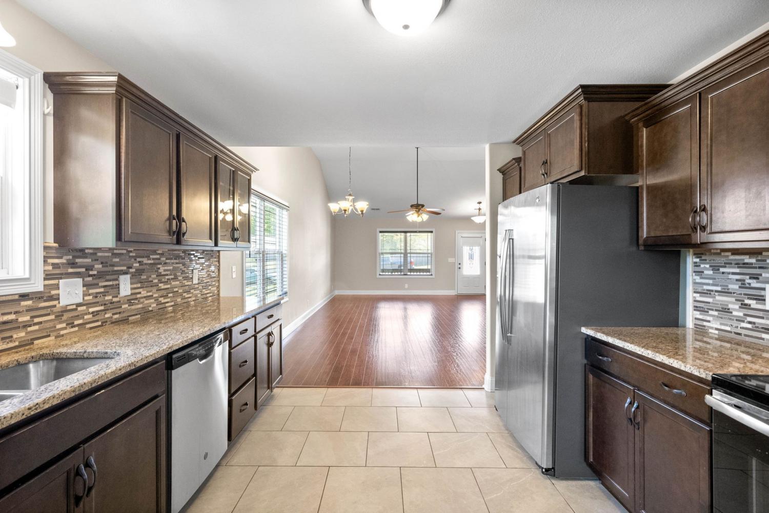 Welcome to this charming three bedroom, two bath ranch home, where comfort and style come together seamlessly! The inviting covered front porch sets the stage for a warm welcome. Inside, you'll find a spacious living room with vaulted ceilings that enhance the open floor plan, creating a bright and airy atmosphere! The modern kitchen features sleek granite counters and stainless steel appliances! The primary suite includes a full bath! Two generously sized guest rooms offer ample space and flexibility! Enjoy the outdoors on the covered deck, overlooking a fenced yard! Pet rent applicable.