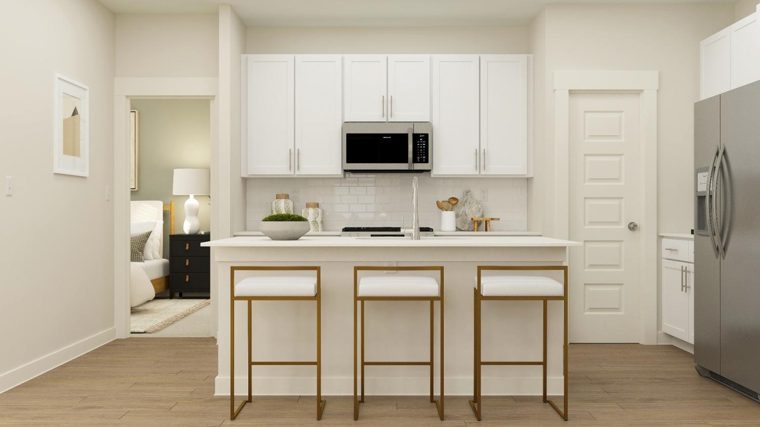 Alan floorplan. This new home is laid out on a single floor for maximum comfort and convenience. An open-plan layout connects a modern kitchen for busy cooks, a dining room for memorable meals and a Great Room for shared moments. A spacious owner’s suite features a luxe bathroom and large walk-in closet. Two secondary bedrooms situated off the foyer provide personal space for younger family members or overnight guests. *Images are rendered. Actual configuration and features may vary.