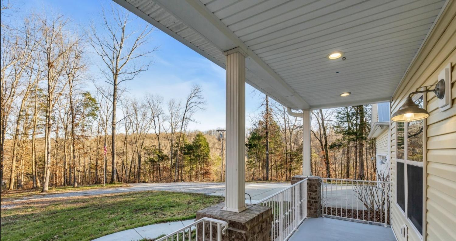 This stunning custom home is filled with thoughtful design and high-end features. The chef’s kitchen showcases beautiful custom cabinetry extending to 9-foot ceilings, highlighting the home’s refined craftsmanship. An open floor plan provides seamless sightlines between the kitchen, dining area, and living room, all centered around a striking stone fireplace, perfect for everyday living and entertaining. A spacious main-level in-law suite offers comfort and privacy for guests or multi-generational living. Upstairs, a generous 20x14 bonus room provides a flexible living area. A walk-in attic offers excellent storage potential. Step outside to the covered back porch, perfect for relaxing or entertaining year-round beside the wood-burning fireplace while overlooking the peaceful acreage. The home features gas heat, along with natural gas service for the stove, dryer, and tankless water heater, and is equipped with three independent A/C units for efficient, zoned climate control. An additional gas hookup on the porch is ideal for a grill or future outdoor kitchen. An expansive 24x25 deck includes a jacuzzi hookup and opens to a black chain-link fenced area measuring approximately 50x30, conveniently located off the deck and providing a safe, enclosed space for children or pets. The garage includes a built-in tornado shelter designed to safely accommodate a family of eight, along with upgraded 400-amp electrical service and an RV outlet, offering exceptional functionality and peace of mind. Outdoor enthusiasts and hobbyists will appreciate the impressive 42x40 pole barn, ideal for RV storage, a workshop, or recreational equipment. A 17x13 greenhouse completes the setup for gardening enthusiasts. Enjoy cleared trails throughout the 17-acre property for riding or hiking, or unwind to the tranquil sounds of the creek fed by an artesian well. With a great offer, the washer, dryer, and dining table will convey, adding extra convenience for the new owner. Minutes from Dickson