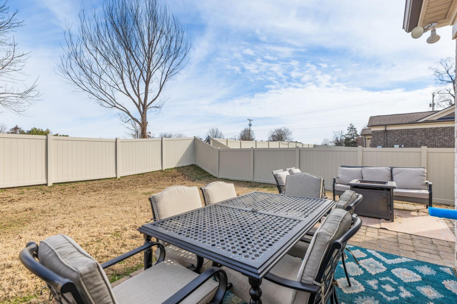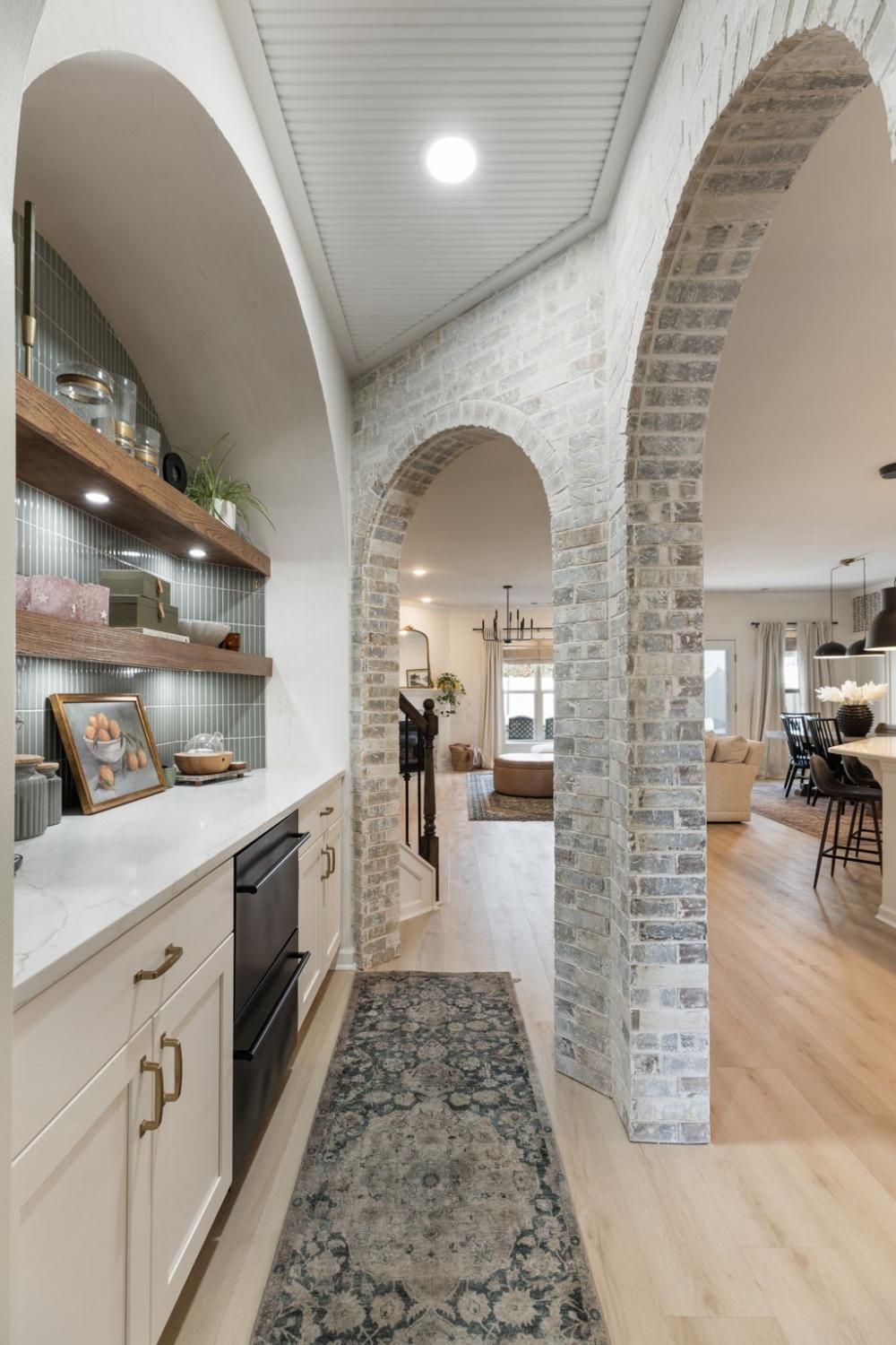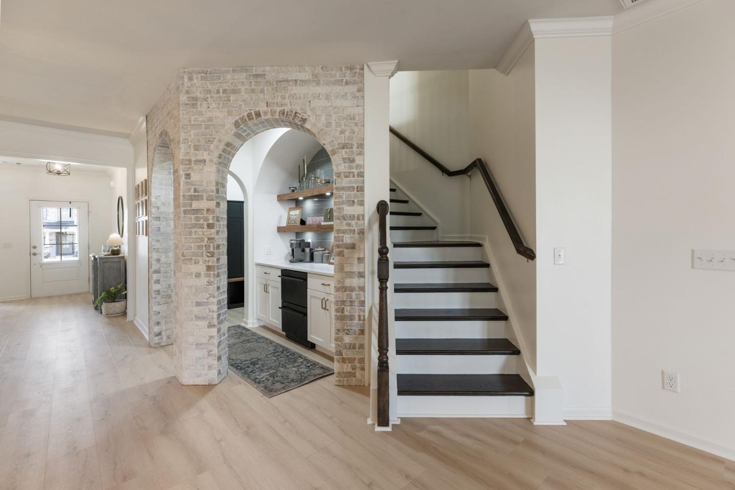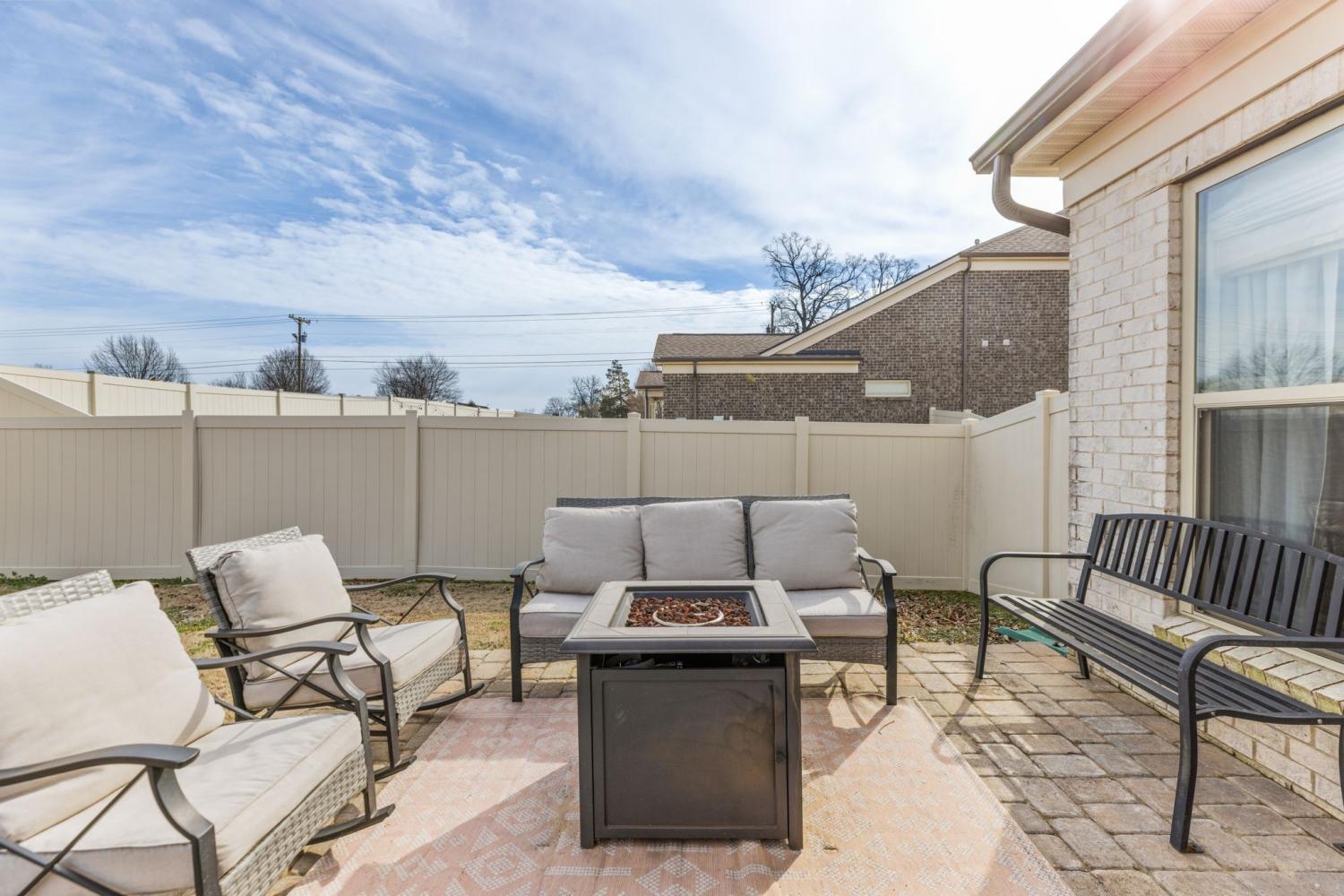 Beautifully renovated and move-in ready home located in the desirable Benevento East neighborhood. This updated floor plan features a primary bedroom on the main level and a flexible front room suitable for a living area, dining space, or home office. The updated kitchen includes quartz countertops, a gas cooktop, stainless steel appliances, and a newly added coffee or cocktail bar with built-in refrigerated beverage drawers and a custom brick accent wall. Recent improvements include new flooring, fresh interior paint throughout, Roman shades, a fully replaced lighting package, and a fenced backyard. Outdoor living is enhanced by an extended cobblestone patio, with the backyard backing to green space. The primary bath offers a tiled shower and granite countertops. Conveniently located near major roads, shopping, and dining. Nearby roadway improvements are underway to widen the road and improve traffic flow, offering long-term infrastructure benefits. A thoughtfully updated home with stylish finishes in a growing Spring Hill location!