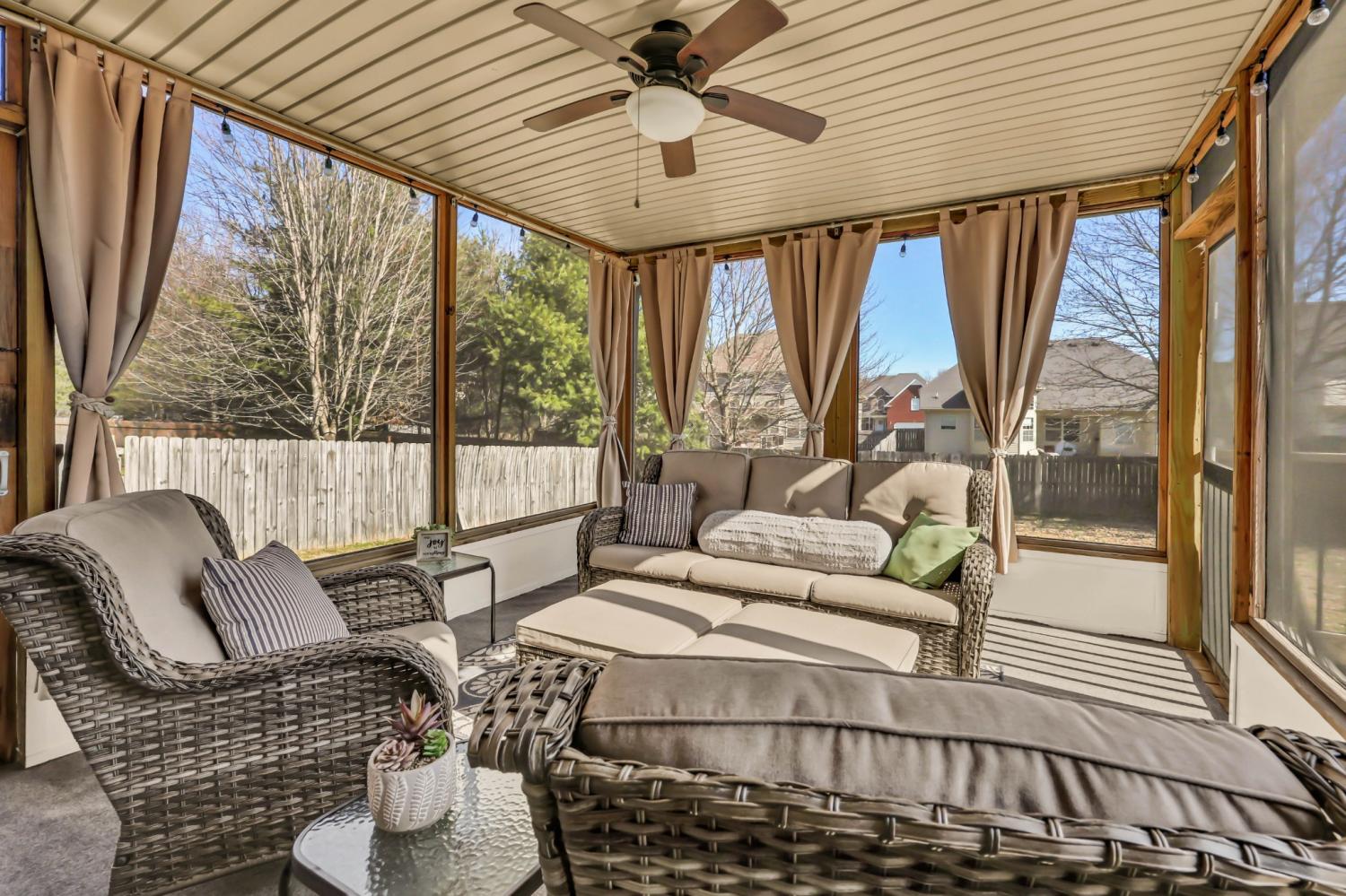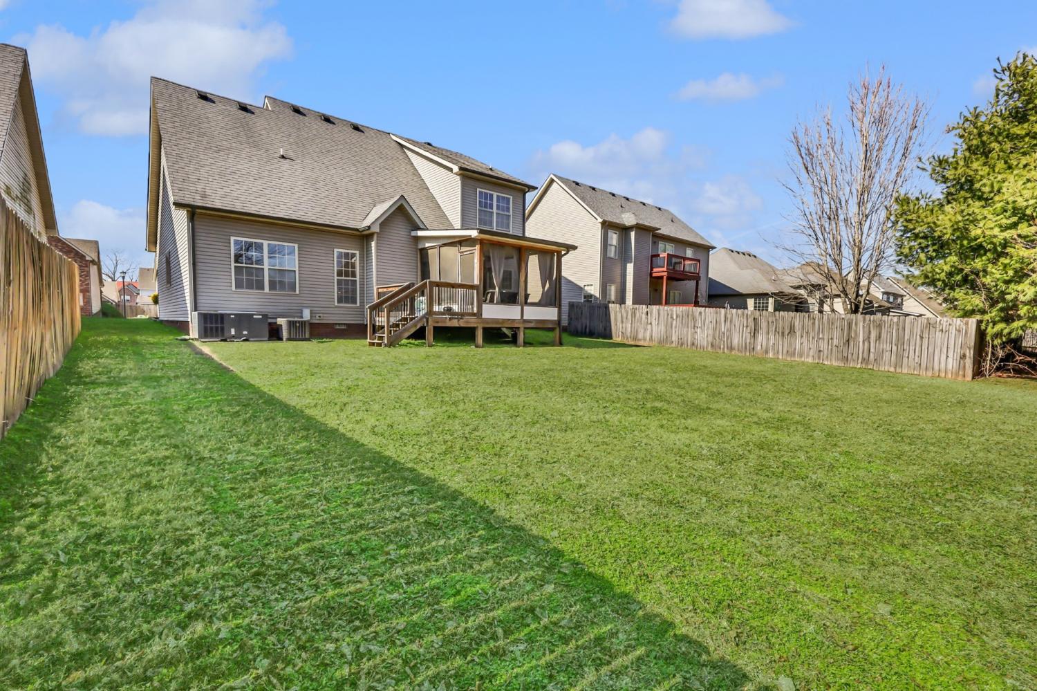 1196 Chinook Cir delivers the space, layout, and location buyers are actively looking for. Set in a highly convenient Clarksville location just minutes from Fort Campbell, shopping, dining, schools, and quick interstate access, all within a neighborhood featuring sidewalks, underground utilities, and streetlights. This nearly 2,100 sq ft home stands out with a layout that works, including a main-level primary suite and spacious living areas that feel open without losing definition. Step inside to a dramatic two-story living room filled with natural light and anchored by a fireplace, creating a true focal point the moment you walk in. The main level offers hardwood flooring, a dedicated dining or flex space, and a layout that flows easily for both everyday living and entertaining. The kitchen delivers on both function and style with stainless steel appliances, a tile backsplash, ample cabinetry, and a bright eat-in area surrounded by windows. The primary suite on the main floor offers a comfortable retreat with a trey ceiling, double vanities, soaking tub, and separate shower. Out back, the covered and screened-in porch is a standout feature, giving you usable outdoor space year-round. Upstairs, you’ll find additional bedrooms and flexible space that can adapt to a variety of needs. With strong curb appeal and a timeless brick and stone exterior, this home checks the boxes for space, function, and everyday convenience in today’s Clarksville market. - UPSTAIRS HVAC 2024, DOWNSTAIRS 2018