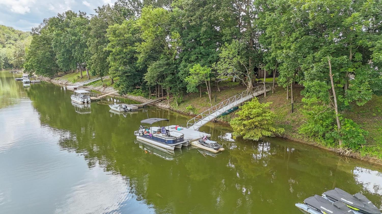 Beautiful waterfront home with private boat dock overlooking the Tennessee River with Beech Creek frontage! Located in a private community of Beechview, this home has 3 bedrooms and 1.5 baths. Plenty of room for family and guests! This home features a large kitchen and dining room combination, spacious living room with a fireplace, gorgeous sunroom overlooking Beech Creek and the private boat dock. Two car garage, tool room, and two bonus rooms. This property includes an RV and boat coverings with a separate septic tank. Great for full time or vacation rental residence. The community includes boat dock, bath house, and garbage pick up.