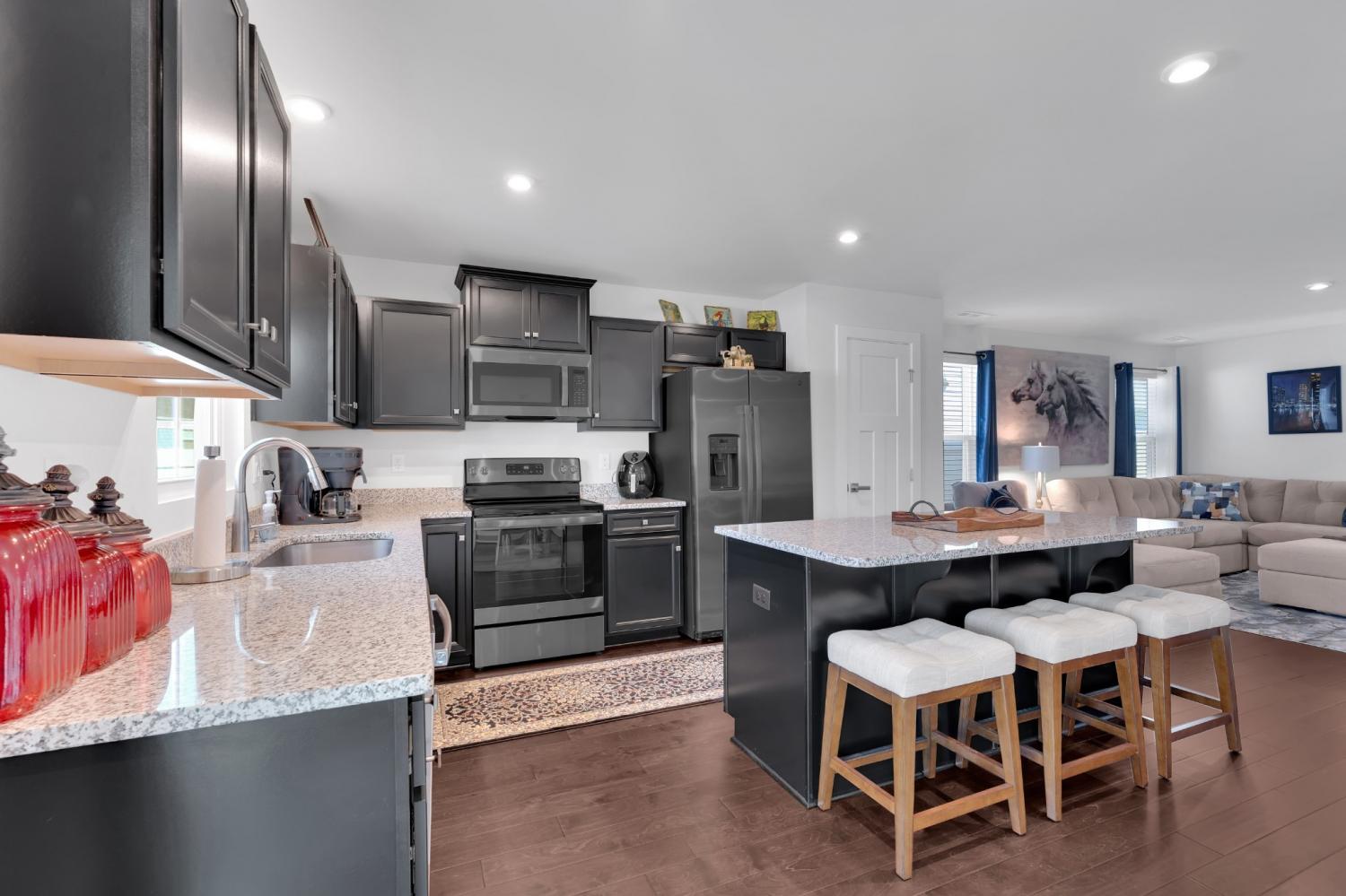 Stunning 3 Bedroom, 2 Bath Home. This breathtaking one-level home is only 2 years old and move-in ready! Step inside to find hardwood flooring in the entry, living room, kitchen, and dining area, cozy carpet in all bedrooms, and tile flooring in the bathrooms and utility room. The kitchen features rich espresso cabinets with space-saving slide out shelves, granite countertops, a large island, and ample storage space. Relax or entertain on the covered back patio, and enjoy the finished 2-car garage with durable epoxy floors. Conveniently located just off Bear Creek Pike with quick access to I-65 for an easy drive to Franklin, Nashville, or even Huntsville, Alabama.