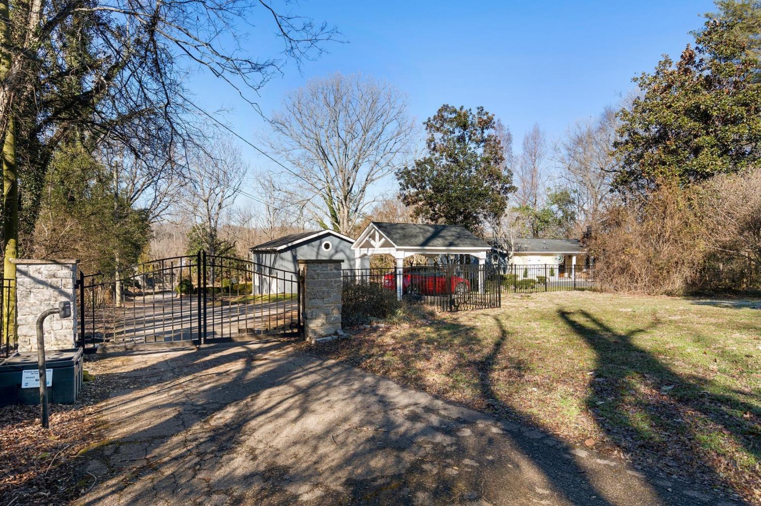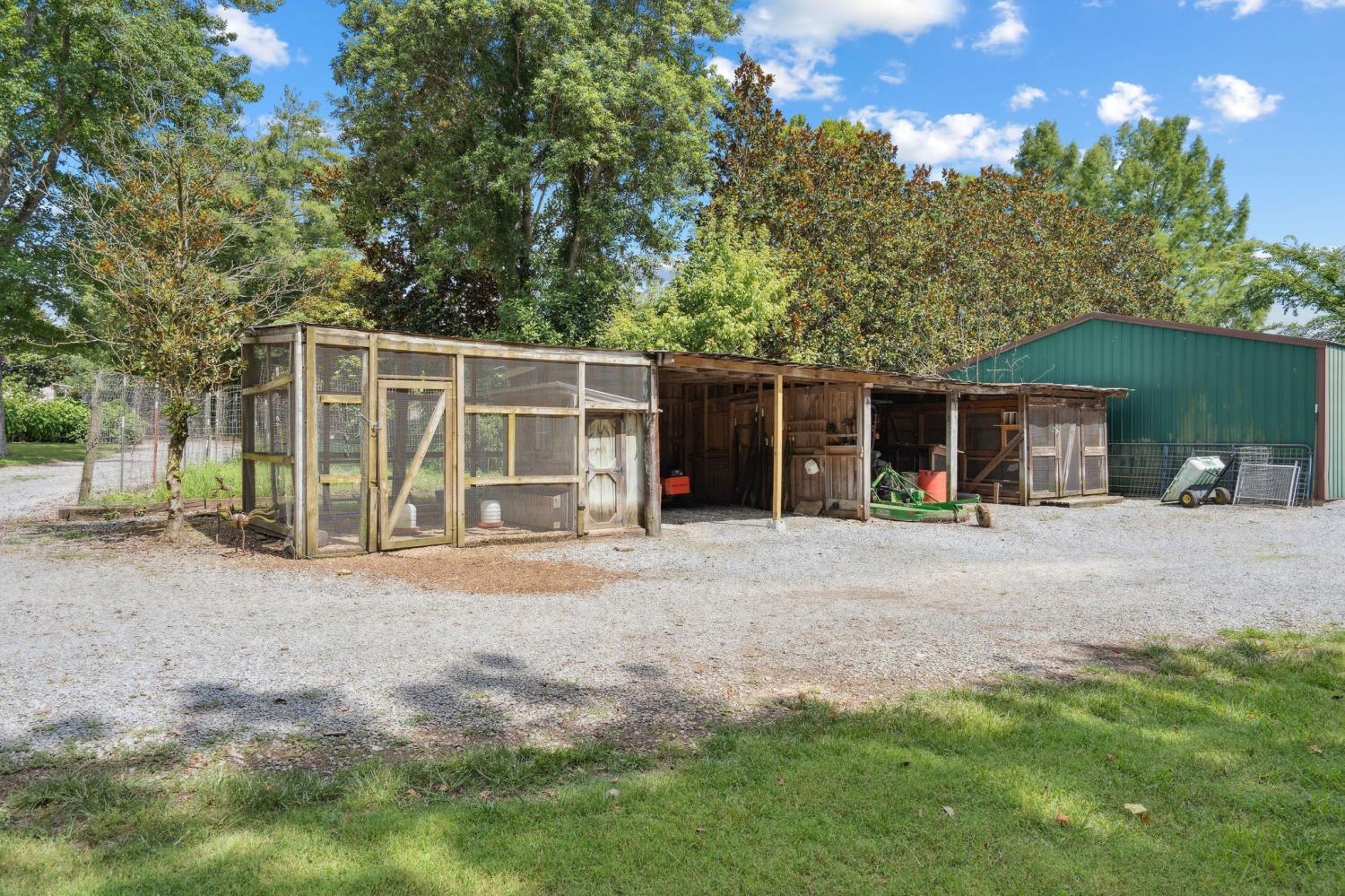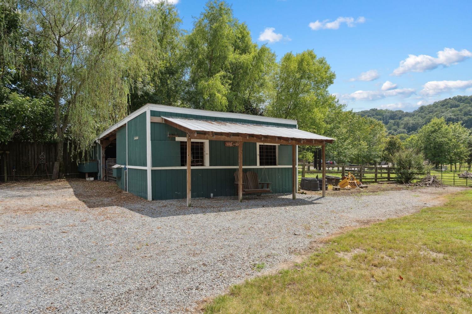 Welcome to 9032 S. Harpeth Ct, a private, gated retreat on 5 level acres offering the perfect blend of Southern charm, functionality, and natural beauty. This exceptional property is ideal for multi-generational living, hobby farming, or anyone seeking space, serenity, and modern conveniences. The primary residence has been tastefully updated and features an open floor plan, a newly remodeled kitchen, a new front door, two primary suites, two wood-stove fireplaces, and a beautifully renovated kitchen. Two decks are perfect for entertaining or quiet mornings in nature. A finished basement with private entry offers potential for an in-law suite or rental apartment. Outdoors, you’ll find a vaulted covered parking area with an electric vehicle charger, plus RV/tour bus hookups for added flexibility. A detached garage/workshop features a full bath and a finished upstairs apartment with a kitchenette, making it ideal as a guest house or studio. Car enthusiasts and hobbyists will appreciate the two additional garages, featuring an open bay between them, which offers ample room for storage, tools, or toys. For animal lovers, this mini-farm is move-in ready with a 2-stall barn equipped with automatic water troughs and multiple fans, two fenced back pastures, an enclosed chicken coop, and a separate dove coop. Lush landscaping surrounds the property, with views leading toward the Harpeth River, located just 50 feet from the property line. Additional highlights: New HVAC (2023), Power generator and hook-up for the house! Gated driveway and private setting, Endless multi-use potential. This is more than a home; it’s a versatile lifestyle property tucked into the heart of Tennessee’s most scenic countryside.