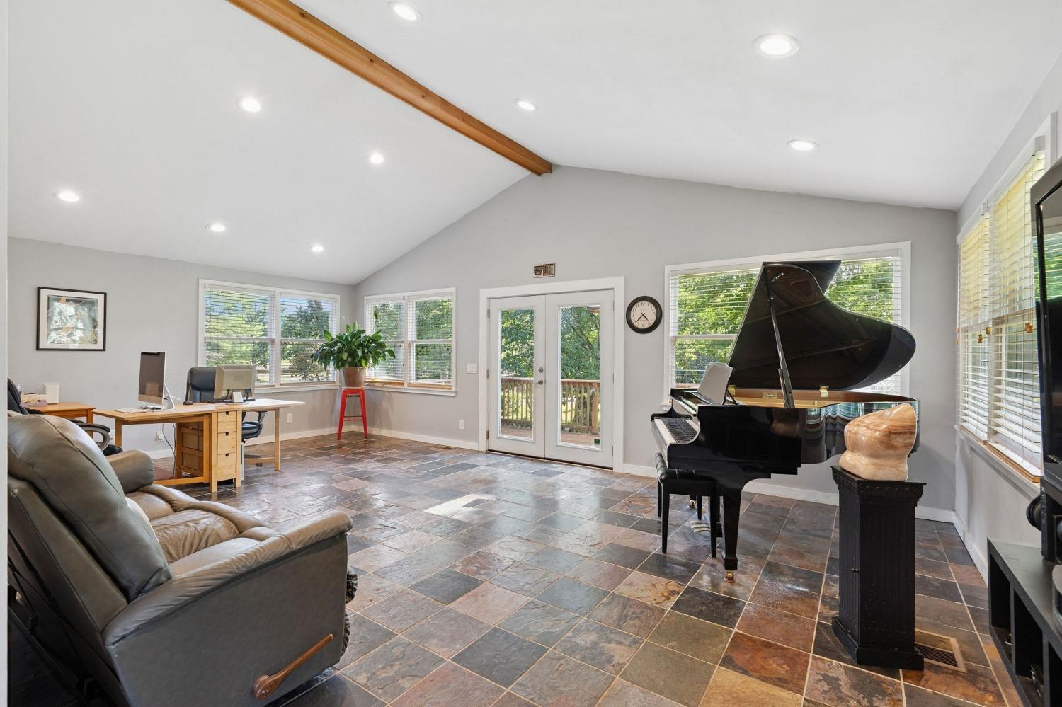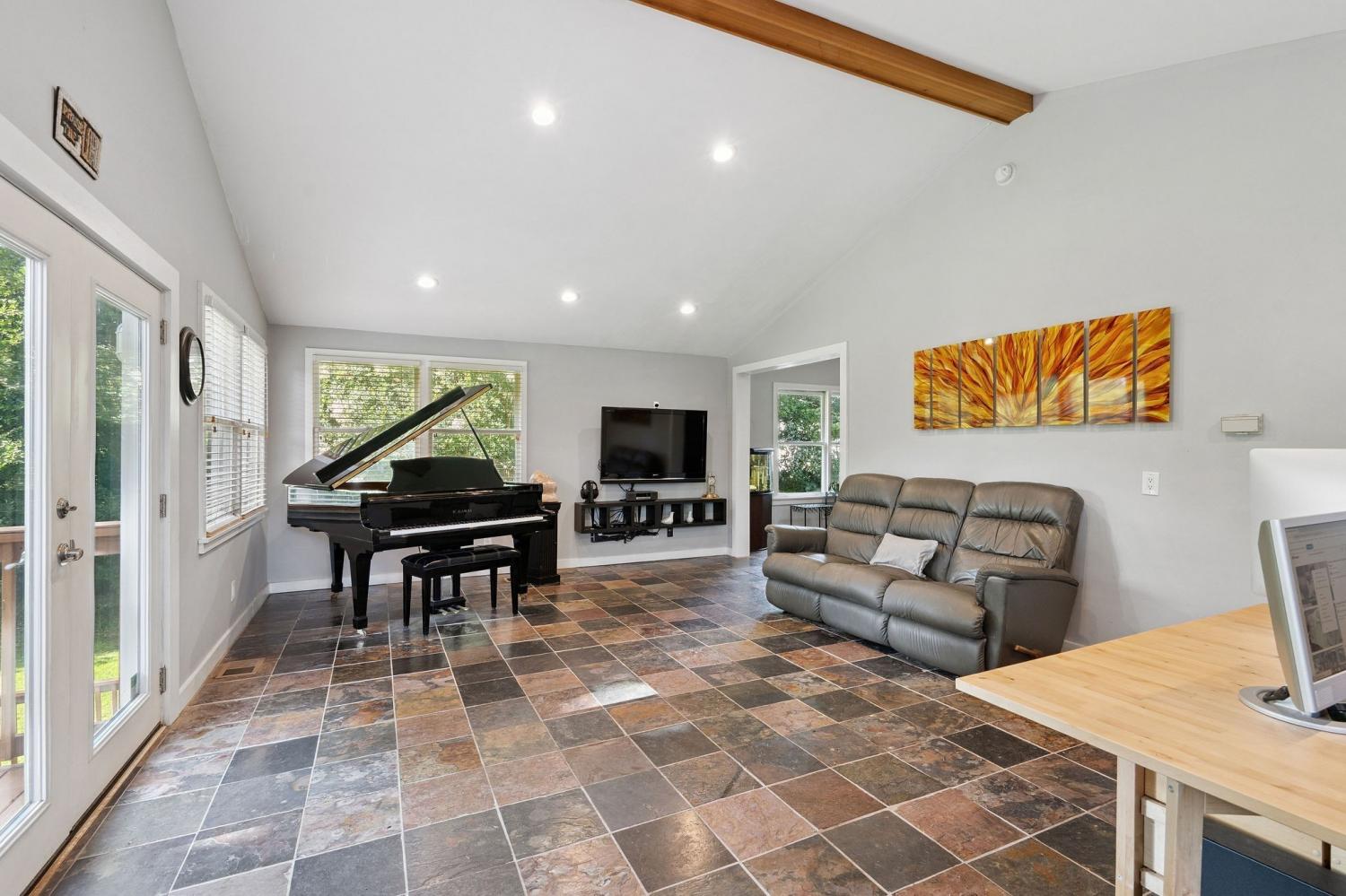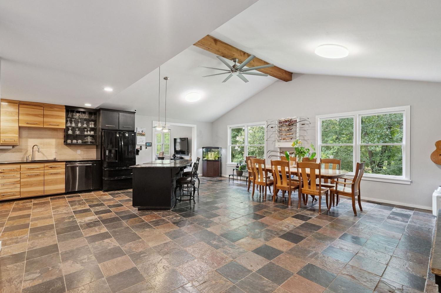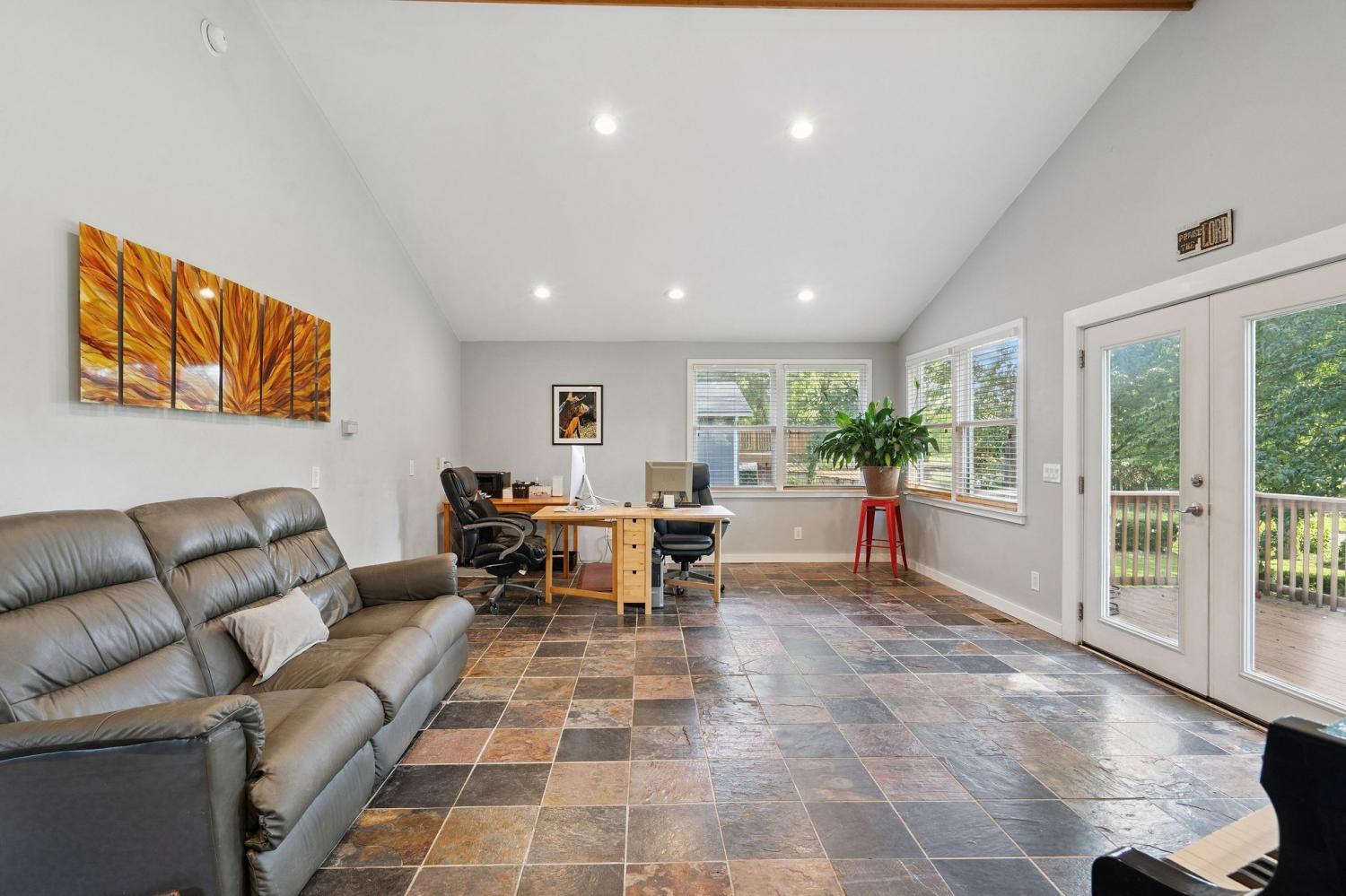 Welcome to 9032 S. Harpeth Ct, a private, gated retreat on 5 level acres offering the perfect blend of Southern charm, functionality, and natural beauty. This exceptional property is ideal for multi-generational living, hobby farming, or anyone seeking space, serenity, and modern conveniences. The primary residence has been tastefully updated and features an open floor plan, a newly remodeled kitchen, a new front door, two primary suites, two wood-stove fireplaces, and a beautifully renovated kitchen. Two decks are perfect for entertaining or quiet mornings in nature. A finished basement with private entry offers potential for an in-law suite or rental apartment. Outdoors, you’ll find a vaulted covered parking area with an electric vehicle charger, plus RV/tour bus hookups for added flexibility. A detached garage/workshop features a full bath and a finished upstairs apartment with a kitchenette, making it ideal as a guest house or studio. Car enthusiasts and hobbyists will appreciate the two additional garages, featuring an open bay between them, which offers ample room for storage, tools, or toys. For animal lovers, this mini-farm is move-in ready with a 2-stall barn equipped with automatic water troughs and multiple fans, two fenced back pastures, an enclosed chicken coop, and a separate dove coop. Lush landscaping surrounds the property, with views leading toward the Harpeth River, located just 50 feet from the property line. Additional highlights: New HVAC (2023), Power generator and hook-up for the house! Gated driveway and private setting, Endless multi-use potential. This is more than a home; it’s a versatile lifestyle property tucked into the heart of Tennessee’s most scenic countryside.