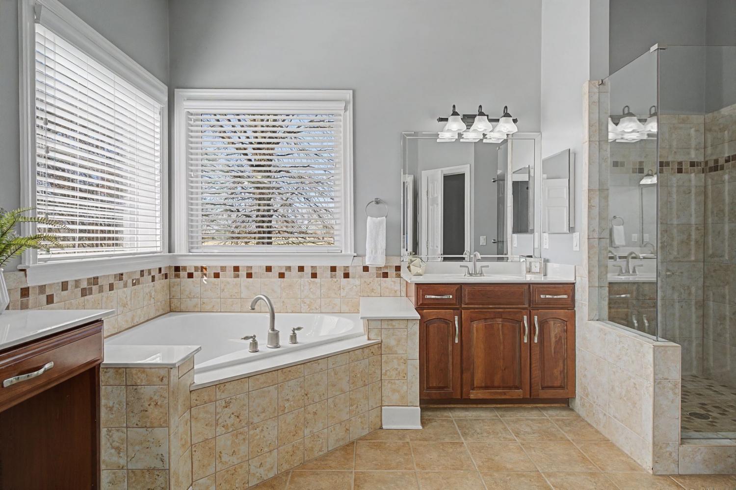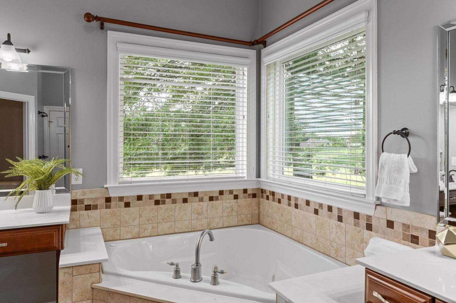 Fairvue Plantation at its finest in this all brick, move in ready home with views overlooking the 5th hole of this gorgeous golf course community!, Positioned on a cul-de-sac in this tree lined, mature neighborhood with sidewalks, just minutes to fabulous schools and shopping. Step through the solid wood front doors into the comfort of gleaming hardwoods that run throughout the main level with a formal dining space that connects the kitchen by a butler's pantry then opens into several eat-in options with loads of prep space, double ovens, and a gas cooktop. The adjoining breakfast nook also has a cozy space for visiting with friends and a command center with builtins and a desk, all overlooking the vast green golf course directly behind the home that is visible from most rooms, especially through the adjacent vaulted family room. The primary suite on the main level with his and hers closets as well as a soaker tub and double vaniites makes for a perfect retreat. An oversized 3 car garage is easily accessible and pours straight into the laundry area for easy unloading.Upstairs you will find 3 large bedrooms plus the bonus room and an additional room for crafting or the ultimate man cave, all newly carpeted. The fully fenced backyard with it's multiple patio spaces lend to evenings of fun while experiencing amazing sunsets. Come see why so many want to call this home!!