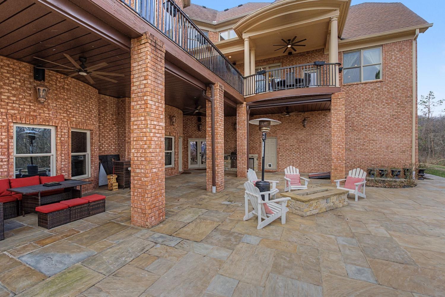 Beautiful brick home nestled in a stately, tree‑lined cul-de-sac. Hard-to-find features include: two gas stoves, three dishwashers, gorgeous new Subzero fridge, two bonus rooms, en-suite bedrooms, elevator & safe room. Outside you will find classic curb appeal with a beautifully landscaped yard. Surrounded by mature trees & scenic views, this home offers a perfect blend of privacy & suburban comfort. Enjoy quiet mornings overlooking the peaceful vistas, afternoons lounging beneath the covered patio & evenings surrounded by the natural privacy of mature trees. With generous seating areas, elegant stonework & seamless indoor–outdoor flow, this home offers a serene setting perfect for both peaceful downtime & memorable gatherings.