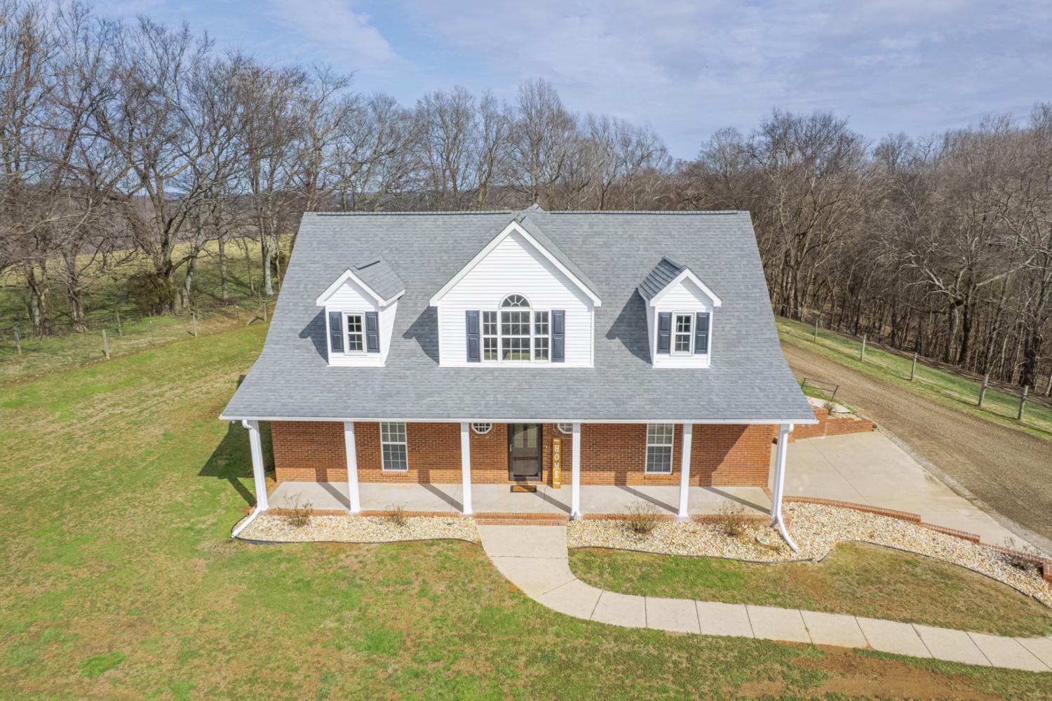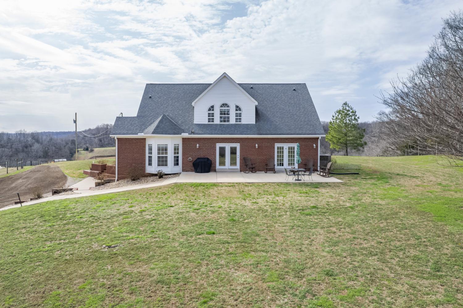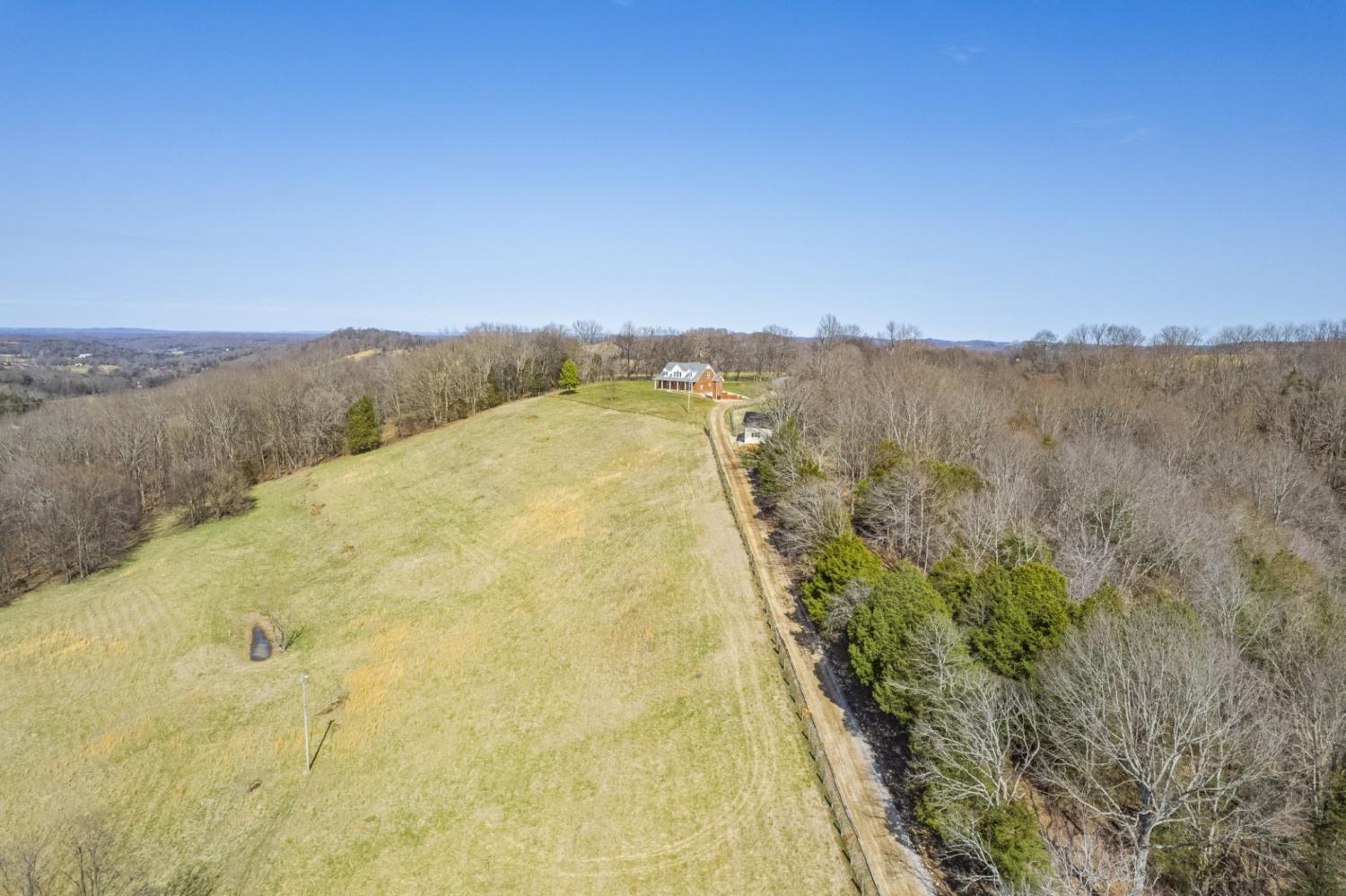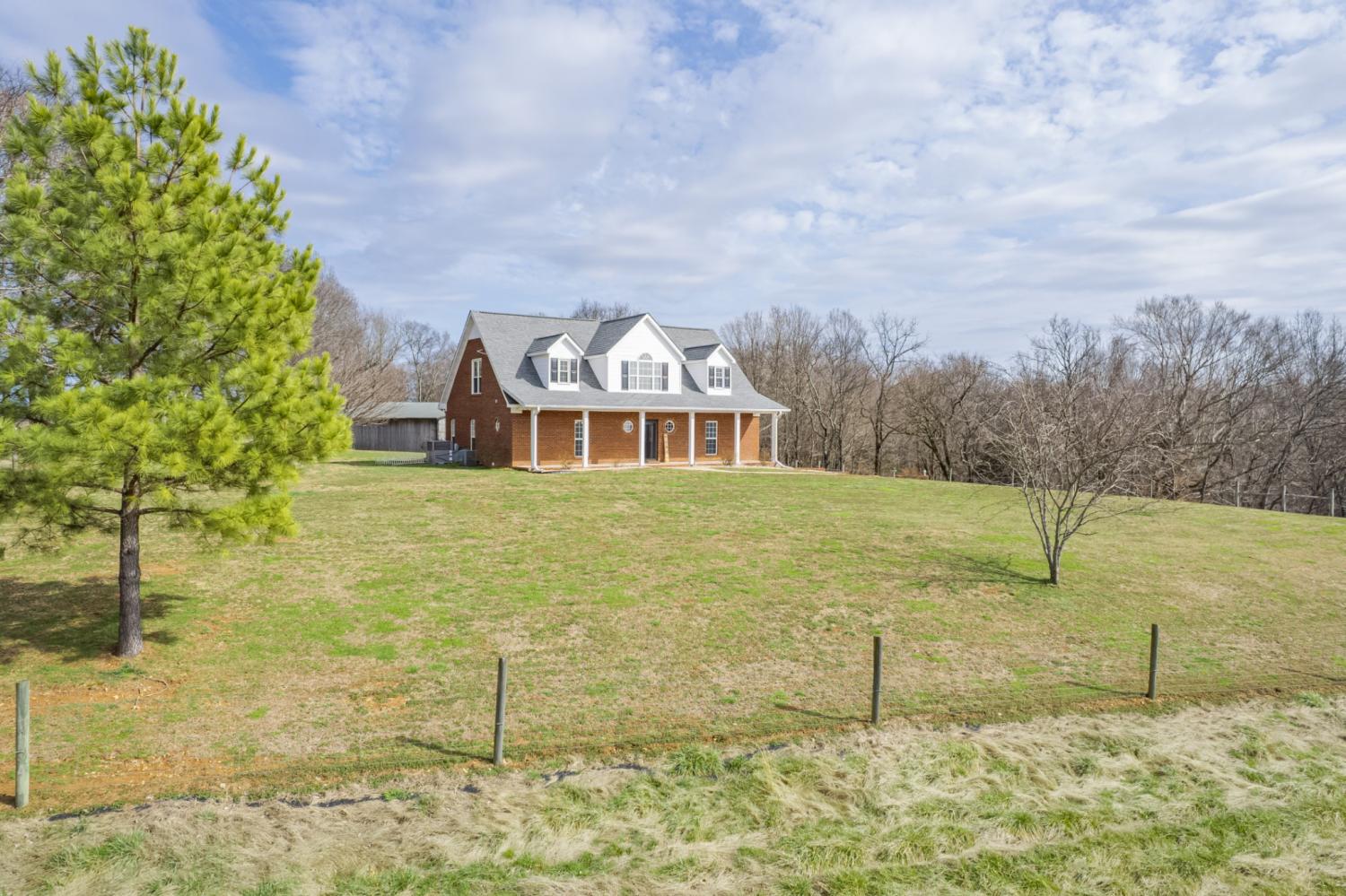 Beautiful, private hilltop home in a prime location—just 8 minutes to I-65 and 30 minutes to Columbia, Pulaski, and Spring Hill! Tucked at the top of a front hillside pasture, the home enjoys elevated views and exceptional privacy, with no neighboring homes beside you—just open grazing land and beautiful mature trees. While the front pasture slopes, the homesite itself features a relatively flat front and backyard, perfect for everyday living, play, pets, or entertaining. All 11 acres are fenced with a gated driveway and ready for livestock or a mini farm. Property includes a 60x40 stall barn with water, electricity, and 50-amp plug, plus a 30x40 shop. Relax on the 36x16 patio with 50-amp service for a future hot tub. Inside you’ll find granite counters, quartz backsplashes, new flooring, fresh paint, French doors, walk-in closets throughout, and a spacious walk-in pantry. Fiber internet available. Enjoy peaceful country living with privacy—just minutes from town amenities.