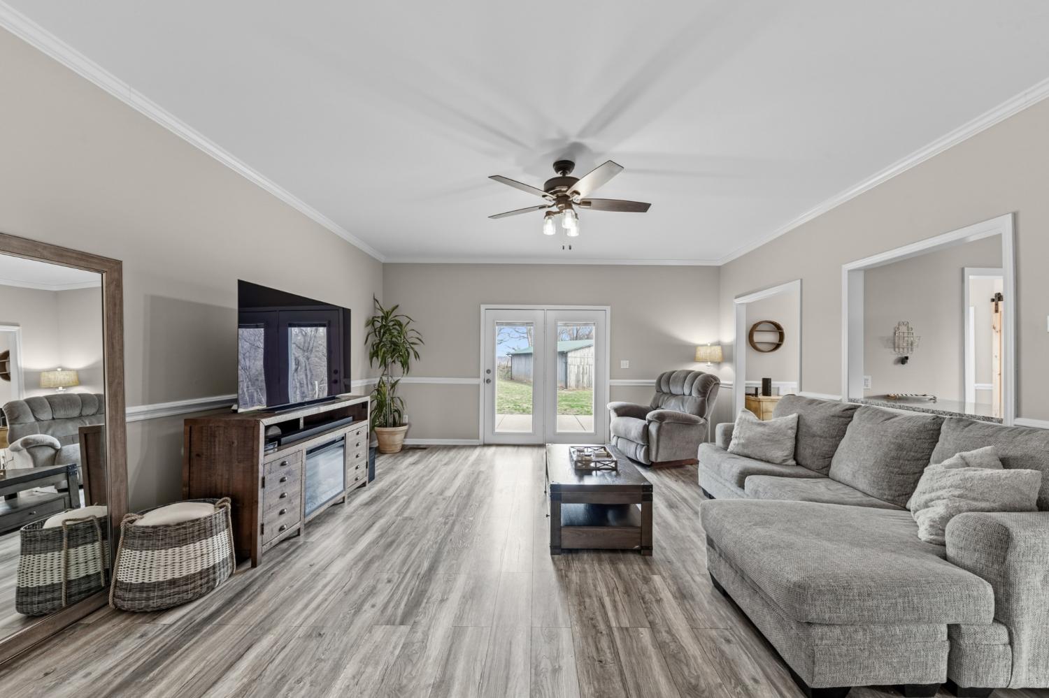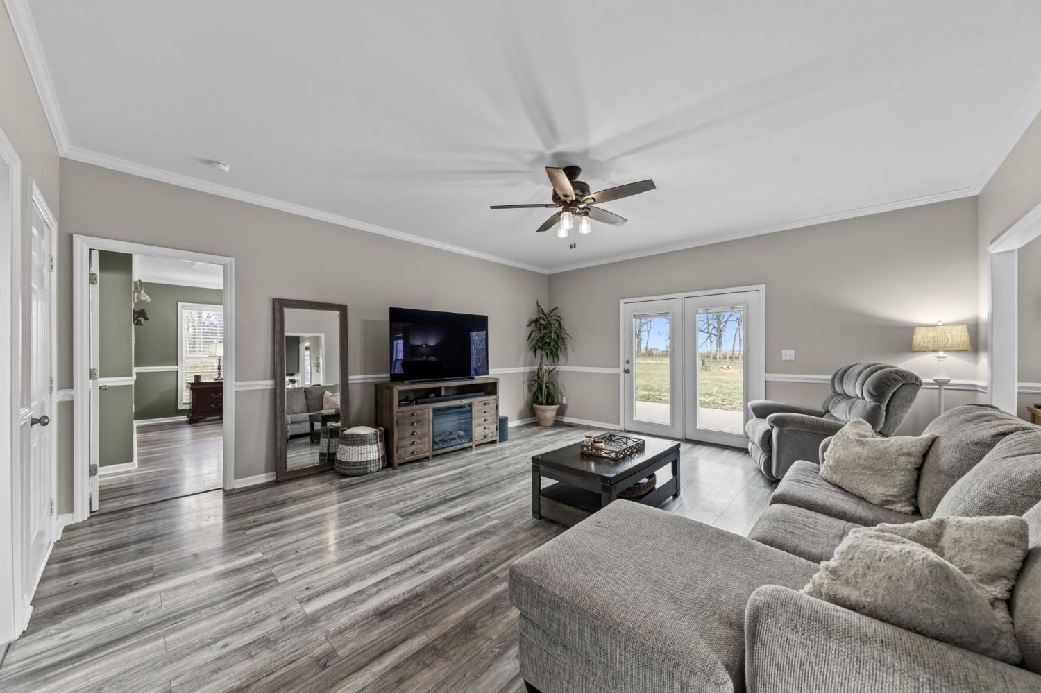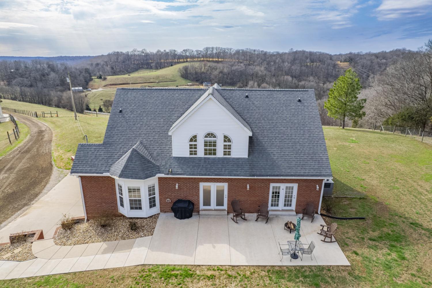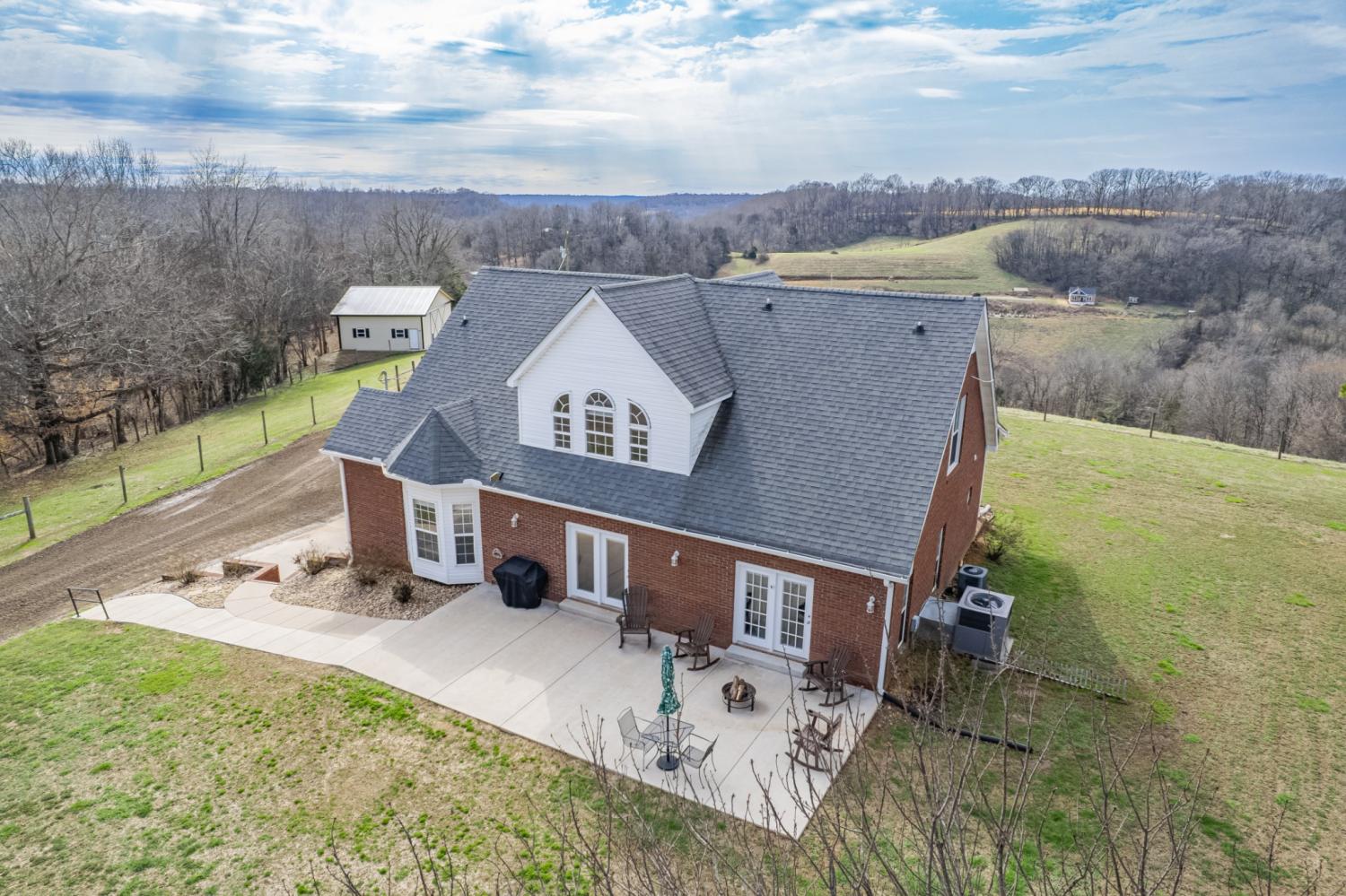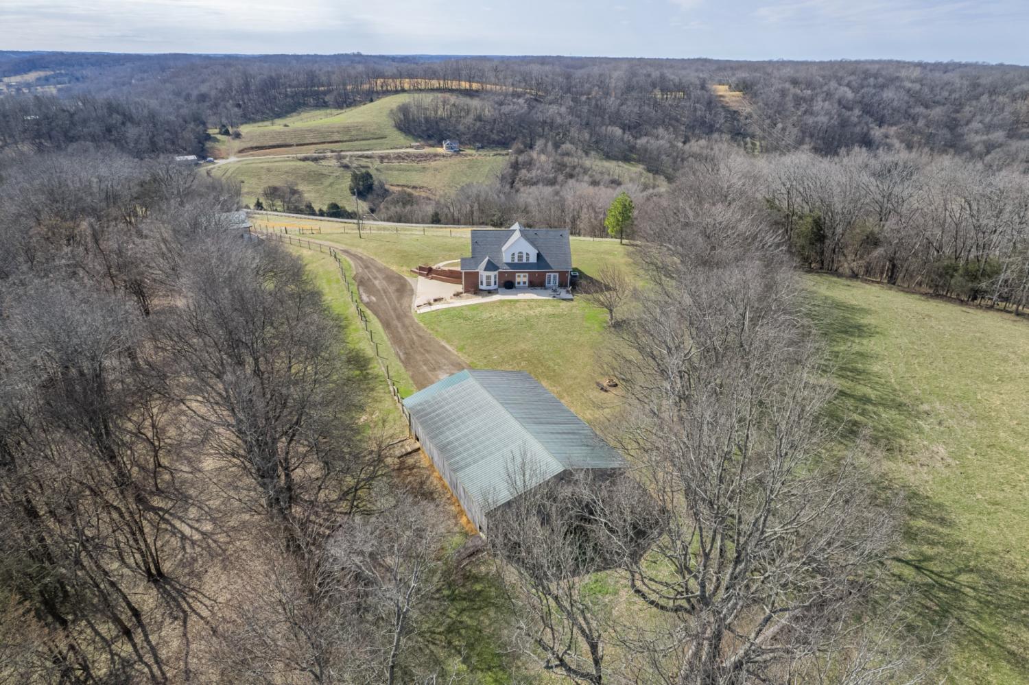 Beautiful, private hilltop home in a prime location—just 8 minutes to I-65 and 30 minutes to Columbia, Pulaski, and Spring Hill! Tucked at the top of a front hillside pasture, the home enjoys elevated views and exceptional privacy, with no neighboring homes beside you—just open grazing land and beautiful mature trees. While the front pasture slopes, the homesite itself features a relatively flat front and backyard, perfect for everyday living, play, pets, or entertaining. All 11 acres are fenced with a gated driveway and ready for livestock or a mini farm. Property includes a 60x40 stall barn with water, electricity, and 50-amp plug, plus a 30x40 shop. Relax on the 36x16 patio with 50-amp service for a future hot tub. Inside you’ll find granite counters, quartz backsplashes, new flooring, fresh paint, French doors, walk-in closets throughout, and a spacious walk-in pantry. Fiber internet available. Enjoy peaceful country living with privacy—just minutes from town amenities.
