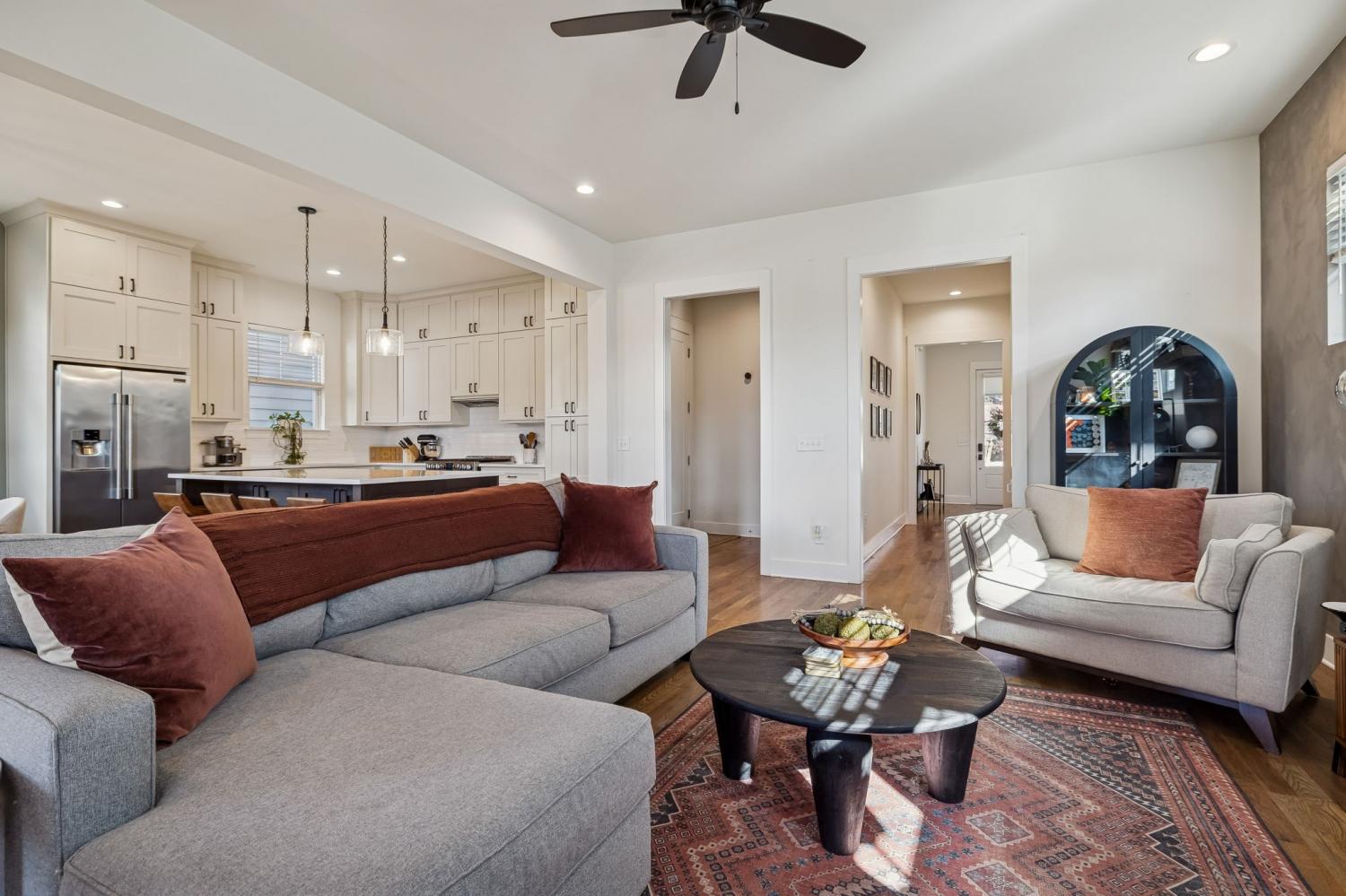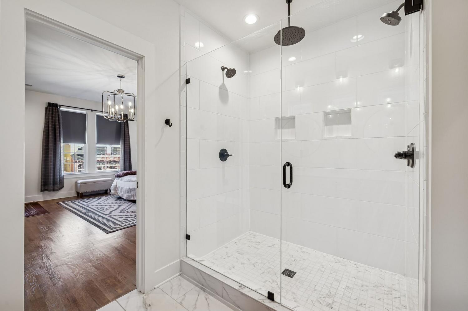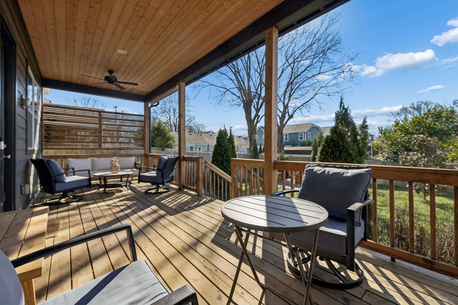 Designed for buyers who value privacy, flexibility, and a truly walkable Nashville lifestyle, this modern Woodycrest residence offers a rare 3bedroom layout where every bedroom is a private en-suite, plus an additional half bath for guests, ideal for hosting, roommates, or a growing household that values personal space. The open-concept main level is built for entertaining, effortlessly connecting the living, dining, and kitchen spaces so gatherings feel natural and inviting. The kitchen anchors the home with lofty ceiling heights, an oversized island, and abundant cabinetry, making it equally suited for casual mornings or game-day hosting. Throughout the home, real white oak hardwoods, expansive closets, and designer-selected wallpaper and finishes elevate everyday living with thoughtful detail and style. Outdoor living is just as intentional. Step onto the covered rear deck overlooking a landscaped, fenced backyard complete with stone pavers and a firepit, a private, year-round extension of the home perfect for relaxing, entertaining, or hosting friends before heading out. A two-car garage adds everyday convenience, while the neighborhood community garden fosters a sense of connection rarely found this close to downtown. Just a short walk to GEODIS Park, the home offers effortless access to Nashville SC matches and major concerts, walk over, skip the parking, and be home in minutes. Minutes from downtown and only moments from Wedgewood-Houston favorites like Aba, Soho House, Pastis, and Bastion, with walkable access to coffee shops, local eateries, and Game Terminal, this home delivers close-in Nashville living designed for how people actually live today.
