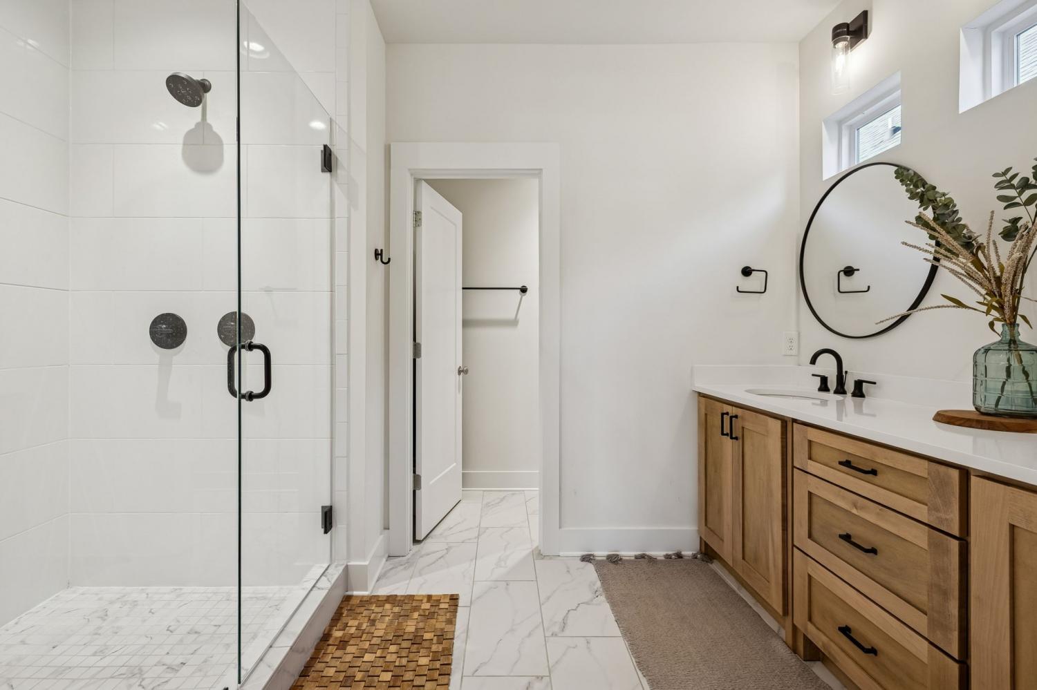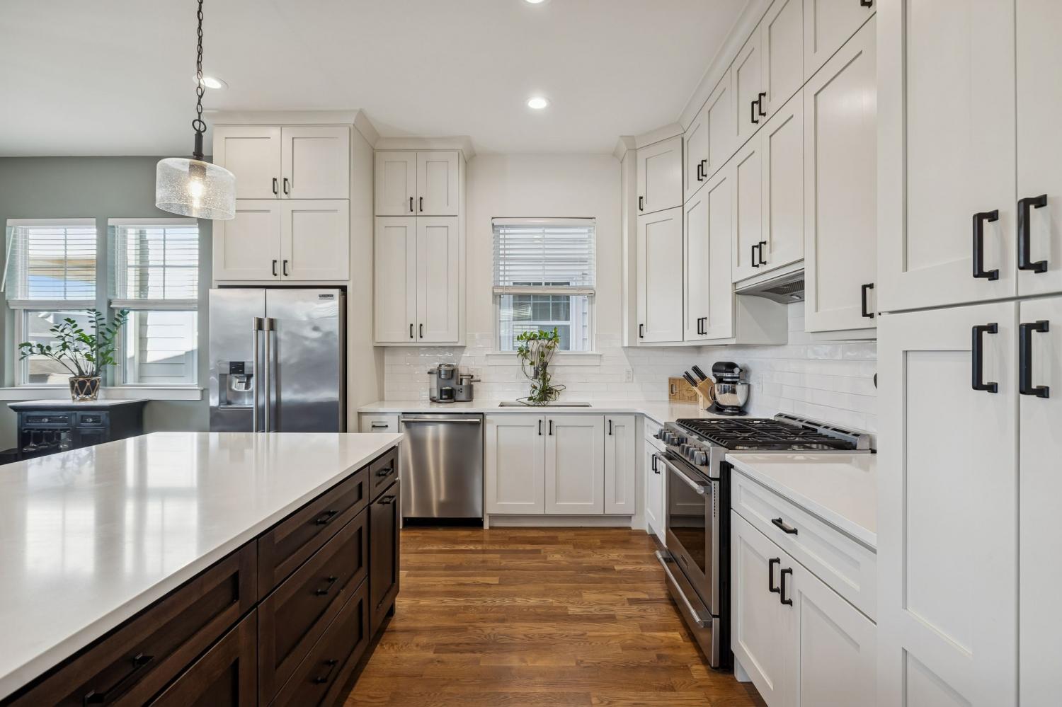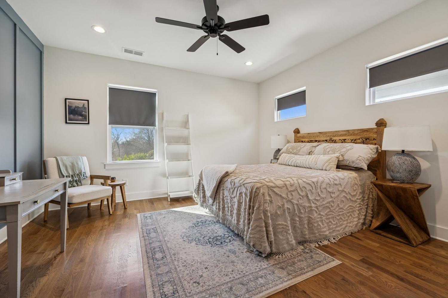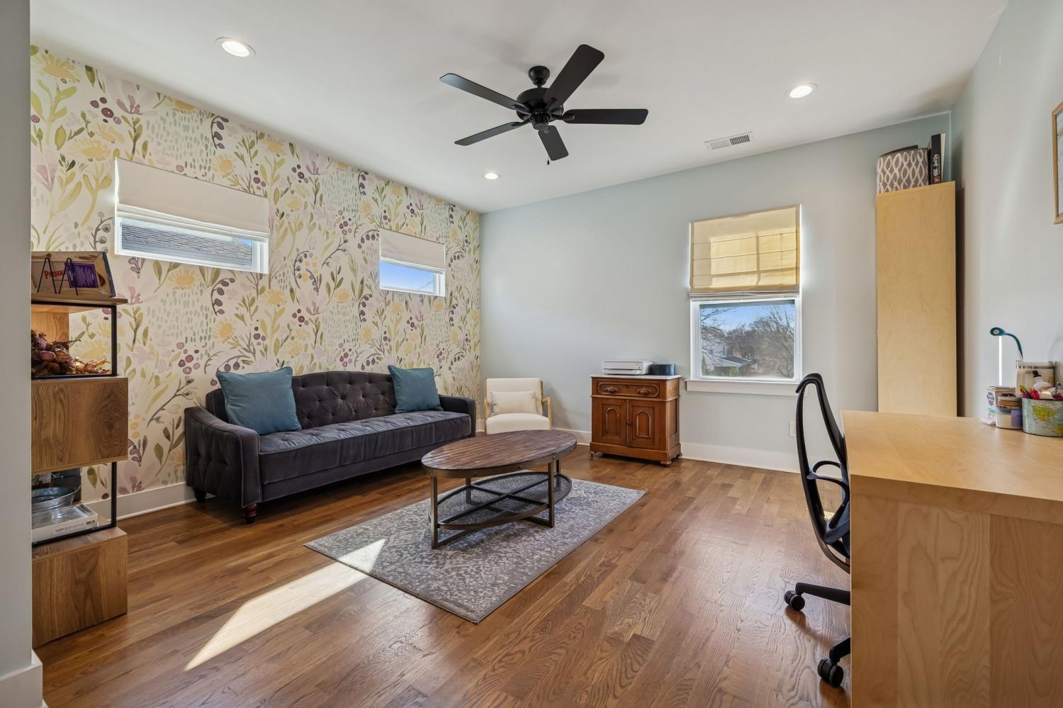 Designed for buyers who value privacy, flexibility, and a truly walkable Nashville lifestyle, this modern Woodycrest residence offers a rare 3bedroom layout where every bedroom is a private en-suite, plus an additional half bath for guests, ideal for hosting, roommates, or a growing household that values personal space. The open-concept main level is built for entertaining, effortlessly connecting the living, dining, and kitchen spaces so gatherings feel natural and inviting. The kitchen anchors the home with lofty ceiling heights, an oversized island, and abundant cabinetry, making it equally suited for casual mornings or game-day hosting. Throughout the home, real white oak hardwoods, expansive closets, and designer-selected wallpaper and finishes elevate everyday living with thoughtful detail and style. Outdoor living is just as intentional. Step onto the covered rear deck overlooking a landscaped, fenced backyard complete with stone pavers and a firepit, a private, year-round extension of the home perfect for relaxing, entertaining, or hosting friends before heading out. A two-car garage adds everyday convenience, while the neighborhood community garden fosters a sense of connection rarely found this close to downtown. Just a short walk to GEODIS Park, the home offers effortless access to Nashville SC matches and major concerts, walk over, skip the parking, and be home in minutes. Minutes from downtown and only moments from Wedgewood-Houston favorites like Aba, Soho House, Pastis, and Bastion, with walkable access to coffee shops, local eateries, and Game Terminal, this home delivers close-in Nashville living designed for how people actually live today.