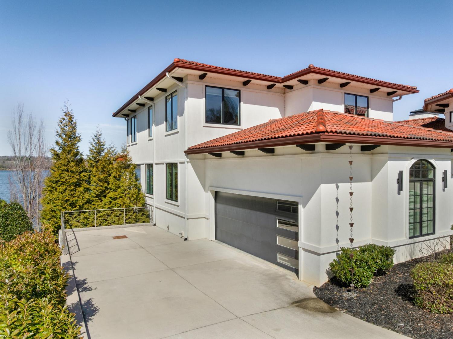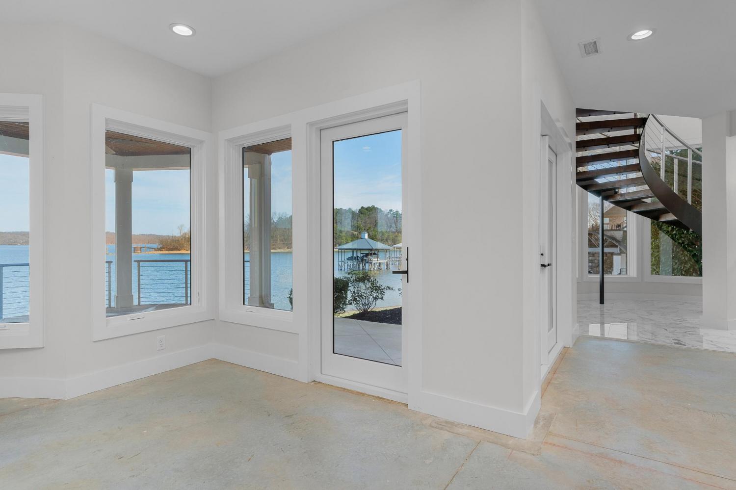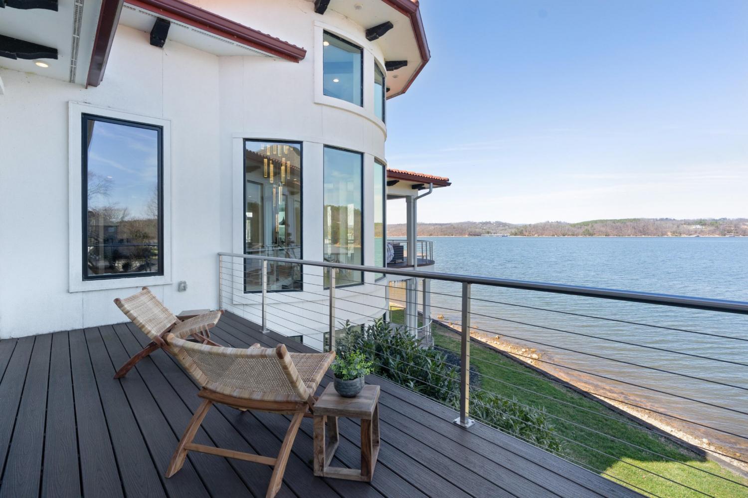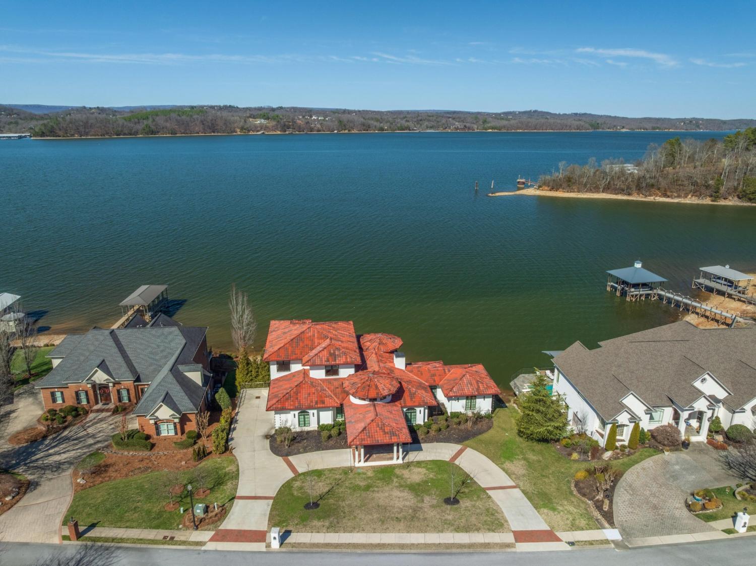 Luxury Lakefront Living! 6 bedrooms 6.5 bath custom home on Chickamauga Lake in the gated Windward Pointe neighborhood approximately 20 minutes from downtown Chattanooga. Premium finishes include marble tile floors, stone countertops, specialty ceilings, architecturally distinctive staircases and lighting, plantation shutters, casement windows, fantastic outdoor living spaces with sweeping views of the water, a double garage, a porte-cochere entry and a utility garage in the daylight basement. The main level has an open floor plan with a large circular foyer and dramatic lighting that sets the tone for the rest of this impressive, modern home. There is an office or sitting area to the right, a spacious great room with a tile accent wall with an inset fireplace, a formal dining room, a well-appointed kitchen with a large island, soft-close and pull-out drawers, under-cabinet and pendant lighting, high-end appliance, a breakfast area and a pantry in the hallway. This space has access to the covered deck that spans the back of the house and provides the perfect flow for both everyday living and entertaining. Just down the hall, you will find the powder room, mudroom with access to the garage for easy loading and unloading, the laundry room, and a guest bedroom suite with access to the deck. The primary suite is on the opposite side of the house and boasts a private deck, a walk-in closet with organizer system, and a beautiful primary bath with separate floating vanities, a deep copper tub positioned and a separate shower with steam, rain head, body sprays and a picture window to take advantage of the views. The upper level has a landing area that would be perfect for an office space and 3 additional bedrooms with walk-in closets and private baths - all with floating vanities and tiled showers. Head downstairs via the sweeping wood and metal staircase where you will find a huge family or rec room that is stubbed for a refreshment center and has multiple doors to the cov