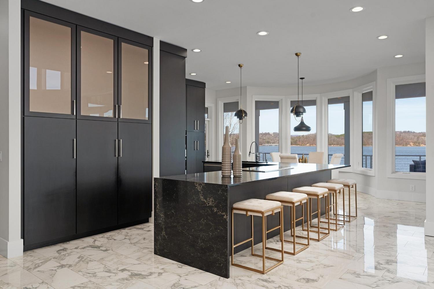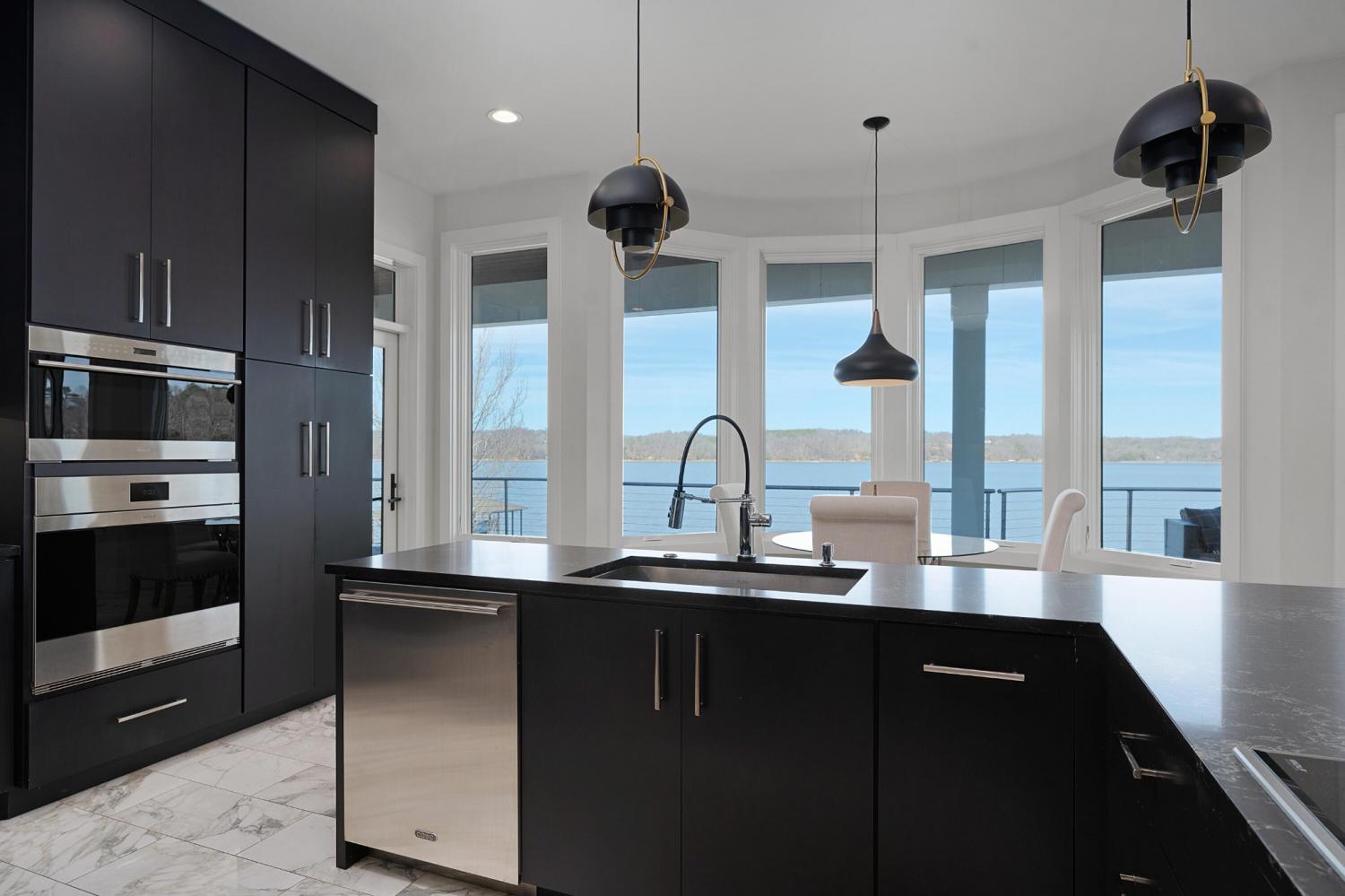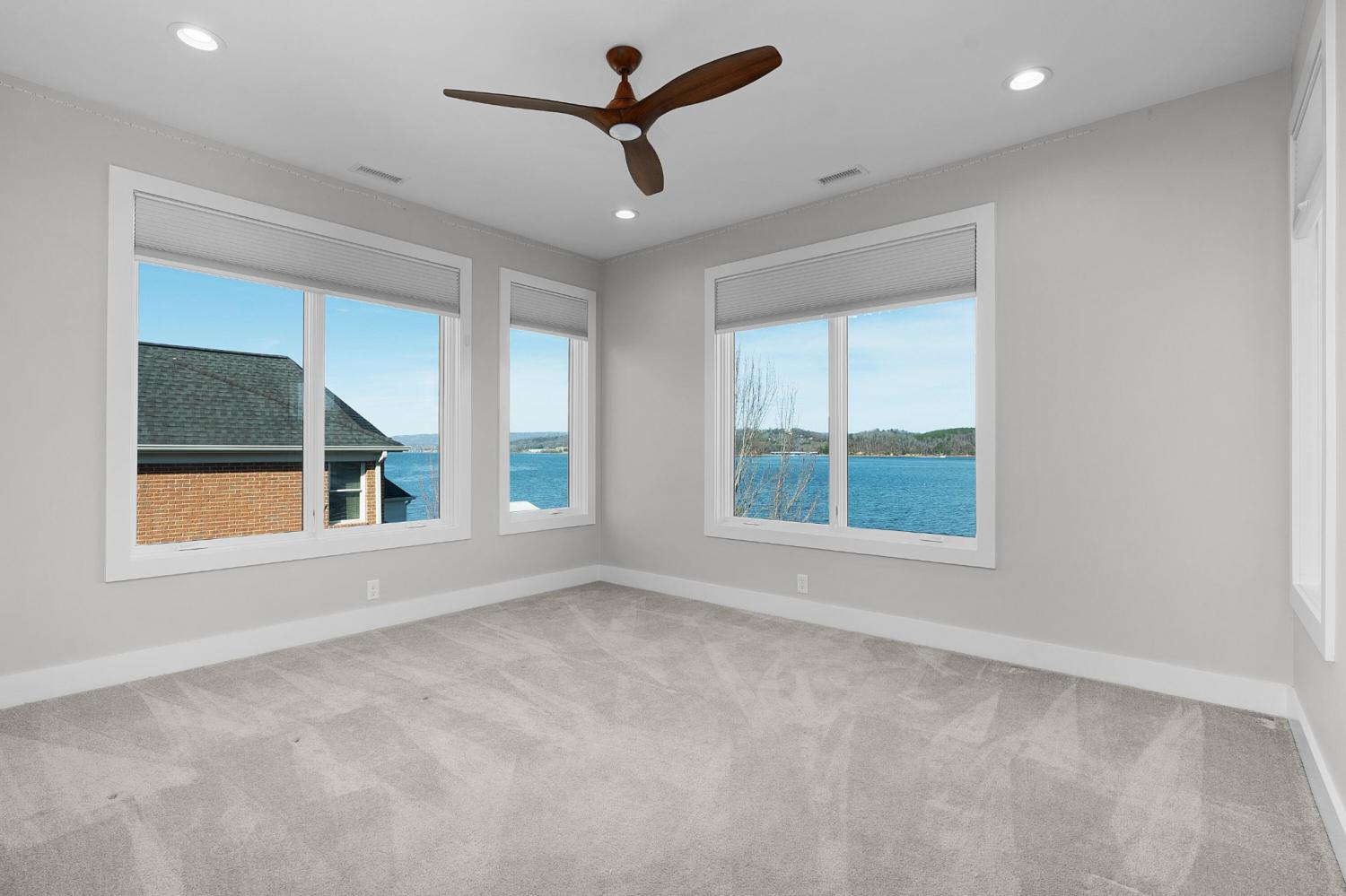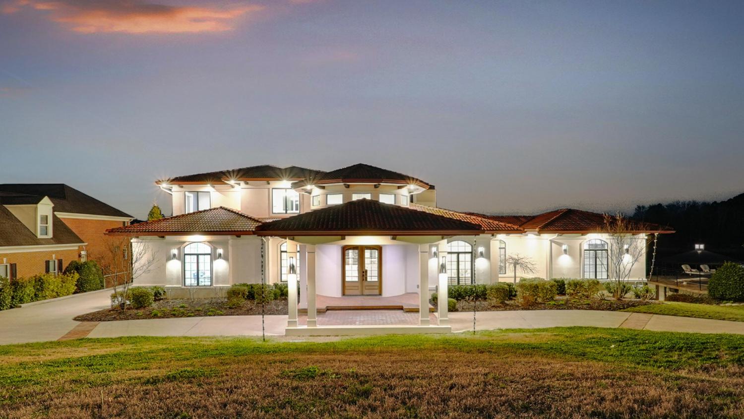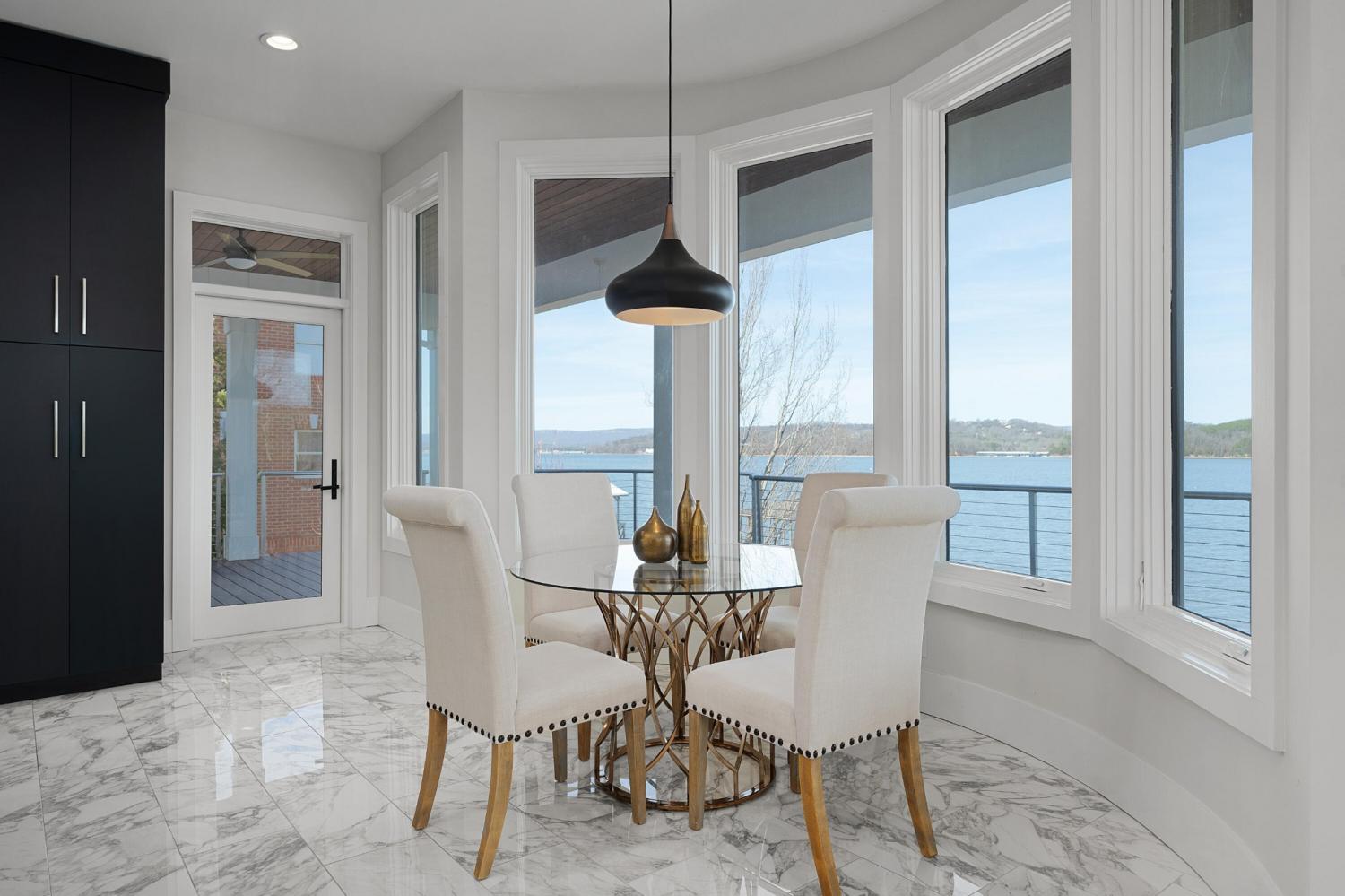 Luxury Lakefront Living! 6 bedrooms 6.5 bath custom home on Chickamauga Lake in the gated Windward Pointe neighborhood approximately 20 minutes from downtown Chattanooga. Premium finishes include marble tile floors, stone countertops, specialty ceilings, architecturally distinctive staircases and lighting, plantation shutters, casement windows, fantastic outdoor living spaces with sweeping views of the water, a double garage, a porte-cochere entry and a utility garage in the daylight basement. The main level has an open floor plan with a large circular foyer and dramatic lighting that sets the tone for the rest of this impressive, modern home. There is an office or sitting area to the right, a spacious great room with a tile accent wall with an inset fireplace, a formal dining room, a well-appointed kitchen with a large island, soft-close and pull-out drawers, under-cabinet and pendant lighting, high-end appliance, a breakfast area and a pantry in the hallway. This space has access to the covered deck that spans the back of the house and provides the perfect flow for both everyday living and entertaining. Just down the hall, you will find the powder room, mudroom with access to the garage for easy loading and unloading, the laundry room, and a guest bedroom suite with access to the deck. The primary suite is on the opposite side of the house and boasts a private deck, a walk-in closet with organizer system, and a beautiful primary bath with separate floating vanities, a deep copper tub positioned and a separate shower with steam, rain head, body sprays and a picture window to take advantage of the views. The upper level has a landing area that would be perfect for an office space and 3 additional bedrooms with walk-in closets and private baths - all with floating vanities and tiled showers. Head downstairs via the sweeping wood and metal staircase where you will find a huge family or rec room that is stubbed for a refreshment center and has multiple doors to the cov