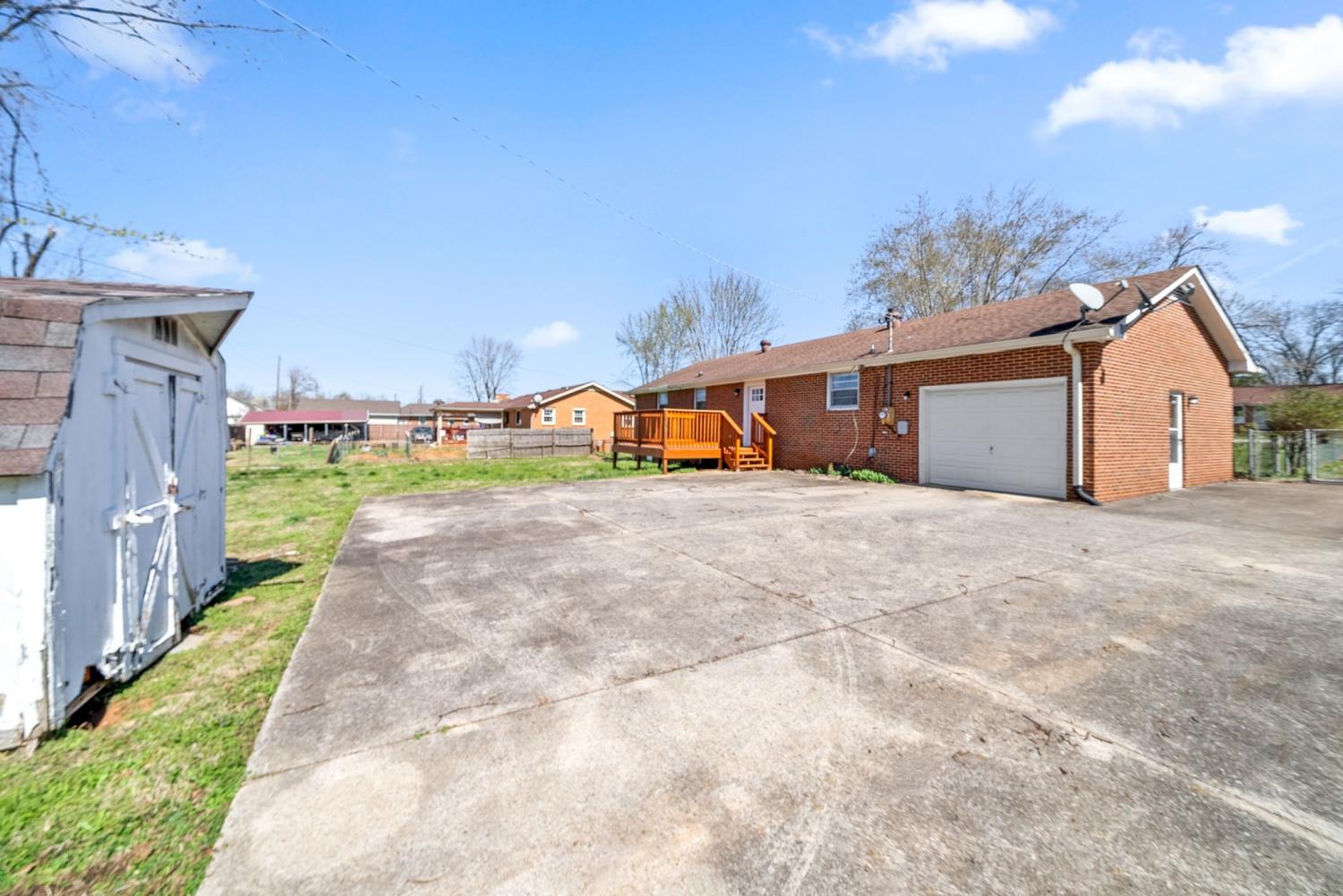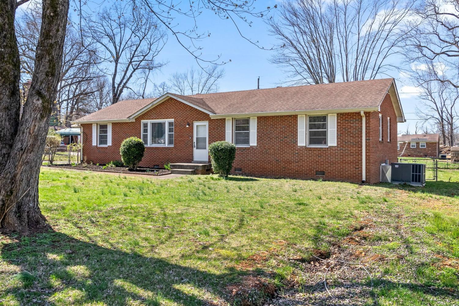 Nice brick ranch home near Fort Campbell. Large, updated and spacious eat in kitchen with quartz countertops and large living room. Half bathroom is in primary bedroom! Huge yard that is well maintained and fenced. Storage building in the yard. One-car garage with additional parking in back. No HOA in this neighborhood! Close to shopping and dining. Close to post and not far from downtown! Situated near 41A to hit the interstate as well.