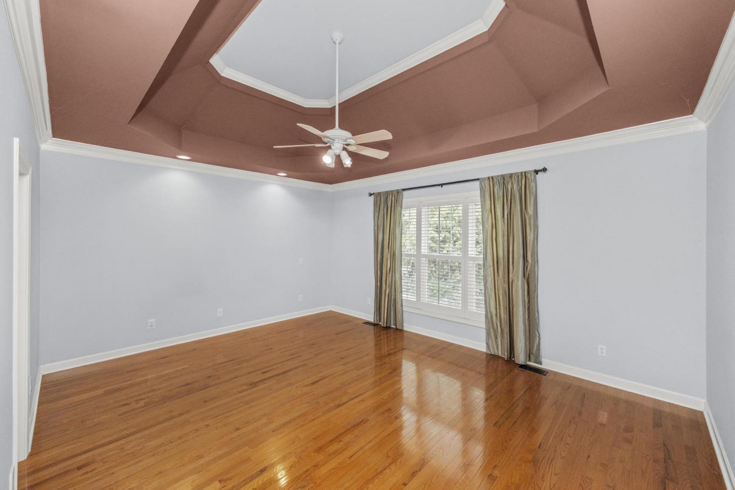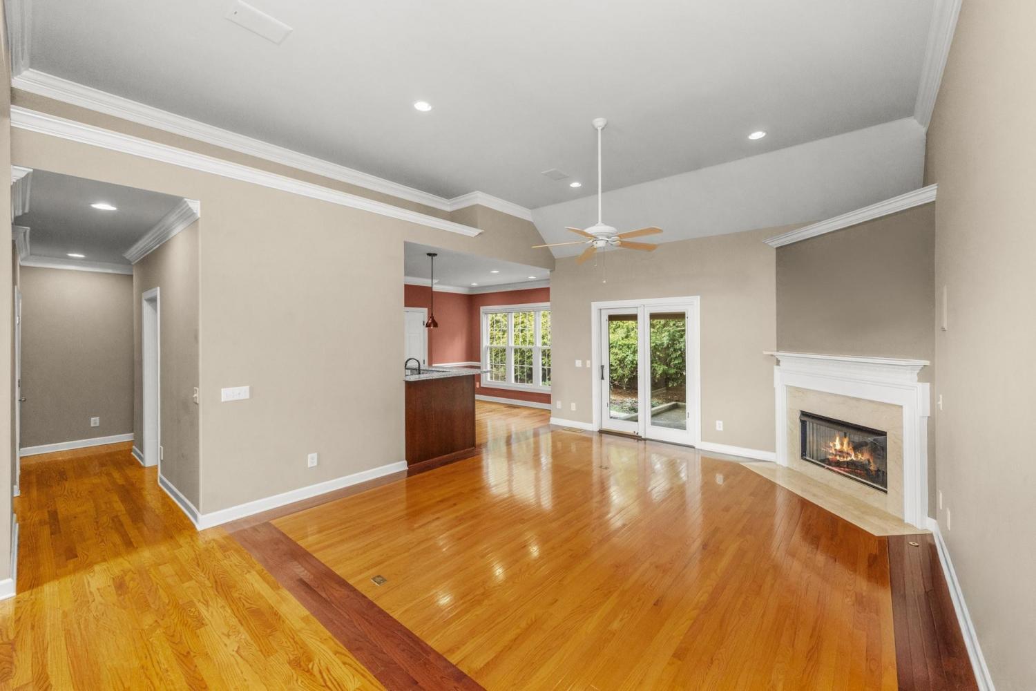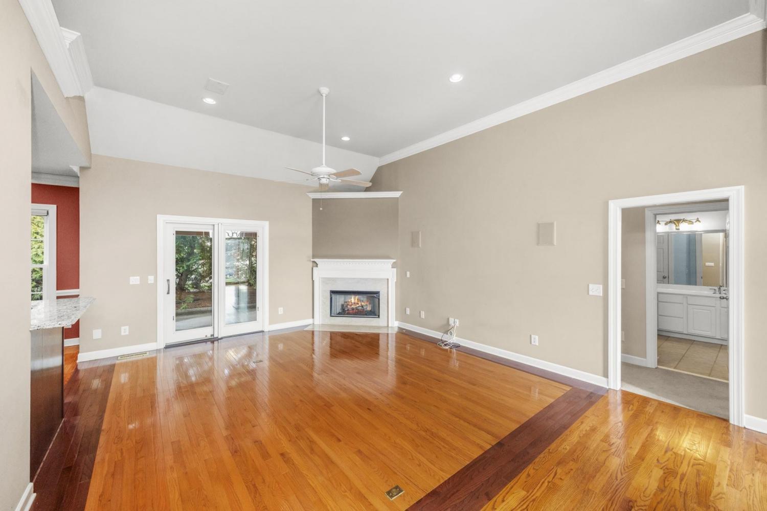 .Hard to find and beautifully maintained, this mostly one-level home sits directly across from Bluegrass Country Club & Golf Course, with only a bonus room upstairs. Inside, you’ll find hardwood floors throughout, volume ceilings, plantation shutters, and generous storage. The insulated garage, with rubber flooring, easily accommodates a golf cart. Outdoor living shines with a covered patio, extra deck, and an exceptionally private backyard filled with gorgeous perennials. Additional highlights include Pella windows, tankless hot water, encapsulated crawlspace, and full-yard irrigation on a separate meter.