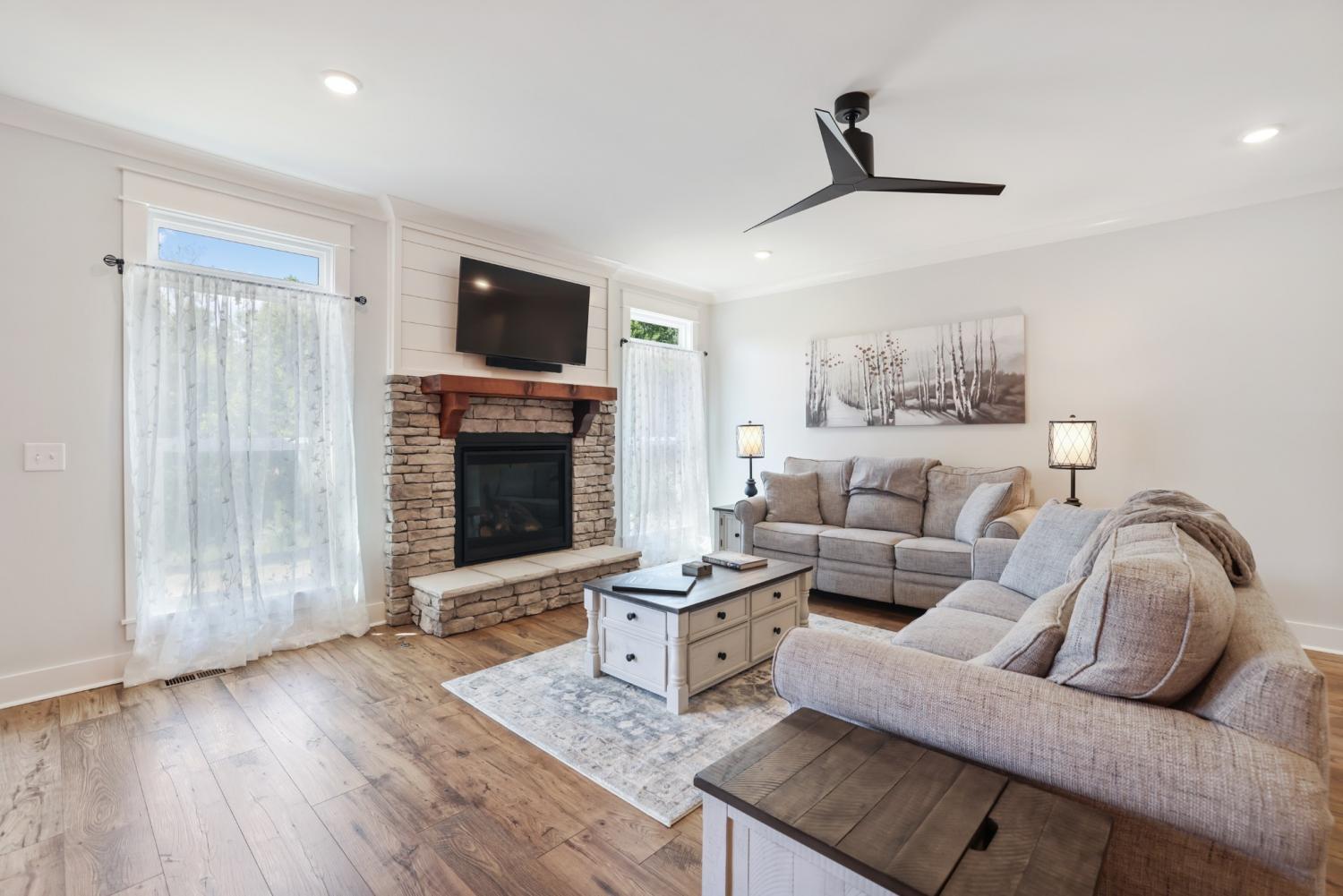 Huge Reduction in Price! This stunning 3-bedroom, 3-bathroom home offers nearly 3,000 square feet of beautifully designed living space and sits on over half an acre with a serene, tree-lined backyard for ultimate privacy. Built less than a year ago, this home is practically brand new, and even better, the sellers have invested over $100K in thoughtful upgrades. Step inside to find a bright and welcoming layout featuring a dedicated home office with French doors and a formal dining area that flows seamlessly into the kitchen. The kitchen is a dream with crisp white cabinetry, stainless steel appliances, a large center island, and an adjacent eat-in dining space. The open-concept living area is anchored by a cozy stacked stone fireplace, perfect for gathering. The main-level primary suite is a true retreat, featuring a tray ceiling, an expansive en-suite bathroom with a soaking tub, split dual vanities, a frameless glass shower, and a large walk-in closet. Comfortable guest bedrooms and upgraded finishes throughout add to the appeal, and the home includes a spacious bonus room and an additional full bathroom upstairs. Enjoy outdoor living on the covered deck overlooking the spacious backyard. The 3-car garage offers ample storage and functionality. This home is the perfect blend of modern luxury and timeless comfort, move-in ready and better than new! Up to 1% lender credit on the loan amount when buyer uses Seller's Preferred Lender.