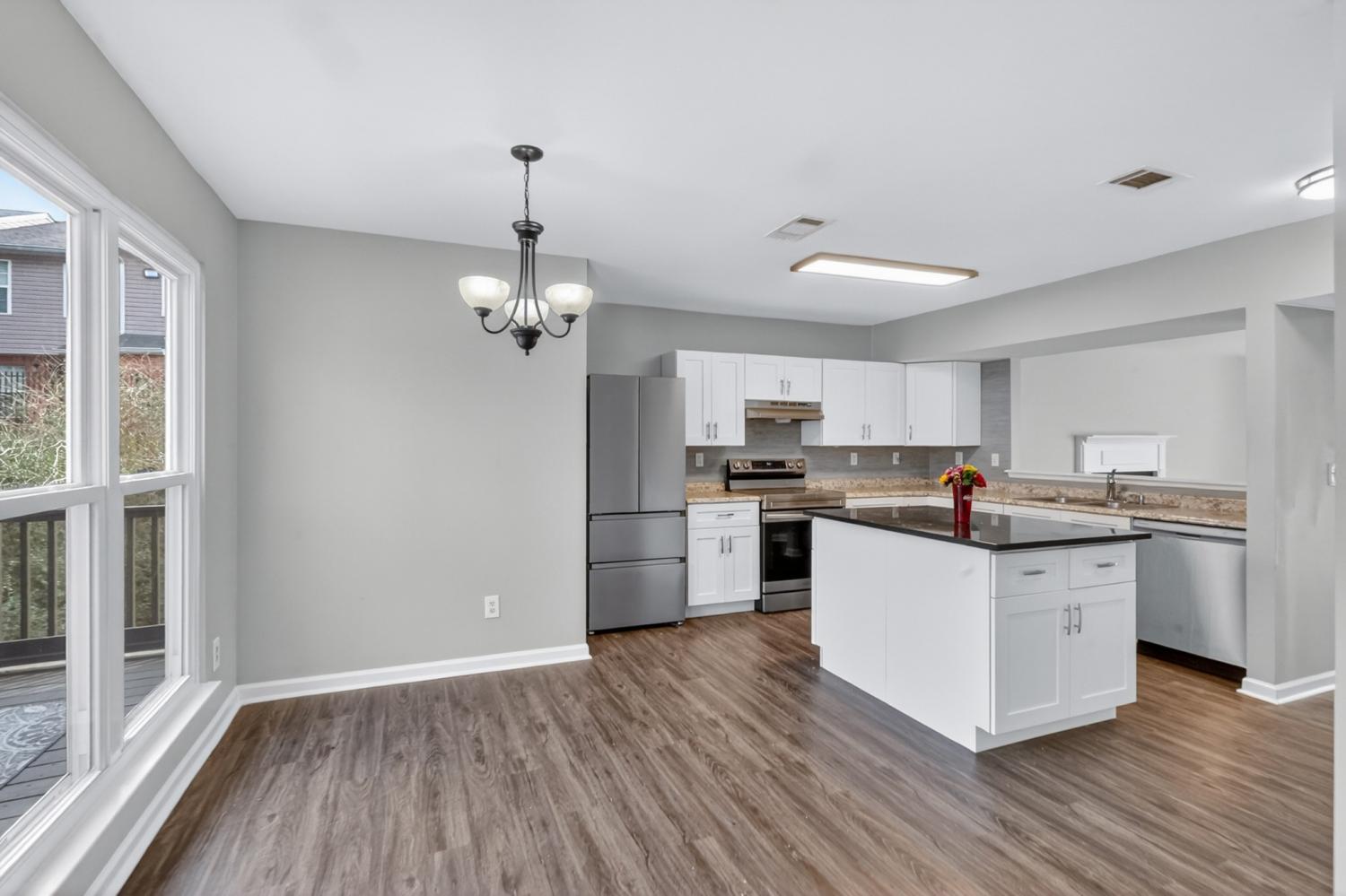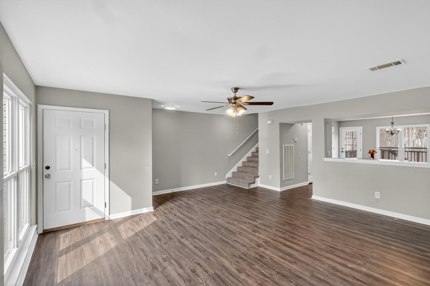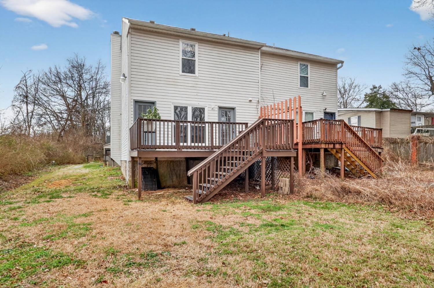 Welcome home to this spacious two-story property offering comfortable living spaces, functional design, and great outdoor entertaining potential. The open main living area features durable flooring, abundant natural light, and easy access to the rear deck — perfect for relaxing or hosting guests. The kitchen flows seamlessly into the dining and living space and includes a large island for additional prep and gathering space. The primary suite offers a generous layout with an oversized vanity, ample storage, and a clean, updated feel. Secondary spaces provide flexibility for family, guests, or a home office. Step outside to enjoy the elevated back deck overlooking a private backyard setting — ideal for morning coffee, grilling, or evening unwinding. The home sits on a spacious lot with room to personalize and make your own. Conveniently located near shopping, dining, and commuter routes, this home combines space, comfort, and value in one attractive package. No HOA fee brand new HVAC unit and water heater!