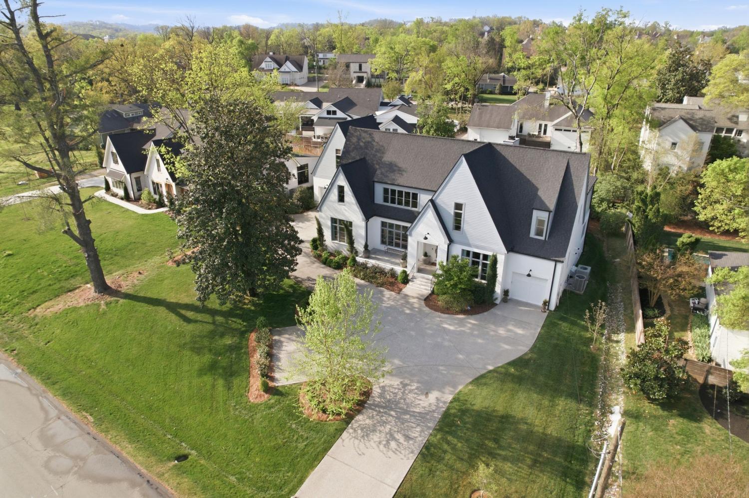 Stunning one-of-a-kind home on a private street in an unbeatable Green Hills location - very walkable with sidewalks to Julia Green, Green Hills Mall, Hill Center, Whole Foods, and all the best Green Hills spots. This home embodies modern elegance with space for everything life brings. Chef’s kitchen with Wolf/SubZero appliances, white oak cabinets, quartz countertops, large pantry, and catering kitchen/bar is a dream for entertaining. Top quality build that was completely reimagined with upgraded custom finishes, designer lighting and wallpaper - too many details to list. Formal & informal dining spaces, two bedrooms on main level, two laundry rooms, primary bathroom with large dual walk in closets. Upstairs has a media room, rec room, kids' den, bunk room, exercise area, and walk-in storage. Covered back porch w/fireplace, large fenced back yard, and heated salt water pool make this the perfect home to entertain and relax with family and friends. The entire yard has been re-designed with lush landscaping to make this a true in-town oasis. Custom drapery and custom rugs are negotiable