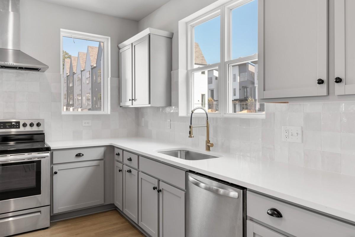 Live Healthy and Live Smart at East End Village. Fenced front yard (maintained by HOA), soaring ceilings, exposed beams and an EV charger in the 2 car garage. East End Village is known for high quality, healthy and well built townhomes connected to the outdoors with walking trail, dog park, individual fenced yards and two water features -a fountain pond and swimming pool. The progressively designed homes feature upgraded insulation (for comfort and sound control), superior framing and high efficiency heat pump water heaters. Located in Inglewood off Broadmoor between Gallatin and Dickerson Rd with quick access to Ellington Pkwy. EEV offers convenience to many parts of Nashville while maintaining a sense of privacy and seclusion from any nearby traffic.