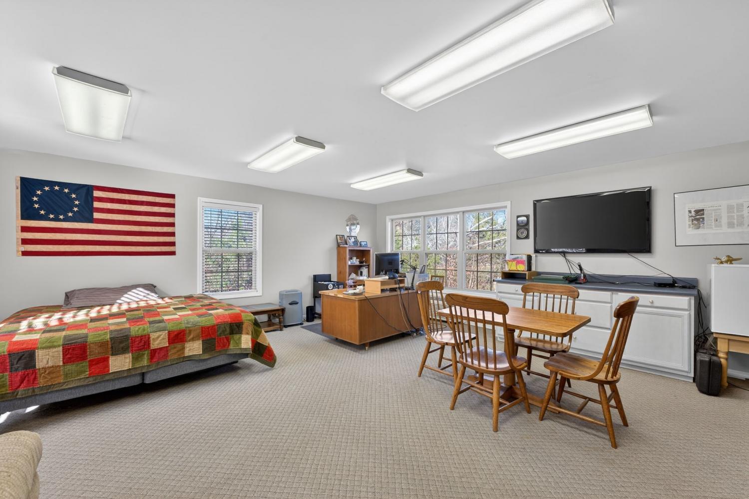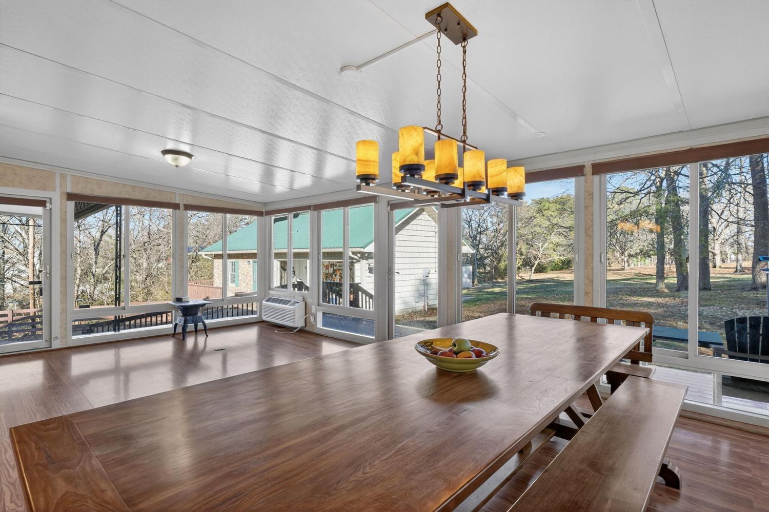 Space, storage, and serenity! Situated on 4 private acres, this 2,598 sq. ft. property is a unique find featuring ceramic floors throughout, a new deck, and fresh paint. This property includes a 450 sq. ft. detached flex building already equipped with heating and cooling for year-round use. While water is not run to this detached area, the structure offers endless potential for your specific needs—followed by an oversized 1,974 sq. ft. garage that provides incredible workspace or equipment storage with two separate storage rooms. The home features a remodeled kitchen with new stainless appliances, new water heaters, and a bright, inviting sunroom perfect for relaxing and enjoying the scenic views. A must-see for those seeking the perfect combination of expansive outdoor living and unmatched workshop capability!