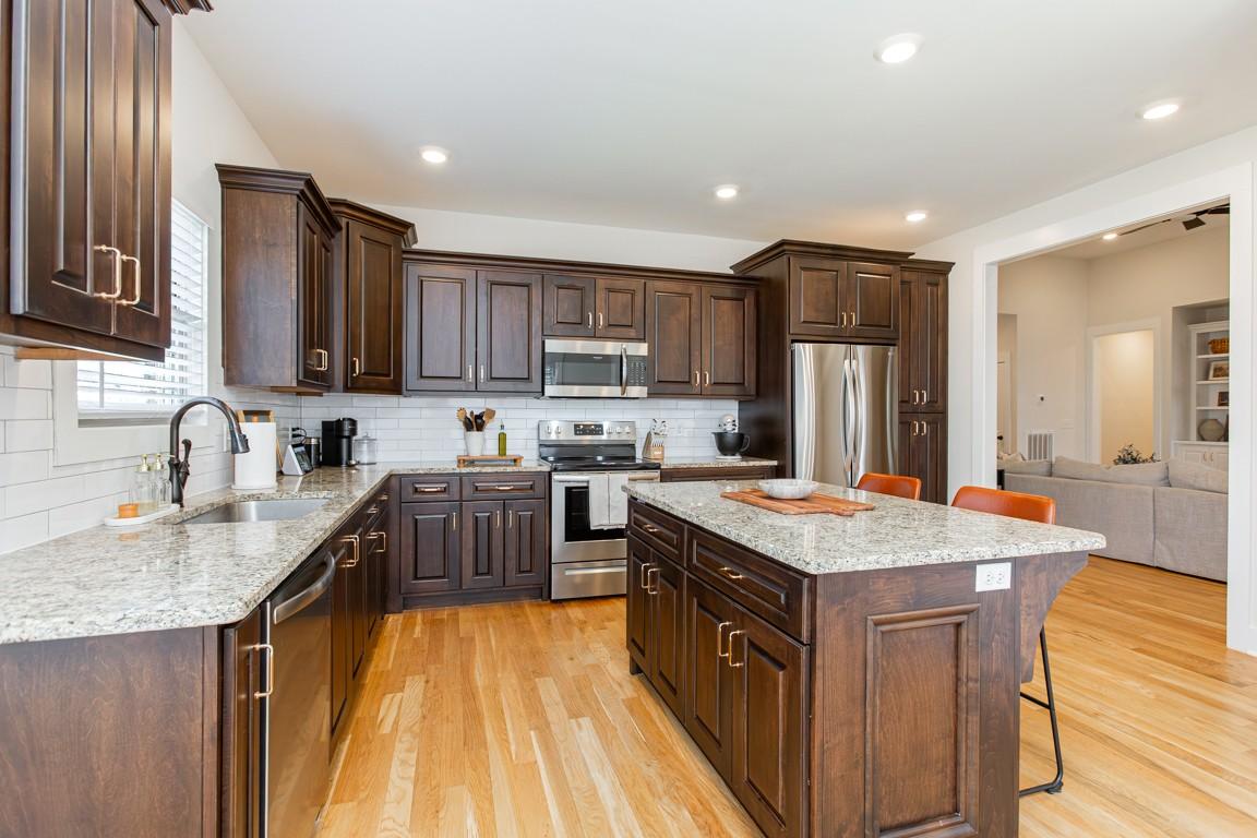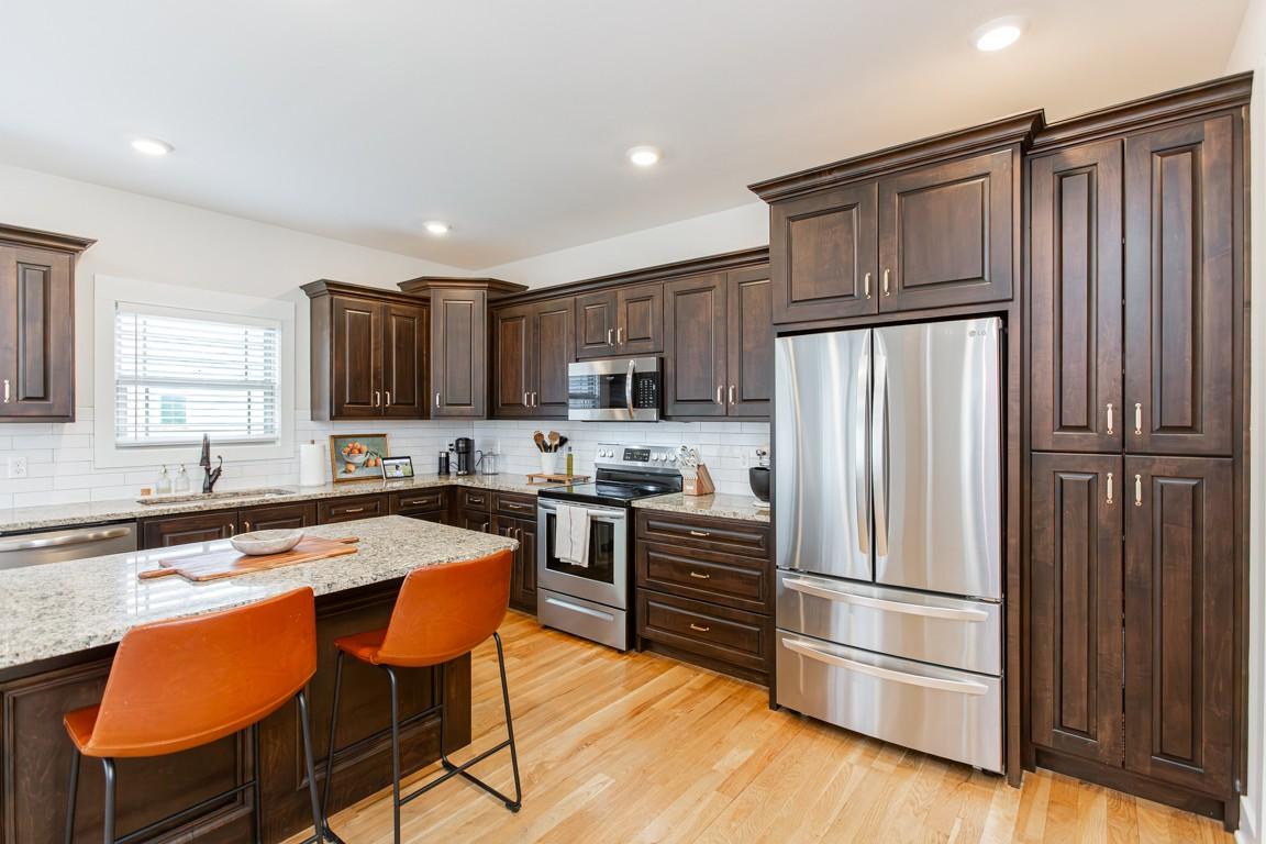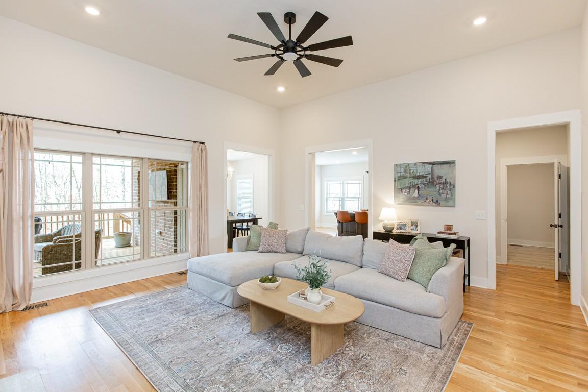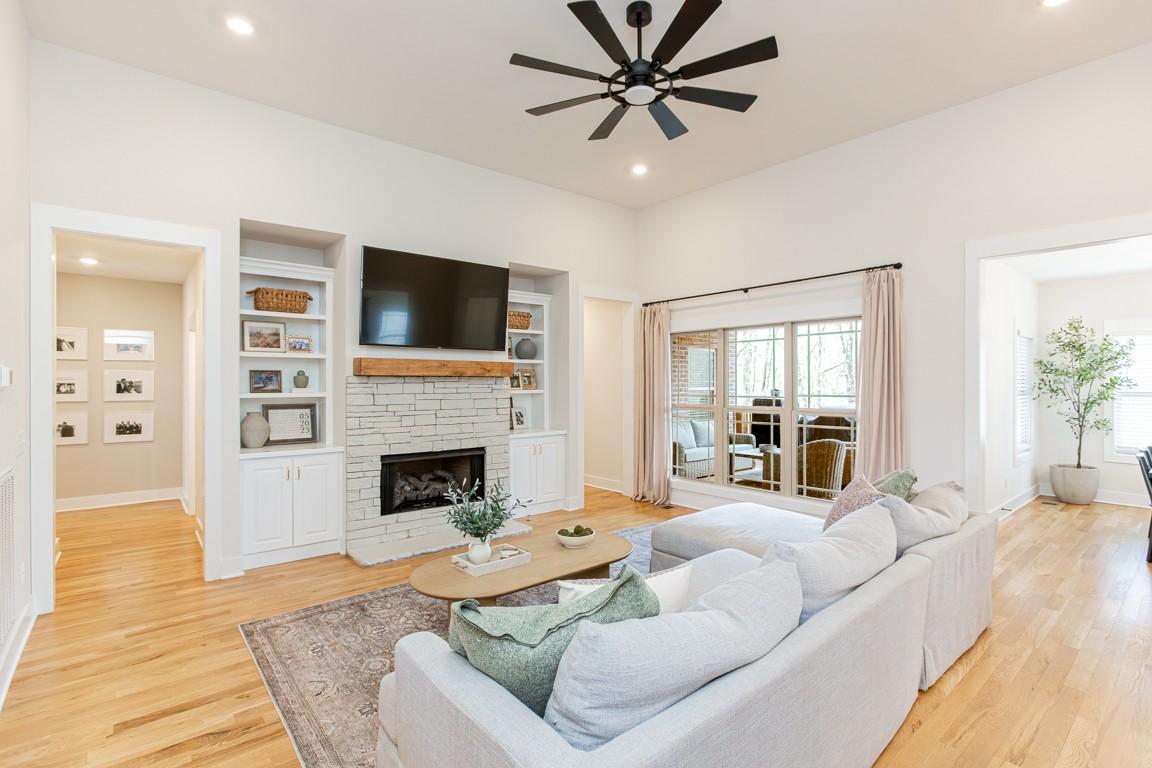 Beautiful one level living with bonus offers 3 BR 2 BA, warm hardwoods throughout, loads of natural lighting, covered rear elevated deck with expansive views of the fenced rear yard and the wooded area beyond which offers abundant privacy. The stone fireplace in the great room is flanked by built ins and the adjoining kitchen offers plenty of seating at the large island and a bright breakfast area which is flooded by natural light. The primary suite offers dual walk ins, soaking tub, shower, and a walkout door to the private rear covered porch. Custom cabinetry offers loads of storage in the mud room/laundry area with additional step up storage over the garage with easy access through the bonus room. The large bonus room is a sanctuary of its own tucked away from the main part of the home and perfectly designed for a media space. A great place to escape for some quiet time. Extensive new landscape package including an irrigation system for the well maintained lawn has been a recent addition.**Seller is under an executed purchase and sale agreement with a sale of home contingency with a two day response period.