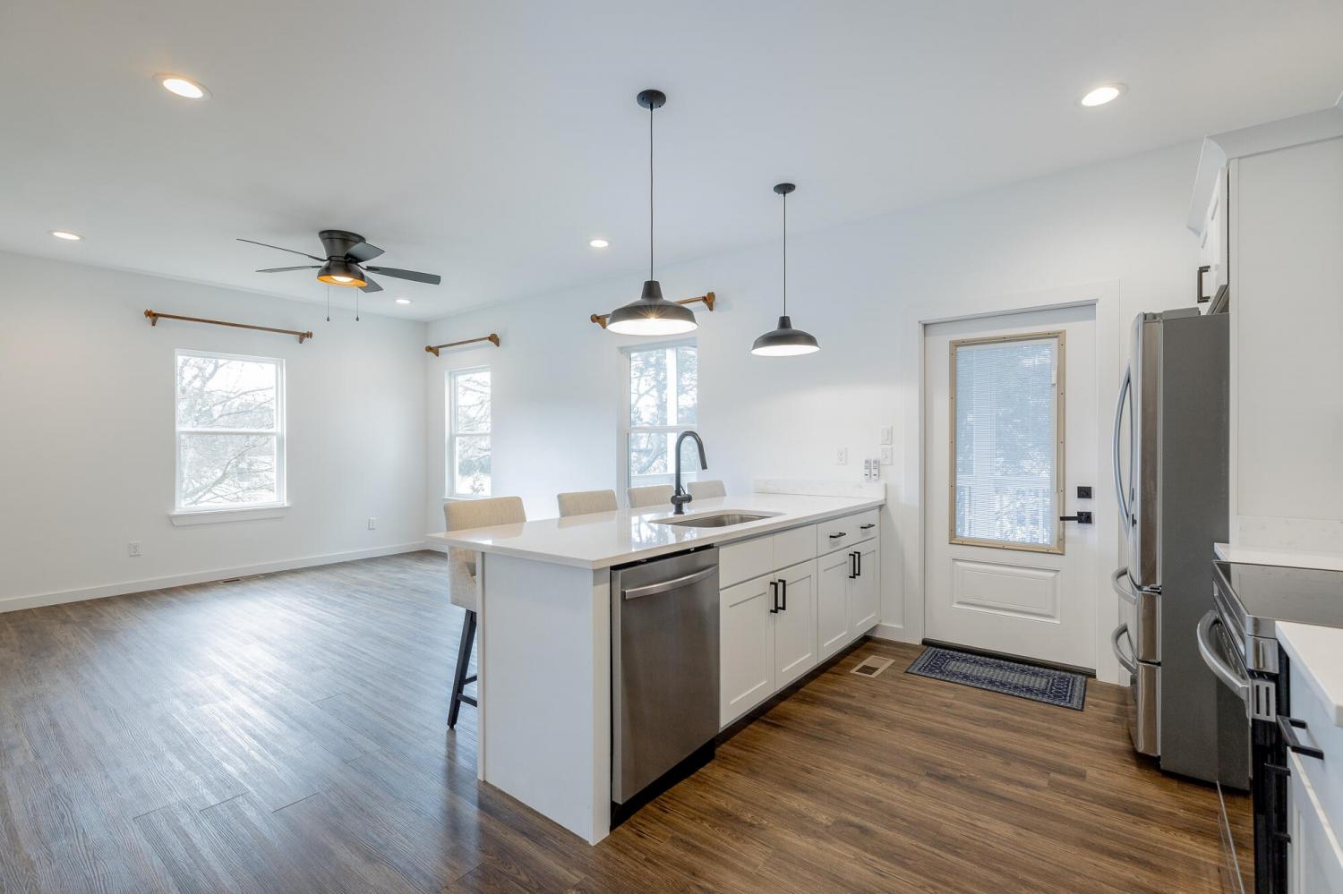 Welcome to 9443 Williams Street, a beautiful home tucked away in a quiet Soddy Daisy neighborhood. This well-designed 3-bedroom, 2-bathroom residence combines comfort and modern style from the moment you step inside. Durable engineered flooring leads you into a spacious living room that flows seamlessly into the dining area and open kitchen--ideal for both everyday living and entertaining guests. The kitchen overlooks the main living space and features quartz countertops and custom cabinetry, creating a functional and stylish heart of the home. Each bedroom is equipped with ceiling fans and additional recessed (canned) lighting, adding comfort and a thoughtful touch throughout. The exterior showcases attractive, low-maintenance James Hardie cement fiber siding for lasting durability and curb appeal. Out back, you'll find a massive screened-in porch--perfect for relaxing, hosting gatherings, or enjoying the outdoors in comfort year-round. Schedule your private showing today and see all this home has to offer!