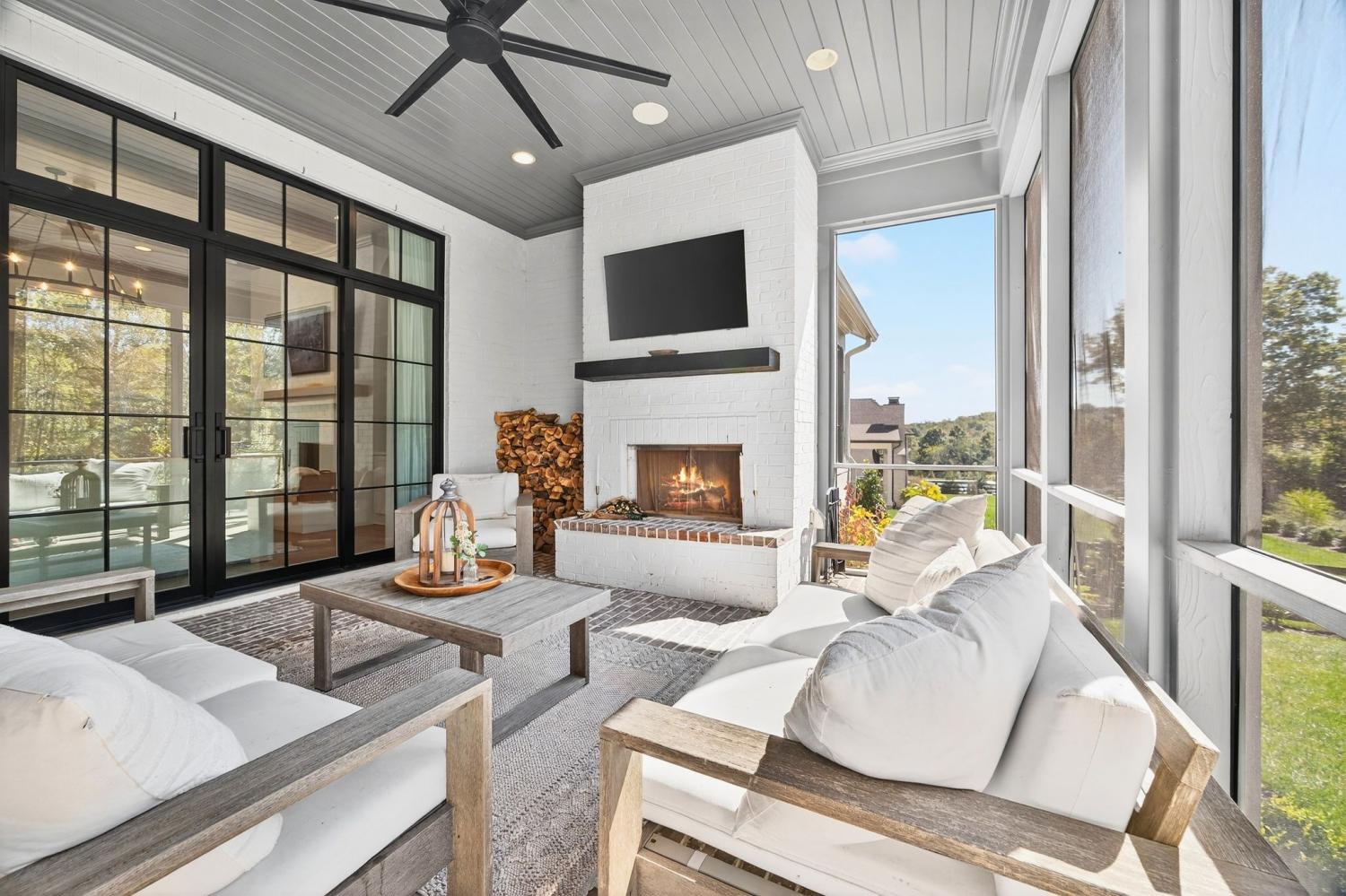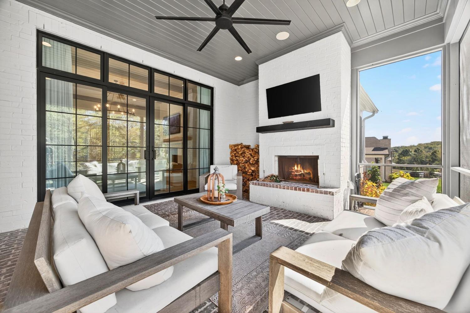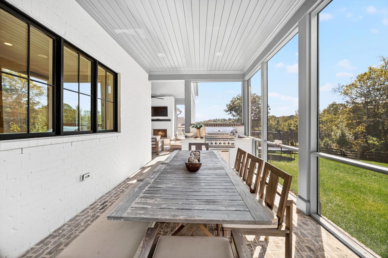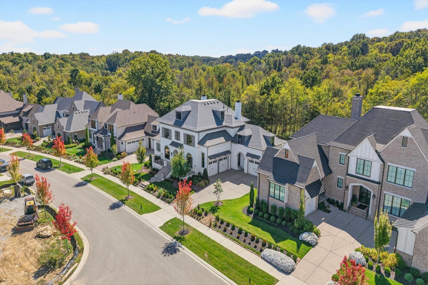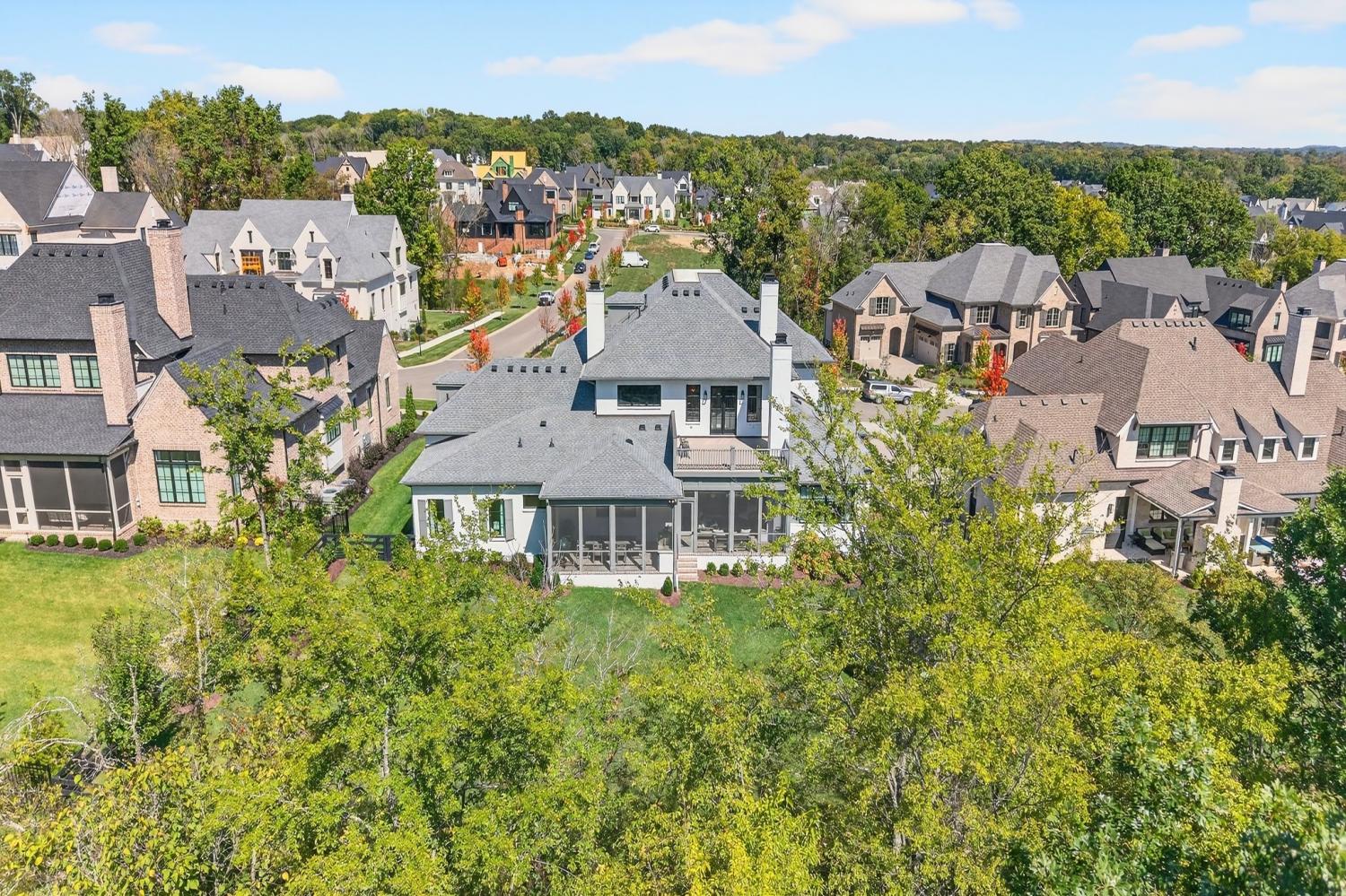 Welcome to 9307 Double Run Court—an exquisite residence nestled on a cul-de-sac street within The Grove, one of Middle Tennessee’s most exclusive golf club communities. Highly desirable tree-lined, fenced lot- thoughtfully designed for both elegance and comfort. Features include a main-level primary suite with a vaulted, wood-beamed ceiling, spa-like bath with a freestanding tub, dual vanities, and a serene view of the tree-lined backyard. Main floor also features a secondary ensuite bedroom and dedicated study. The gourmet kitchen impresses with a 48-inch Wolf range, panel refrigerator, and a seamless flow into the open living room highlighted by an Archistone fireplace and sophisticated dining area with a custom wall niche. Two screened back porches with a wood-burning fireplace and built-in grill—making the perfect backdrop for private outdoor entertaining and everyday relaxation. The lot offers a perfect space for a pool. Upstairs, you will find a spacious recreation room opening to a balcony overlooking tranquil wooded views. A hidden bookshelf door opens to a flex/hobby room with a wet bar. 2 secondary bedrooms, including an ensuite, hall bath, and storage/pocket room. Additional features include White Oak hardwoods throughout (no carpet), a three-car garage, friends' entrance, arched iron double front doors, grand foyer, designer lighting and an inviting brick front porch. Ideally located near The Gathering Place, you’ll enjoy access to the Bridge Bar, resort-style pool, playground, and tennis/pickleball courts—all within the sought-after lifestyle of The Grove.