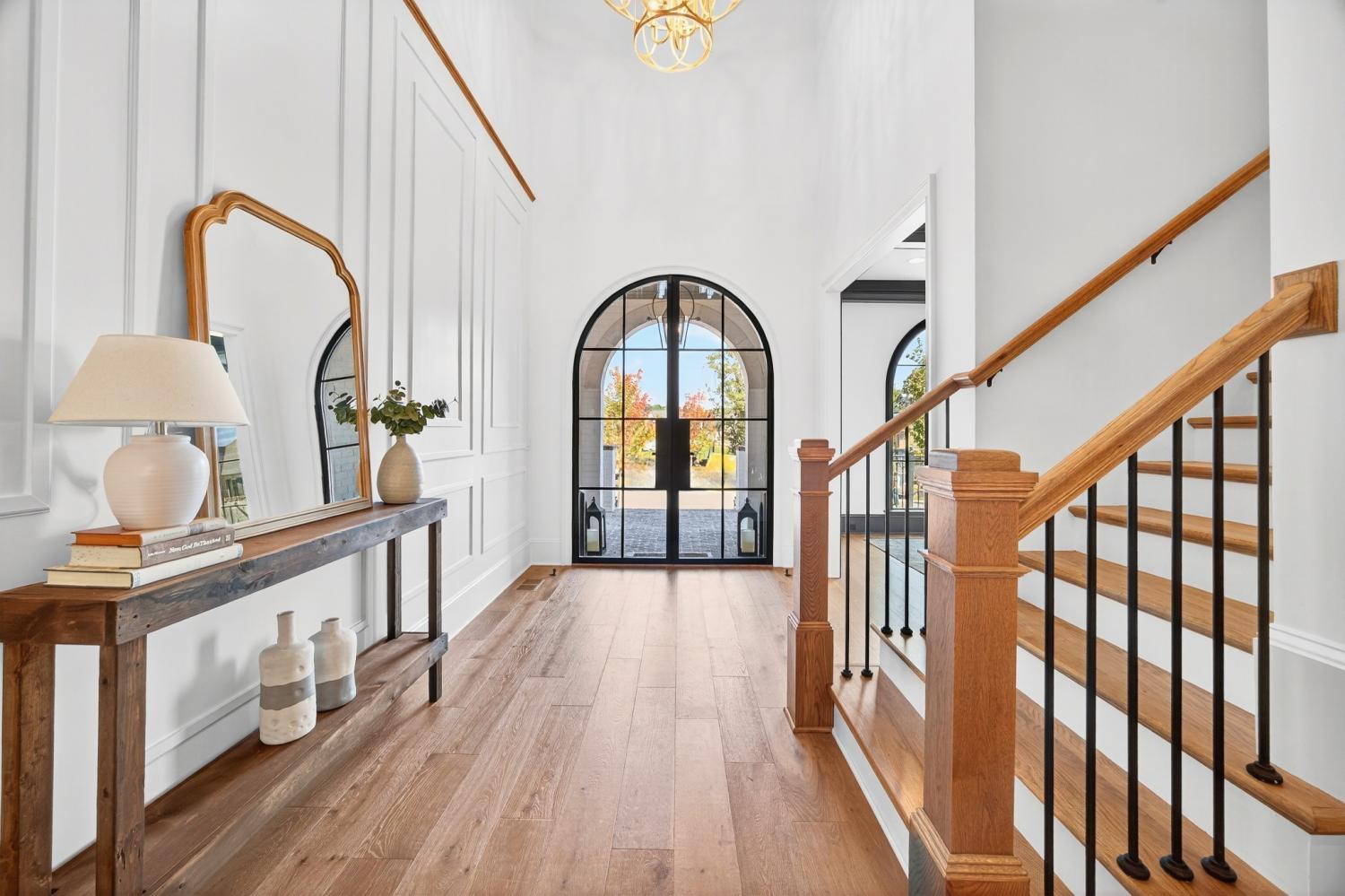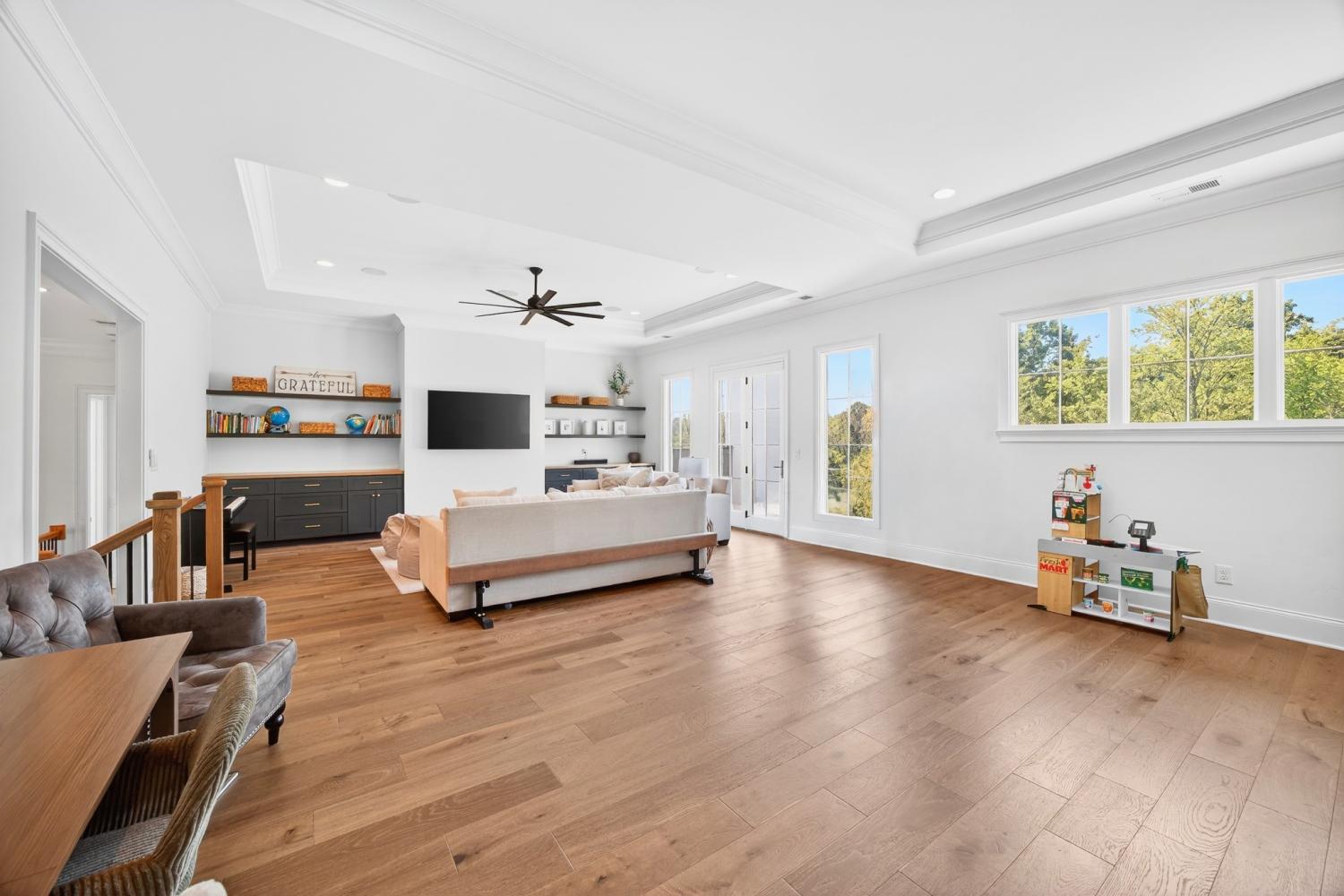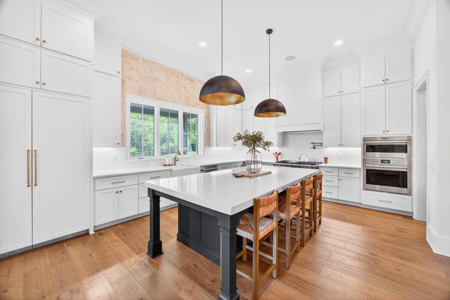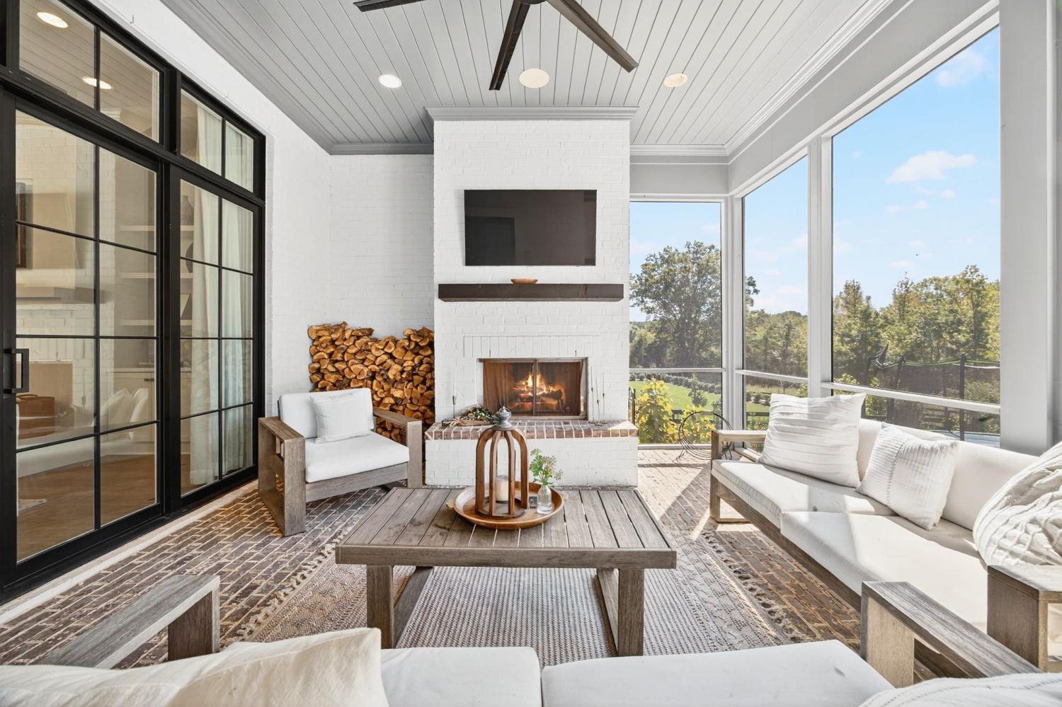 Welcome to 9307 Double Run Court—an exquisite residence nestled on a cul-de-sac street within The Grove, one of Middle Tennessee’s most exclusive golf club communities. Highly desirable tree-lined, fenced lot- thoughtfully designed for both elegance and comfort. Features include a main-level primary suite with a vaulted, wood-beamed ceiling, spa-like bath with a freestanding tub, dual vanities, and a serene view of the tree-lined backyard. Main floor also features a secondary ensuite bedroom and dedicated study. The gourmet kitchen impresses with a 48-inch Wolf range, panel refrigerator, and a seamless flow into the open living room highlighted by an Archistone fireplace and sophisticated dining area with a custom wall niche. Two screened back porches with a wood-burning fireplace and built-in grill—making the perfect backdrop for private outdoor entertaining and everyday relaxation. The lot offers a perfect space for a pool. Upstairs, you will find a spacious recreation room opening to a balcony overlooking tranquil wooded views. A hidden bookshelf door opens to a flex/hobby room with a wet bar. 2 secondary bedrooms, including an ensuite, hall bath, and storage/pocket room. Additional features include White Oak hardwoods throughout (no carpet), a three-car garage, friends' entrance, arched iron double front doors, grand foyer, designer lighting and an inviting brick front porch. Ideally located near The Gathering Place, you’ll enjoy access to the Bridge Bar, resort-style pool, playground, and tennis/pickleball courts—all within the sought-after lifestyle of The Grove.