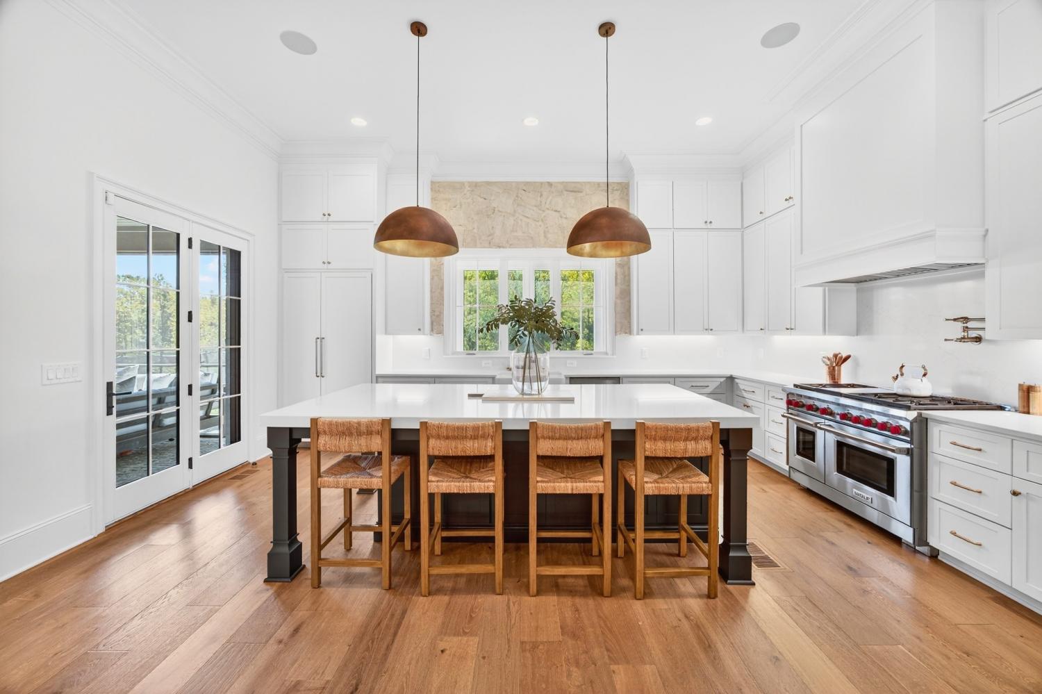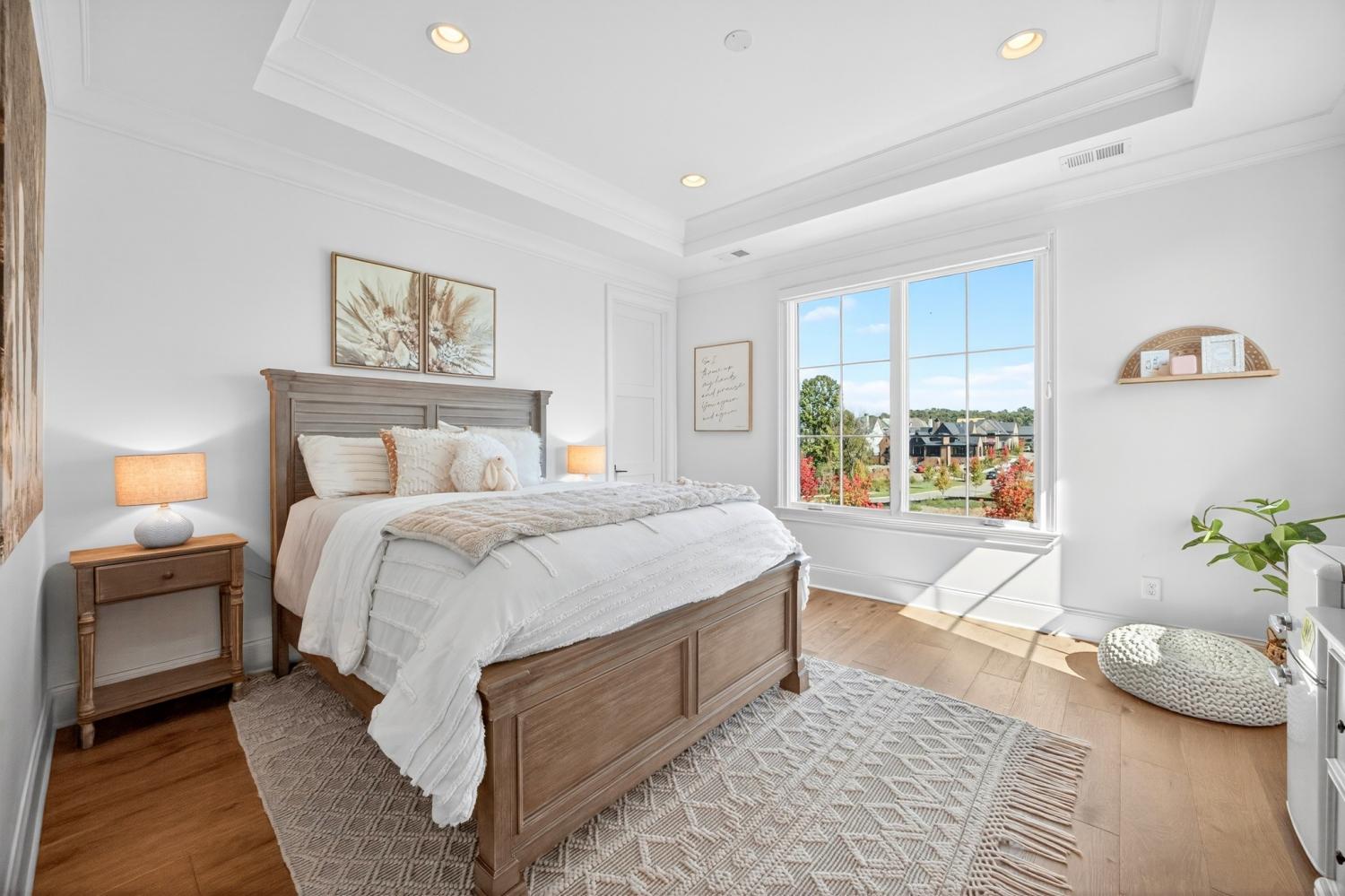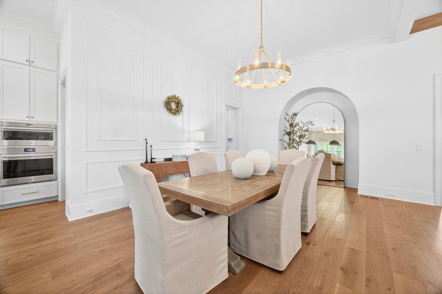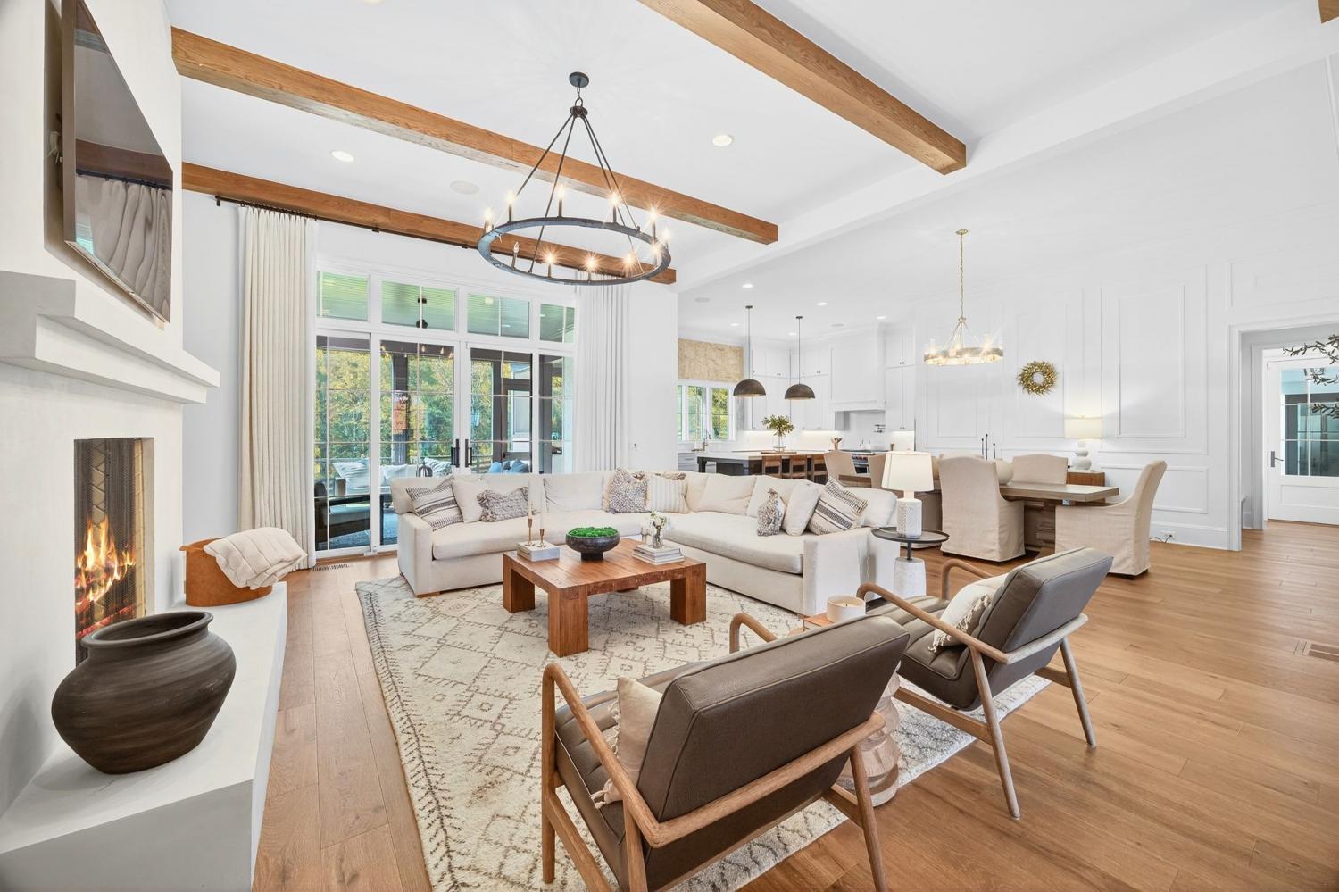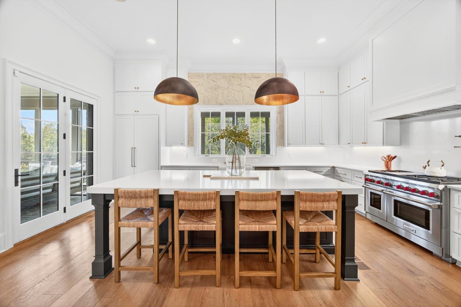 Welcome to 9307 Double Run Court—an exquisite residence nestled on a cul-de-sac street within The Grove, one of Middle Tennessee’s most exclusive golf club communities. Highly desirable tree-lined, fenced lot- thoughtfully designed for both elegance and comfort. Features include a main-level primary suite with a vaulted, wood-beamed ceiling, spa-like bath with a freestanding tub, dual vanities, and a serene view of the tree-lined backyard. Main floor also features a secondary ensuite bedroom and dedicated study. The gourmet kitchen impresses with a 48-inch Wolf range, panel refrigerator, and a seamless flow into the open living room highlighted by an Archistone fireplace and sophisticated dining area with a custom wall niche. Two screened back porches with a wood-burning fireplace and built-in grill—making the perfect backdrop for private outdoor entertaining and everyday relaxation. The lot offers a perfect space for a pool. Upstairs, you will find a spacious recreation room opening to a balcony overlooking tranquil wooded views. A hidden bookshelf door opens to a flex/hobby room with a wet bar. 2 secondary bedrooms, including an ensuite, hall bath, and storage/pocket room. Additional features include White Oak hardwoods throughout (no carpet), a three-car garage, friends' entrance, arched iron double front doors, grand foyer, designer lighting and an inviting brick front porch. Ideally located near The Gathering Place, you’ll enjoy access to the Bridge Bar, resort-style pool, playground, and tennis/pickleball courts—all within the sought-after lifestyle of The Grove.
