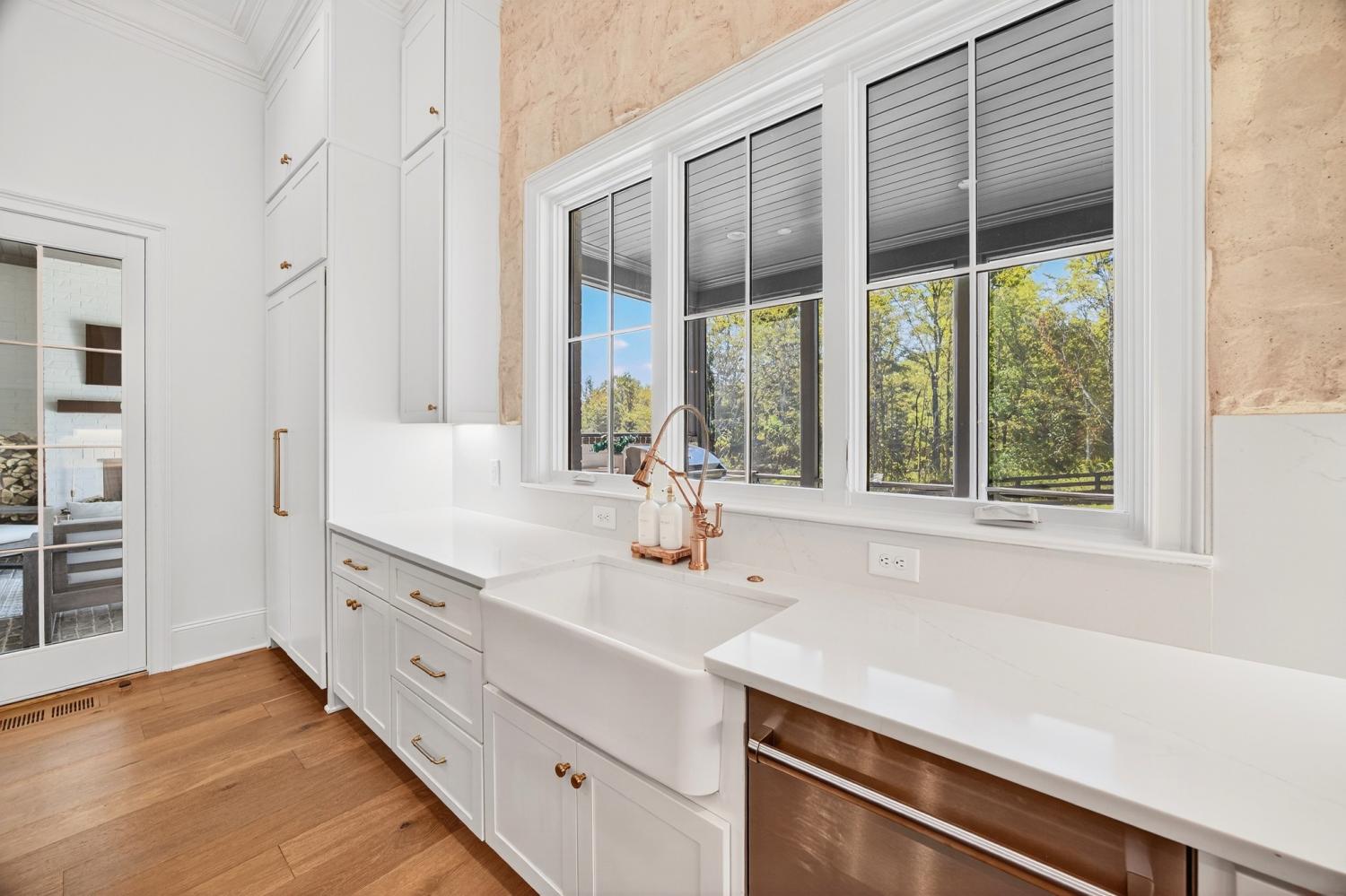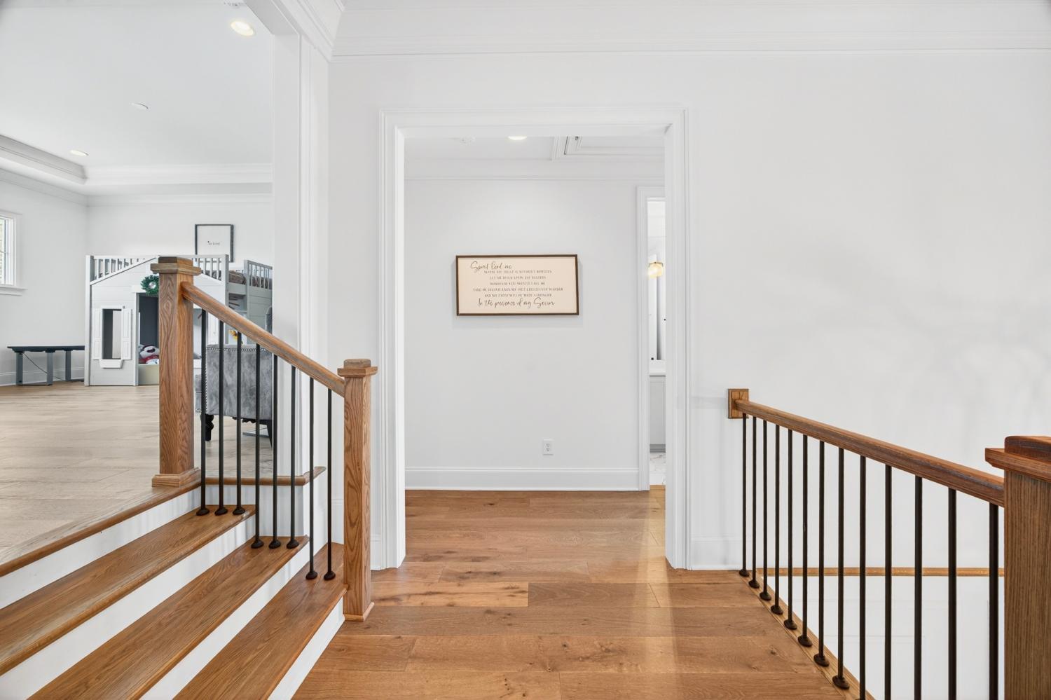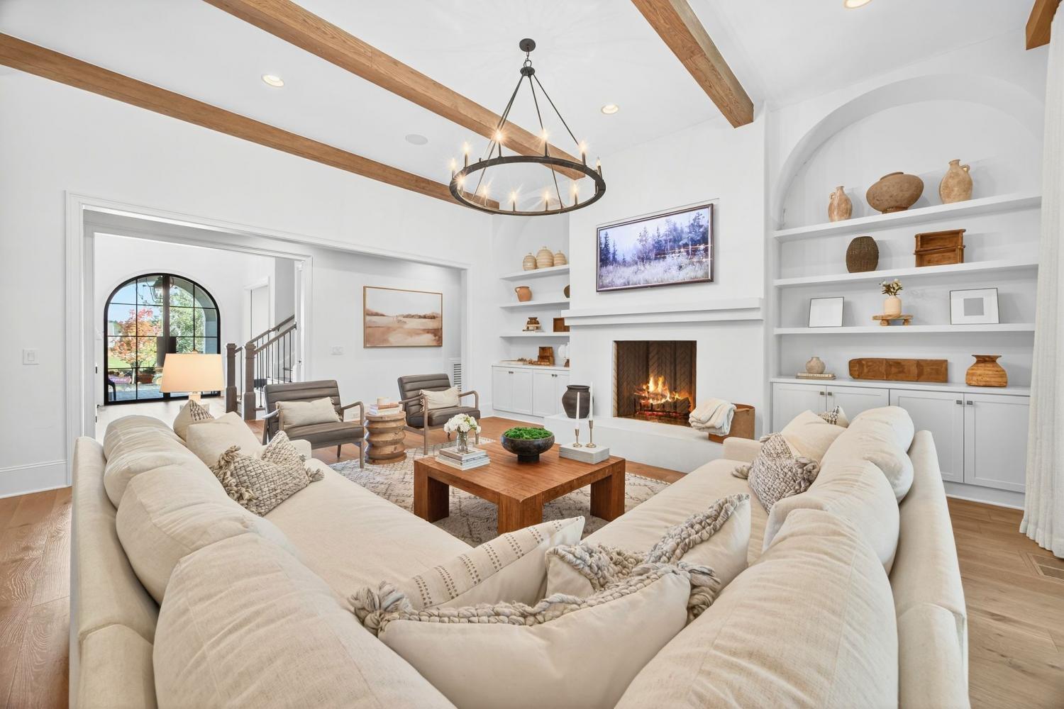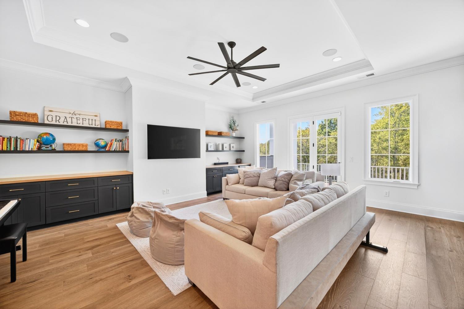 Welcome to 9307 Double Run Court—an exquisite residence nestled on a cul-de-sac street within The Grove, one of Middle Tennessee’s most exclusive golf club communities. Highly desirable tree-lined, fenced lot- thoughtfully designed for both elegance and comfort. Features include a main-level primary suite with a vaulted, wood-beamed ceiling, spa-like bath with a freestanding tub, dual vanities, and a serene view of the tree-lined backyard. Main floor also features a secondary ensuite bedroom and dedicated study. The gourmet kitchen impresses with a 48-inch Wolf range, panel refrigerator, and a seamless flow into the open living room highlighted by an Archistone fireplace and sophisticated dining area with a custom wall niche. Two screened back porches with a wood-burning fireplace and built-in grill—making the perfect backdrop for private outdoor entertaining and everyday relaxation. The lot offers a perfect space for a pool. Upstairs, you will find a spacious recreation room opening to a balcony overlooking tranquil wooded views. A hidden bookshelf door opens to a flex/hobby room with a wet bar. 2 secondary bedrooms, including an ensuite, hall bath, and storage/pocket room. Additional features include White Oak hardwoods throughout (no carpet), a three-car garage, friends' entrance, arched iron double front doors, grand foyer, designer lighting and an inviting brick front porch. Ideally located near The Gathering Place, you’ll enjoy access to the Bridge Bar, resort-style pool, playground, and tennis/pickleball courts—all within the sought-after lifestyle of The Grove.