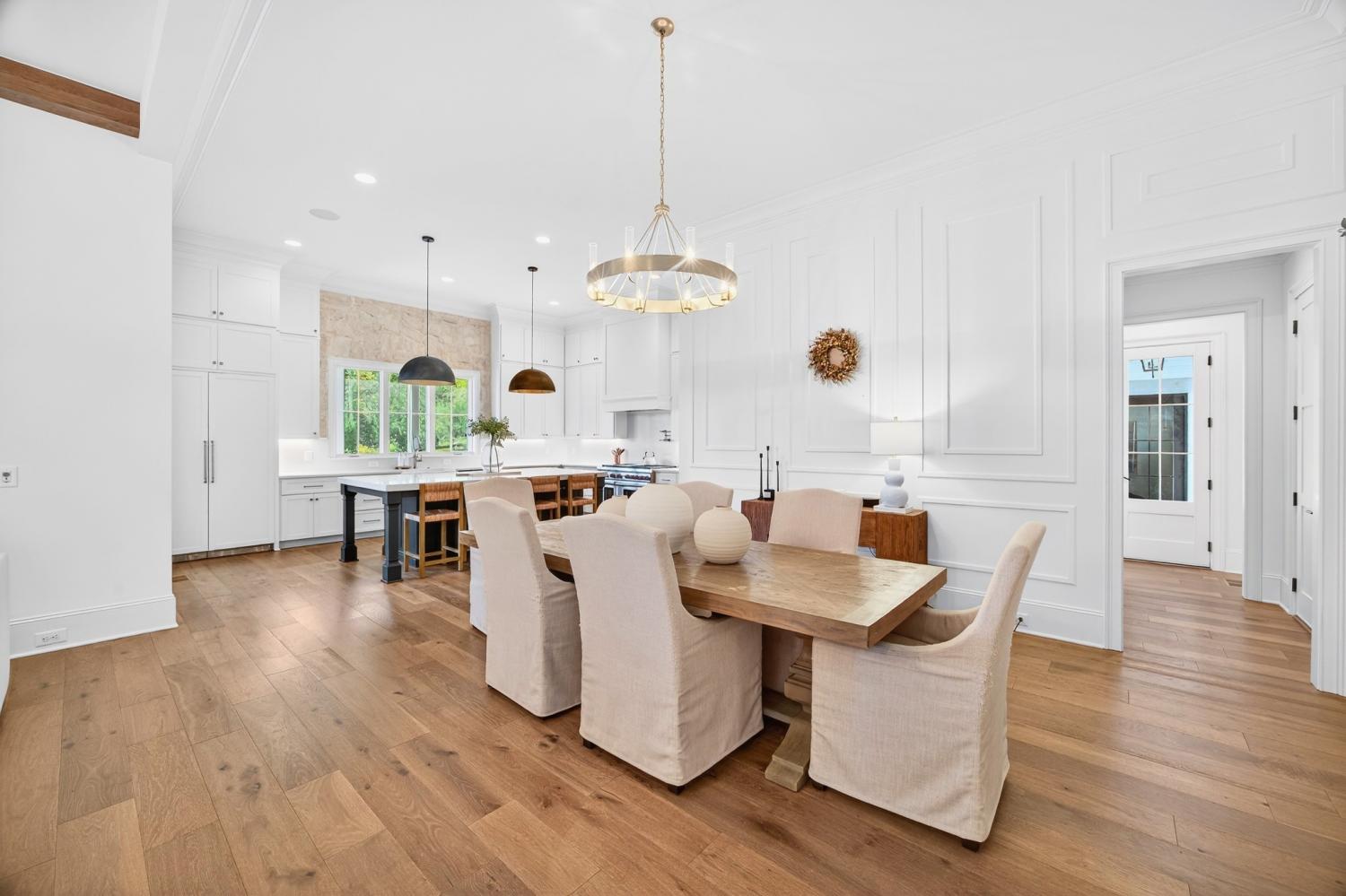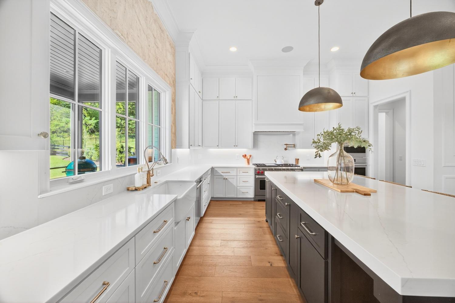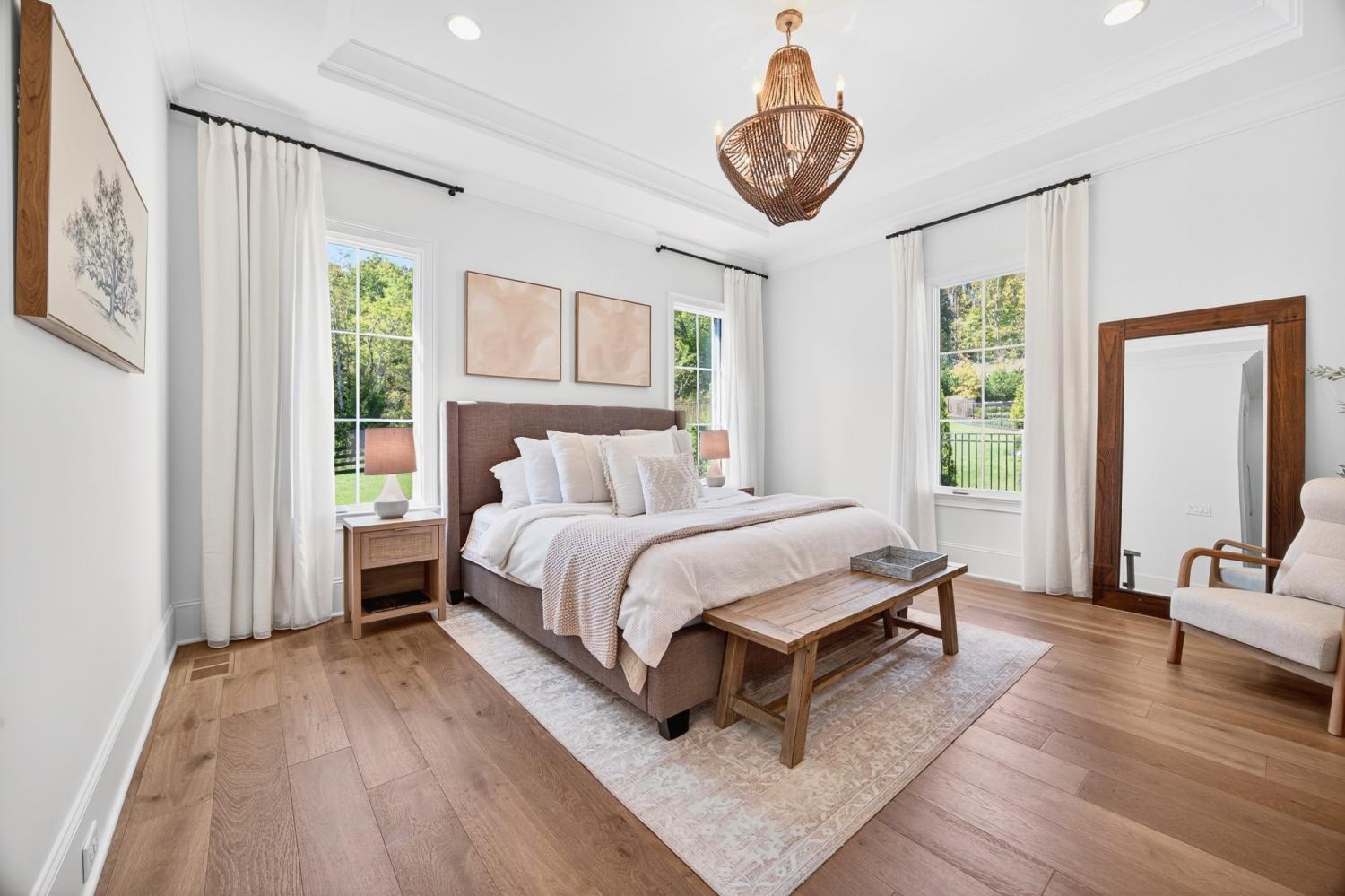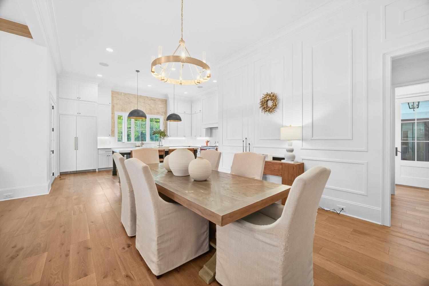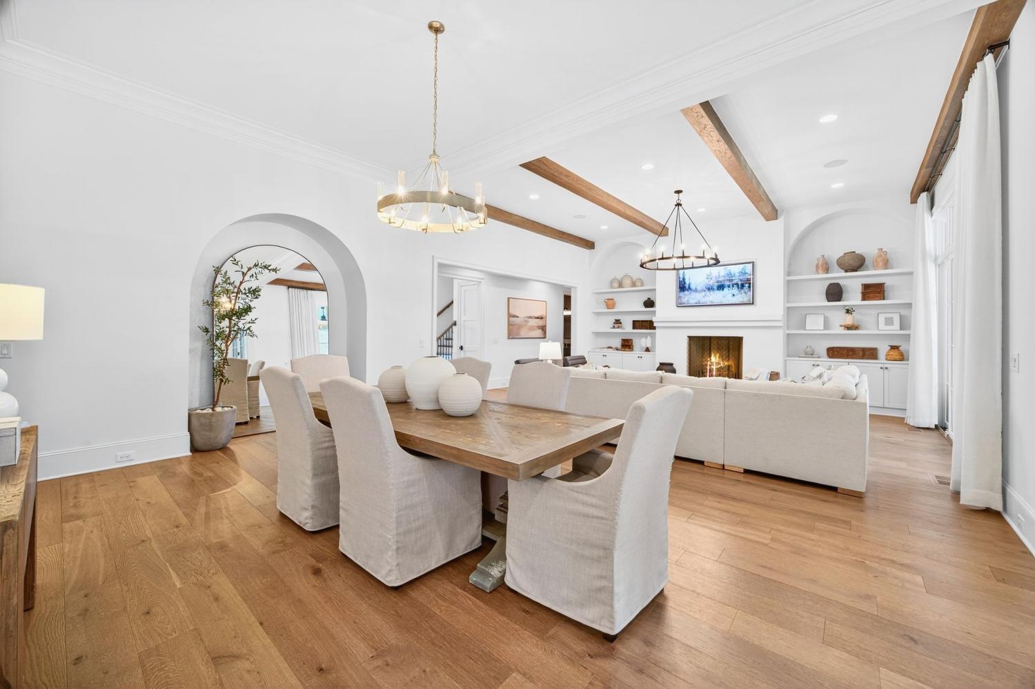Welcome to 9307 Double Run Court—an exquisite residence nestled on a cul-de-sac street within The Grove, one of Middle Tennessee’s most exclusive golf club communities. Highly desirable tree-lined, fenced lot- thoughtfully designed for both elegance and comfort. Features include a main-level primary suite with a vaulted, wood-beamed ceiling, spa-like bath with a freestanding tub, dual vanities, and a serene view of the tree-lined backyard. Main floor also features a secondary ensuite bedroom and dedicated study. The gourmet kitchen impresses with a 48-inch Wolf range, panel refrigerator, and a seamless flow into the open living room highlighted by an Archistone fireplace and sophisticated dining area with a custom wall niche. Two screened back porches with a wood-burning fireplace and built-in grill—making the perfect backdrop for private outdoor entertaining and everyday relaxation. The lot offers a perfect space for a pool. Upstairs, you will find a spacious recreation room opening to a balcony overlooking tranquil wooded views. A hidden bookshelf door opens to a flex/hobby room with a wet bar. 2 secondary bedrooms, including an ensuite, hall bath, and storage/pocket room. Additional features include White Oak hardwoods throughout (no carpet), a three-car garage, friends' entrance, arched iron double front doors, grand foyer, designer lighting and an inviting brick front porch. Ideally located near The Gathering Place, you’ll enjoy access to the Bridge Bar, resort-style pool, playground, and tennis/pickleball courts—all within the sought-after lifestyle of The Grove.