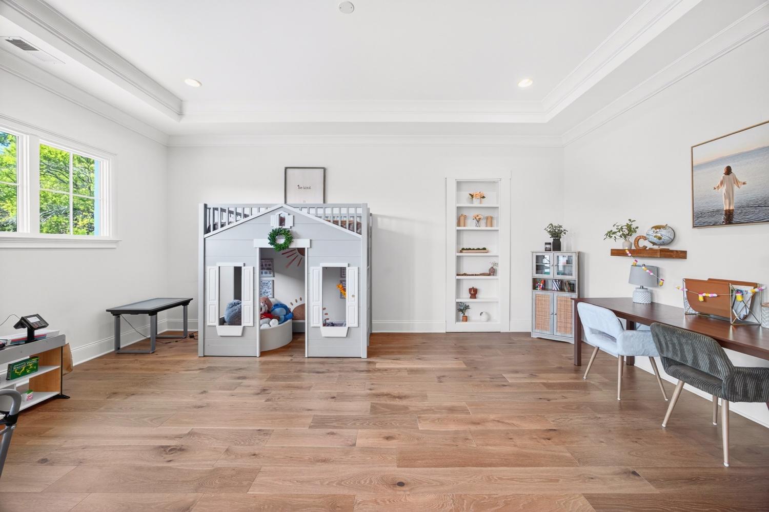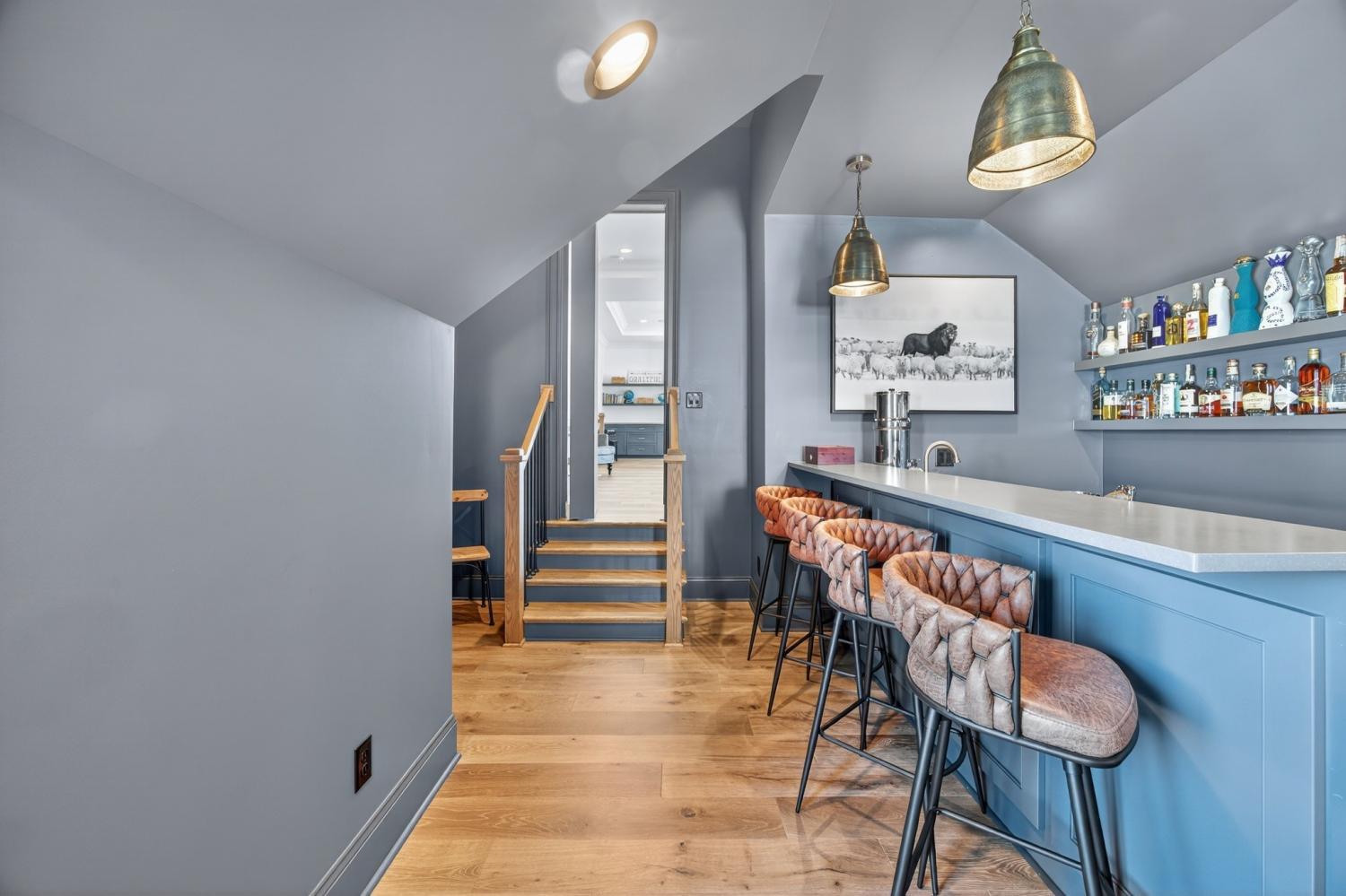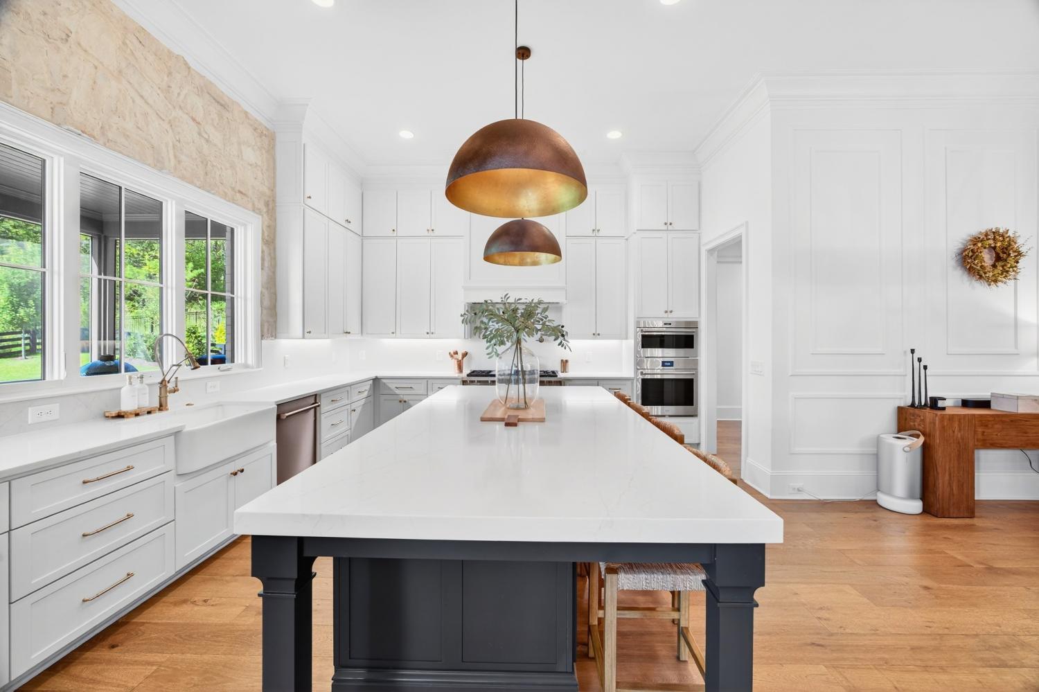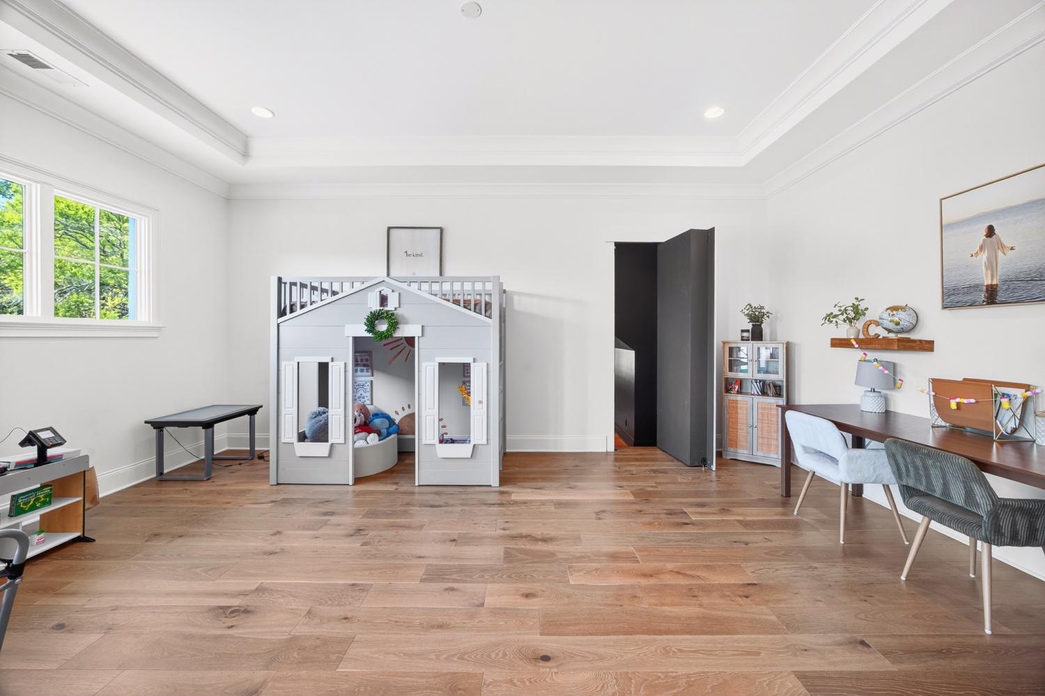 Welcome to 9307 Double Run Court—an exquisite residence nestled on a cul-de-sac street within The Grove, one of Middle Tennessee’s most exclusive golf club communities. Highly desirable tree-lined, fenced lot- thoughtfully designed for both elegance and comfort. Features include a main-level primary suite with a vaulted, wood-beamed ceiling, spa-like bath with a freestanding tub, dual vanities, and a serene view of the tree-lined backyard. Main floor also features a secondary ensuite bedroom and dedicated study. The gourmet kitchen impresses with a 48-inch Wolf range, panel refrigerator, and a seamless flow into the open living room highlighted by an Archistone fireplace and sophisticated dining area with a custom wall niche. Two screened back porches with a wood-burning fireplace and built-in grill—making the perfect backdrop for private outdoor entertaining and everyday relaxation. The lot offers a perfect space for a pool. Upstairs, you will find a spacious recreation room opening to a balcony overlooking tranquil wooded views. A hidden bookshelf door opens to a flex/hobby room with a wet bar. 2 secondary bedrooms, including an ensuite, hall bath, and storage/pocket room. Additional features include White Oak hardwoods throughout (no carpet), a three-car garage, friends' entrance, arched iron double front doors, grand foyer, designer lighting and an inviting brick front porch. Ideally located near The Gathering Place, you’ll enjoy access to the Bridge Bar, resort-style pool, playground, and tennis/pickleball courts—all within the sought-after lifestyle of The Grove.