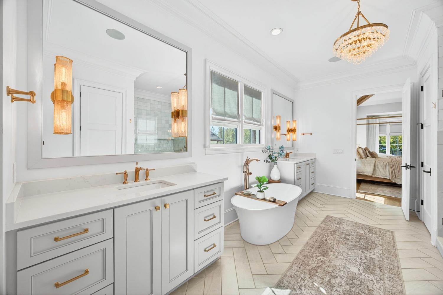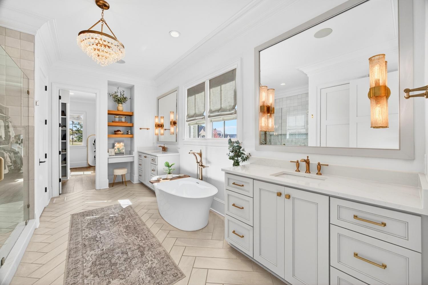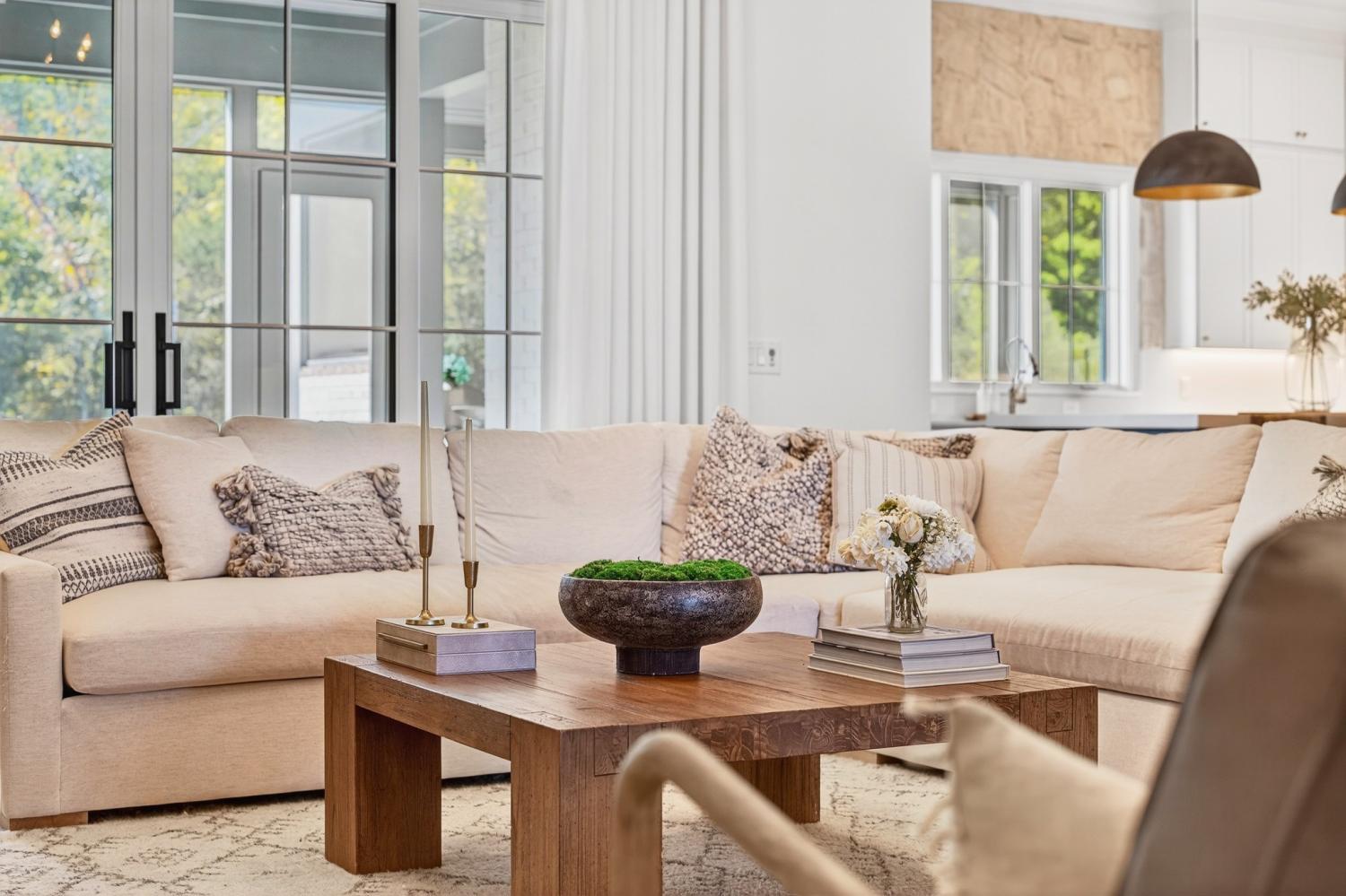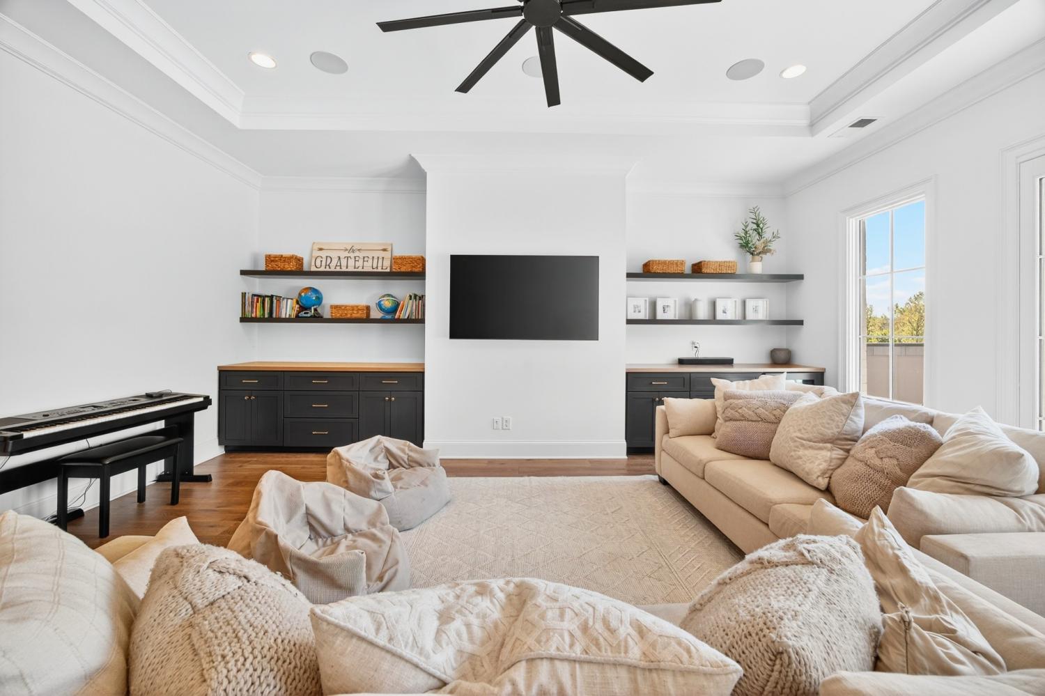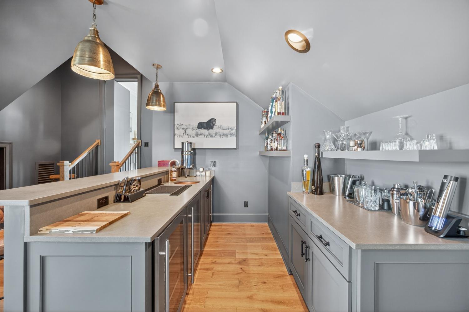 Welcome to 9307 Double Run Court—an exquisite residence nestled on a cul-de-sac street within The Grove, one of Middle Tennessee’s most exclusive golf club communities. Highly desirable tree-lined, fenced lot- thoughtfully designed for both elegance and comfort. Features include a main-level primary suite with a vaulted, wood-beamed ceiling, spa-like bath with a freestanding tub, dual vanities, and a serene view of the tree-lined backyard. Main floor also features a secondary ensuite bedroom and dedicated study. The gourmet kitchen impresses with a 48-inch Wolf range, panel refrigerator, and a seamless flow into the open living room highlighted by an Archistone fireplace and sophisticated dining area with a custom wall niche. Two screened back porches with a wood-burning fireplace and built-in grill—making the perfect backdrop for private outdoor entertaining and everyday relaxation. The lot offers a perfect space for a pool. Upstairs, you will find a spacious recreation room opening to a balcony overlooking tranquil wooded views. A hidden bookshelf door opens to a flex/hobby room with a wet bar. 2 secondary bedrooms, including an ensuite, hall bath, and storage/pocket room. Additional features include White Oak hardwoods throughout (no carpet), a three-car garage, friends' entrance, arched iron double front doors, grand foyer, designer lighting and an inviting brick front porch. Ideally located near The Gathering Place, you’ll enjoy access to the Bridge Bar, resort-style pool, playground, and tennis/pickleball courts—all within the sought-after lifestyle of The Grove.
