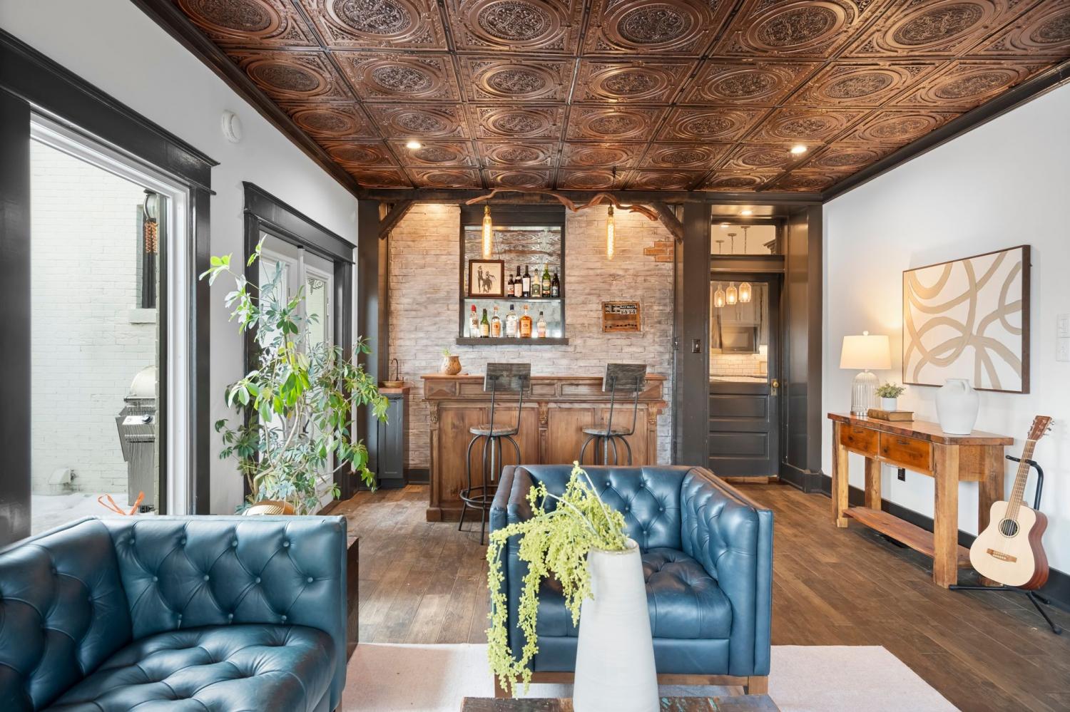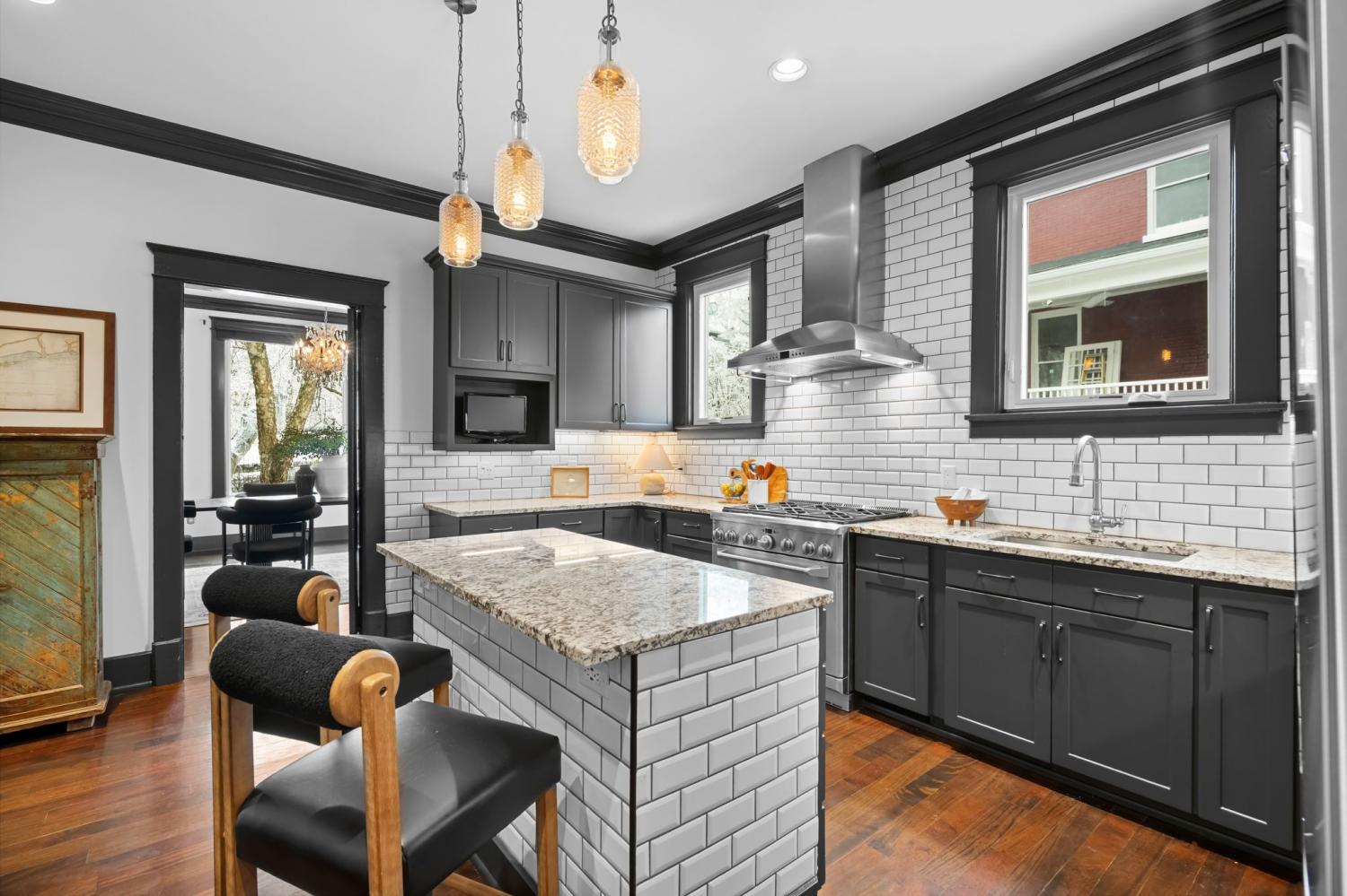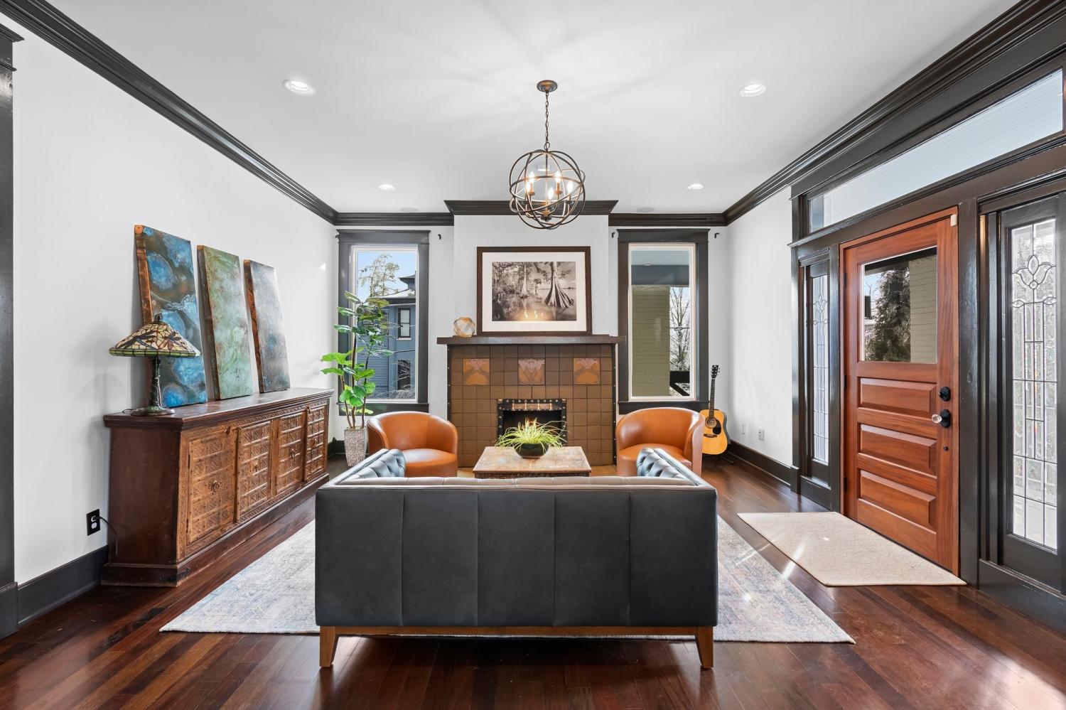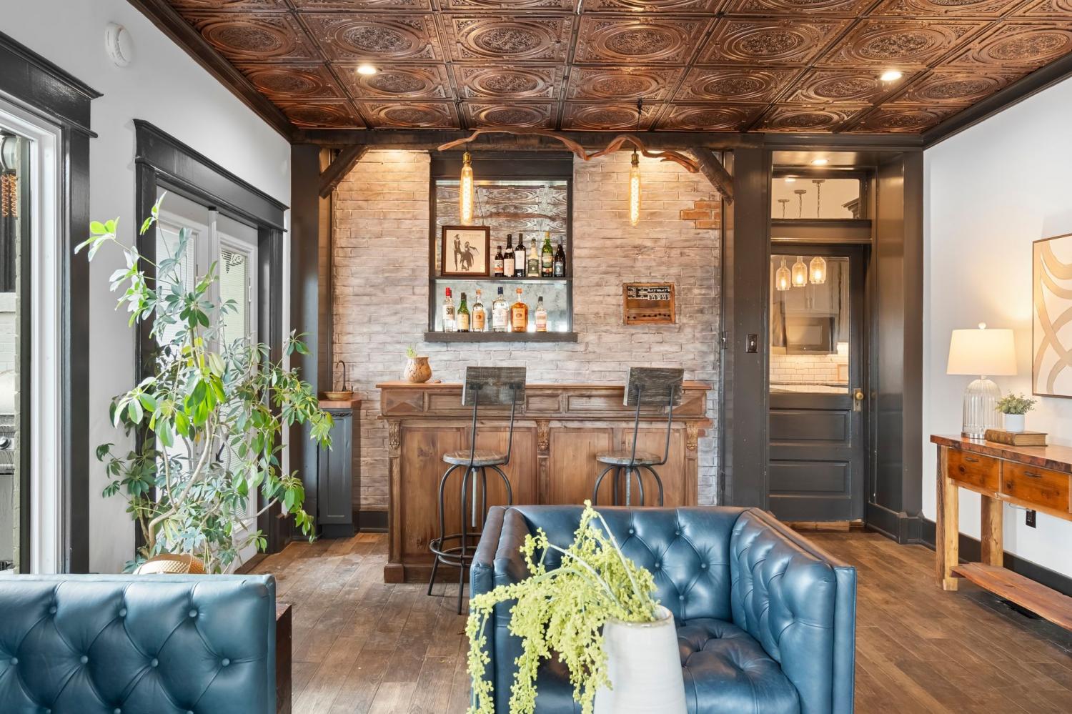 Tucked within the beloved Belmont-Hillsboro neighborhood, this remarkable 1920s American Foursquare sits on a prominent corner lot and stands as a celebrated example of historic Nashville real estate and timeless architecture. Overflowing with character and unmistakable charm, it has been carefully preserved to honor its original craftsmanship while incorporating thoughtful modern upgrades. From the welcoming front porch to the detailed millwork, rare hand-painted Minton tile fireplace, and solid African cherry hardwood floors, the home showcases a level of detail seldom seen today. Recent enhancements—including a new roof (2022) and high-end energy-efficient windows—blend seamlessly with the home’s historic architecture. A rare luxury for this area, the property offers a 2-car attached garage with alley access, a motorized gated entry, and additional off-street parking without blocking the driveway. Security is exceptional, with perimeter fencing, a hidden safe room, and a hard-wired video system. The home is currently arranged as four bedrooms, but the generous layout can easily support five or even six bedrooms, including two potential primary suites. A Generac whole-house generator powers all four levels. The lower level, complete with a private entrance, once served as a recording studio—complete with an isolation booth—offering endless possibilities for creative, professional, or expanded living space. With its walkable location, timeless architecture, and rare combination of historic integrity and modern convenience, this home presents an extraordinary opportunity to own a distinct piece of Nashville’s history. Just minutes from Hillsboro Village, 12th South, Belmont University, Vanderbilt university, Green Hills, and Downtown Nashville.