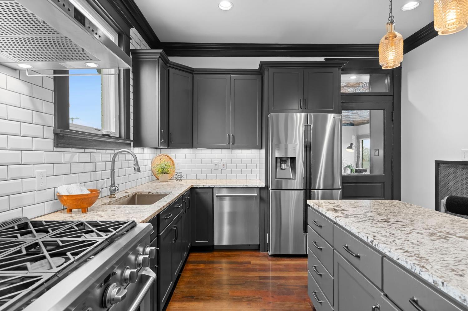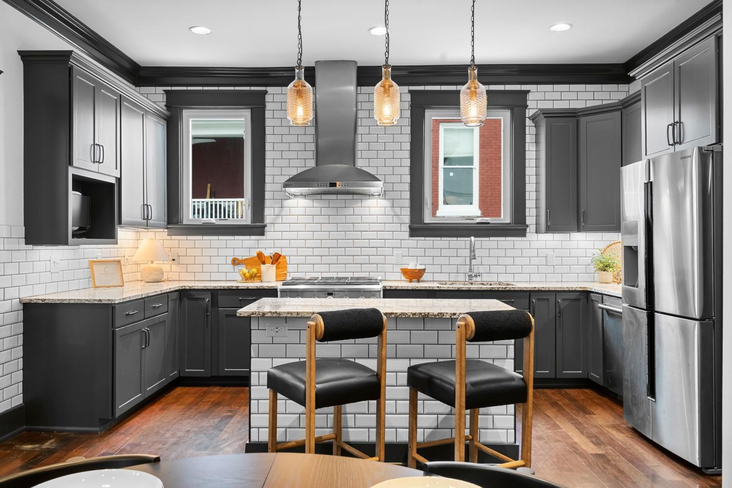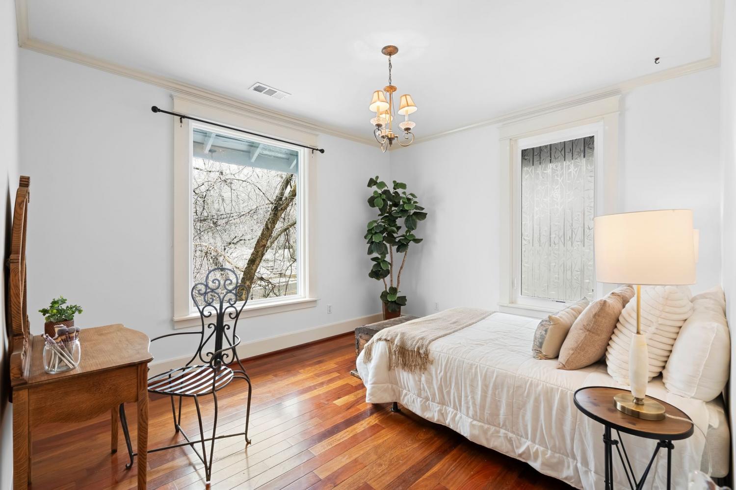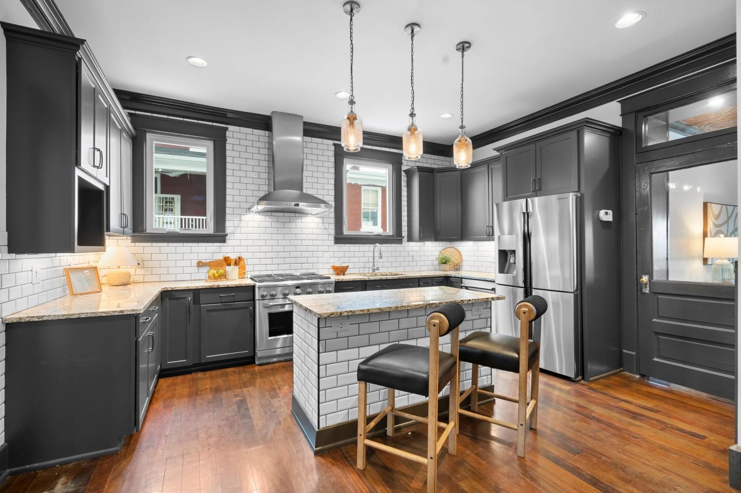 Tucked within the beloved Belmont-Hillsboro neighborhood, this remarkable 1920s American Foursquare sits on a prominent corner lot and stands as a celebrated example of historic Nashville real estate and timeless architecture. Overflowing with character and unmistakable charm, it has been carefully preserved to honor its original craftsmanship while incorporating thoughtful modern upgrades. From the welcoming front porch to the detailed millwork, rare hand-painted Minton tile fireplace, and solid African cherry hardwood floors, the home showcases a level of detail seldom seen today. Recent enhancements—including a new roof (2022) and high-end energy-efficient windows—blend seamlessly with the home’s historic architecture. A rare luxury for this area, the property offers a 2-car attached garage with alley access, a motorized gated entry, and additional off-street parking without blocking the driveway. Security is exceptional, with perimeter fencing, a hidden safe room, and a hard-wired video system. The home is currently arranged as four bedrooms, but the generous layout can easily support five or even six bedrooms, including two potential primary suites. A Generac whole-house generator powers all four levels. The lower level, complete with a private entrance, once served as a recording studio—complete with an isolation booth—offering endless possibilities for creative, professional, or expanded living space. With its walkable location, timeless architecture, and rare combination of historic integrity and modern convenience, this home presents an extraordinary opportunity to own a distinct piece of Nashville’s history. Just minutes from Hillsboro Village, 12th South, Belmont University, Vanderbilt university, Green Hills, and Downtown Nashville.