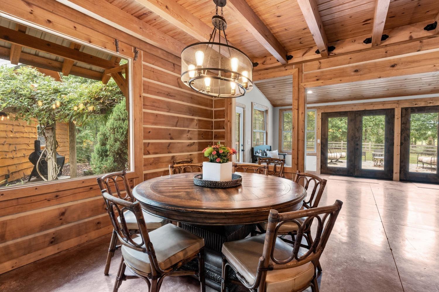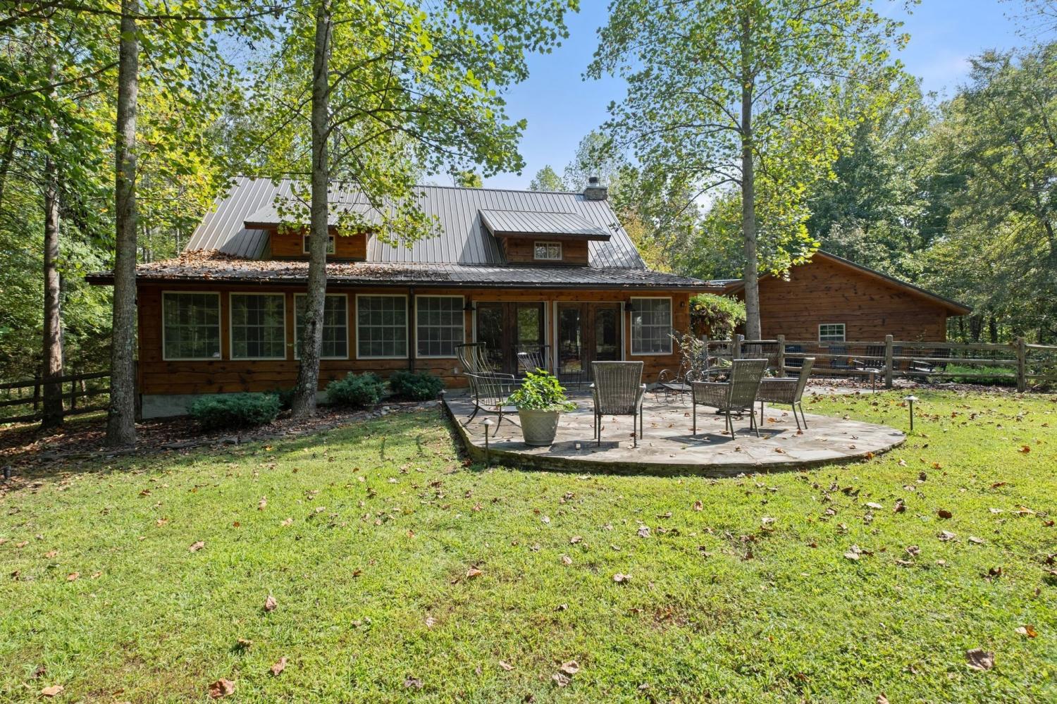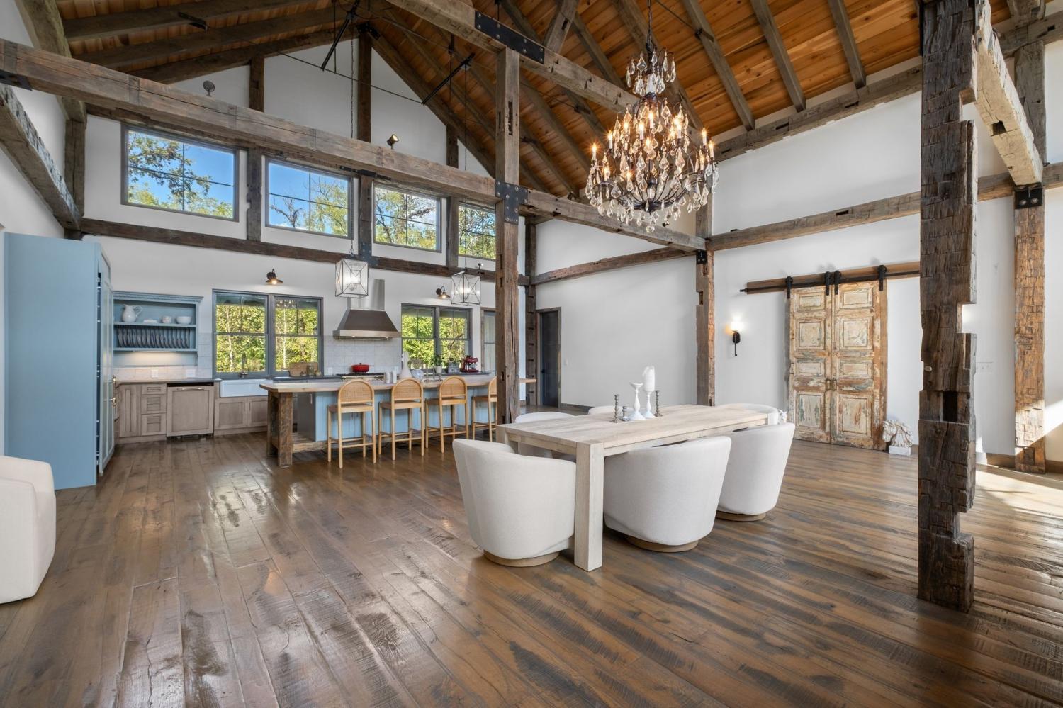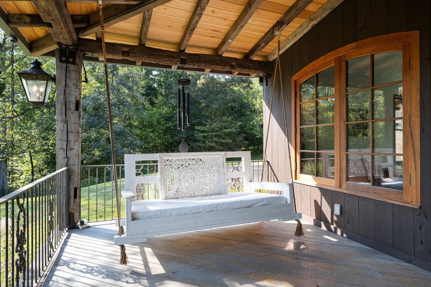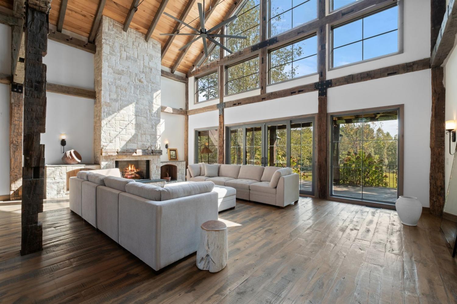 A captivating and remarkable rustic retreat on 13.88 acres in the rolling Tennessee hills, featuring two beautifully crafted homes with a combined 7,975 square feet of refined living. A rare opportunity for multigenerational living, guest accommodations or a tranquil personal escape. The 5,371 square foot primary residence welcomes you into a breathtaking ballroom style great room with soaring 28 foot ceilings, 150 year old Montana timber beams and sunlight pouring in from every angle. The chef’s kitchen with Bertazzoni appliances and a thoughtfully designed scullery makes entertaining feel effortless as gatherings flow out to the terraces. Terracotta stone and Restoration Hardware chandeliers elevate the home with understated elegance. The main level offers a serene primary suite framed by century old Indian teak doors and a spa inspired bath. A second bedroom on this level is ideal for guests or a dedicated office. Upstairs, three spacious bedrooms including an additional suite are complemented by a large studio filled with natural light that can serve as a creative space, lounge, office, or extra bedroom. Outdoor living shines with generous porches and terraces totaling 1,500 square feet, complete with a relaxing swim spa that overlooks the wooded landscape and starry skies. Across the property, a charming 2,604 square foot second residence rests on its own 6.88 acres. It features a sunlit morning room, a commercial Wolf kitchen, a main floor suite, and peaceful views of open meadows protected by the Tennessee Land Trust, ensuring lasting privacy and quiet. Together, these homes create a private sanctuary where thoughtful design, comfort, and nature come together. Every corner invites you to slow down, breathe deeply and enjoy the beauty of peaceful living.