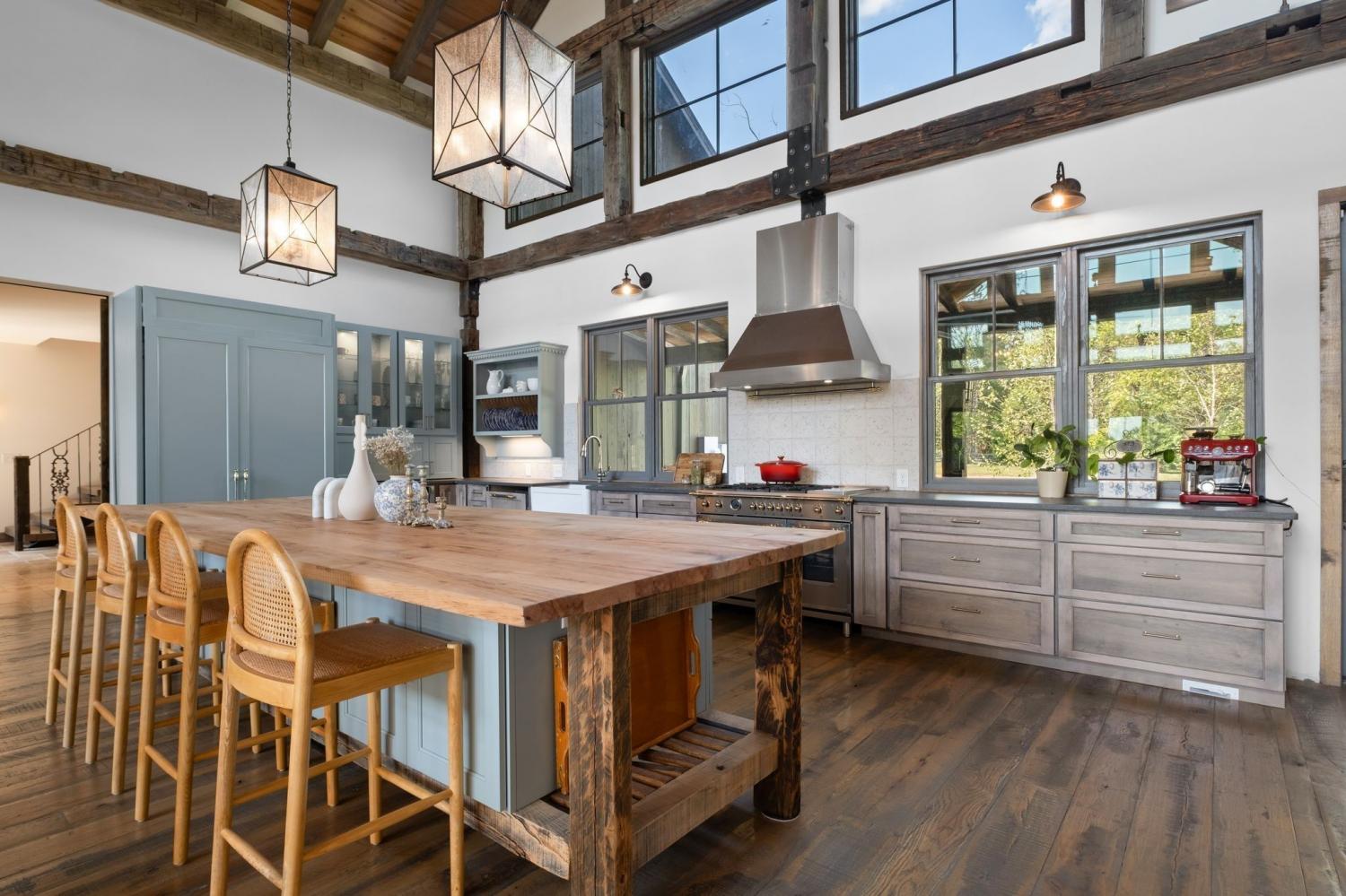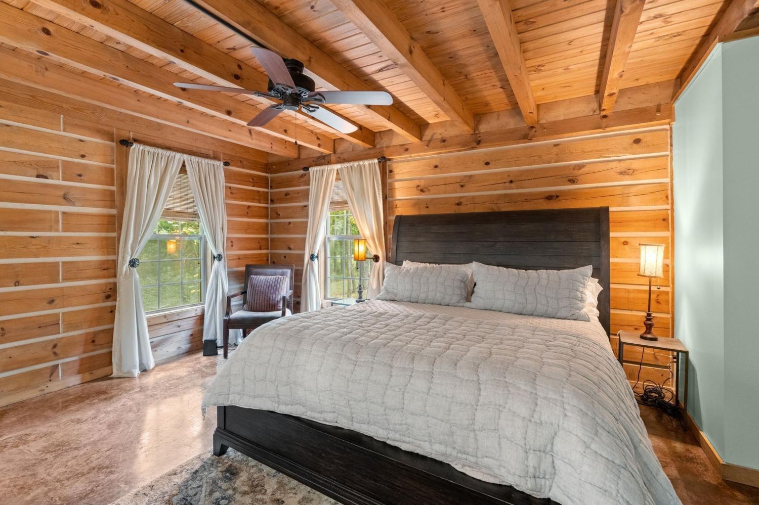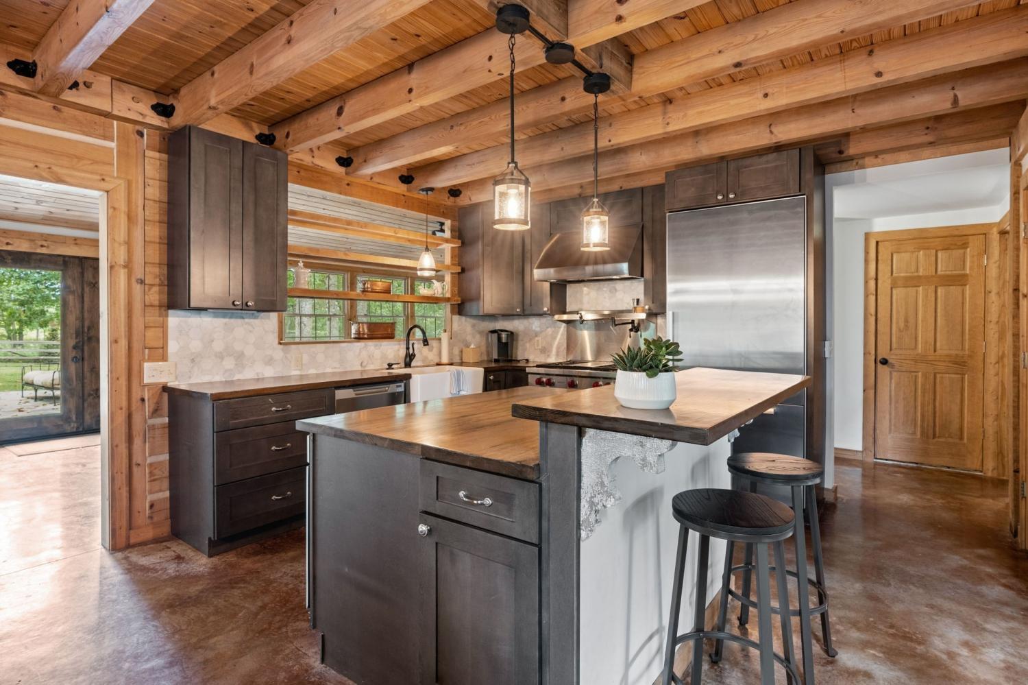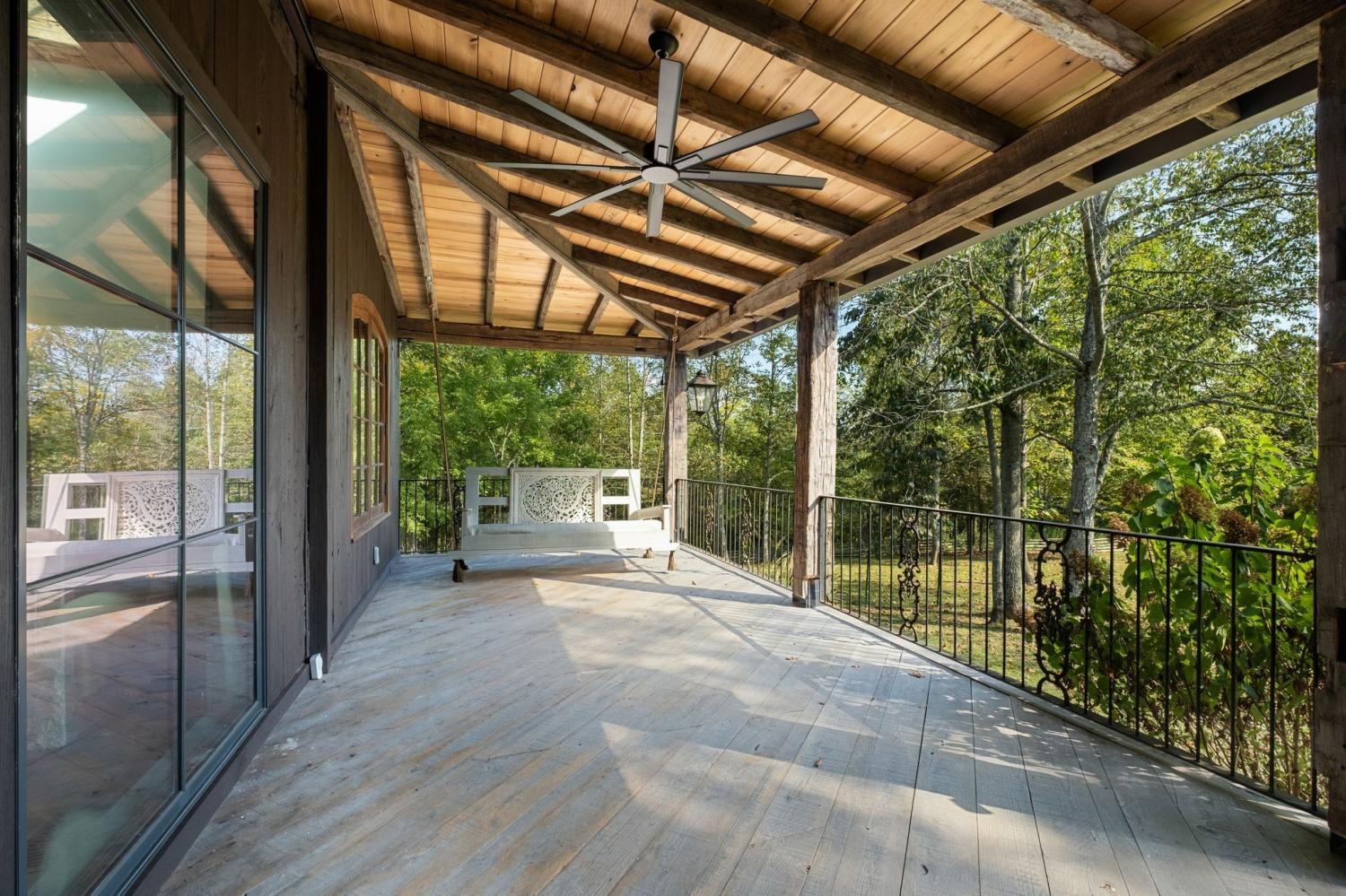 A captivating and remarkable rustic retreat on 13.88 acres in the rolling Tennessee hills, featuring two beautifully crafted homes with a combined 7,975 square feet of refined living. A rare opportunity for multigenerational living, guest accommodations or a tranquil personal escape. The 5,371 square foot primary residence welcomes you into a breathtaking ballroom style great room with soaring 28 foot ceilings, 150 year old Montana timber beams and sunlight pouring in from every angle. The chef’s kitchen with Bertazzoni appliances and a thoughtfully designed scullery makes entertaining feel effortless as gatherings flow out to the terraces. Terracotta stone and Restoration Hardware chandeliers elevate the home with understated elegance. The main level offers a serene primary suite framed by century old Indian teak doors and a spa inspired bath. A second bedroom on this level is ideal for guests or a dedicated office. Upstairs, three spacious bedrooms including an additional suite are complemented by a large studio filled with natural light that can serve as a creative space, lounge, office, or extra bedroom. Outdoor living shines with generous porches and terraces totaling 1,500 square feet, complete with a relaxing swim spa that overlooks the wooded landscape and starry skies. Across the property, a charming 2,604 square foot second residence rests on its own 6.88 acres. It features a sunlit morning room, a commercial Wolf kitchen, a main floor suite, and peaceful views of open meadows protected by the Tennessee Land Trust, ensuring lasting privacy and quiet. Together, these homes create a private sanctuary where thoughtful design, comfort, and nature come together. Every corner invites you to slow down, breathe deeply and enjoy the beauty of peaceful living.
