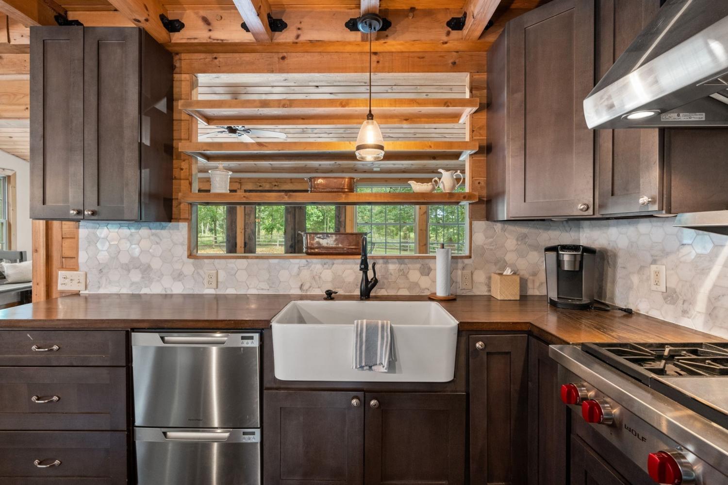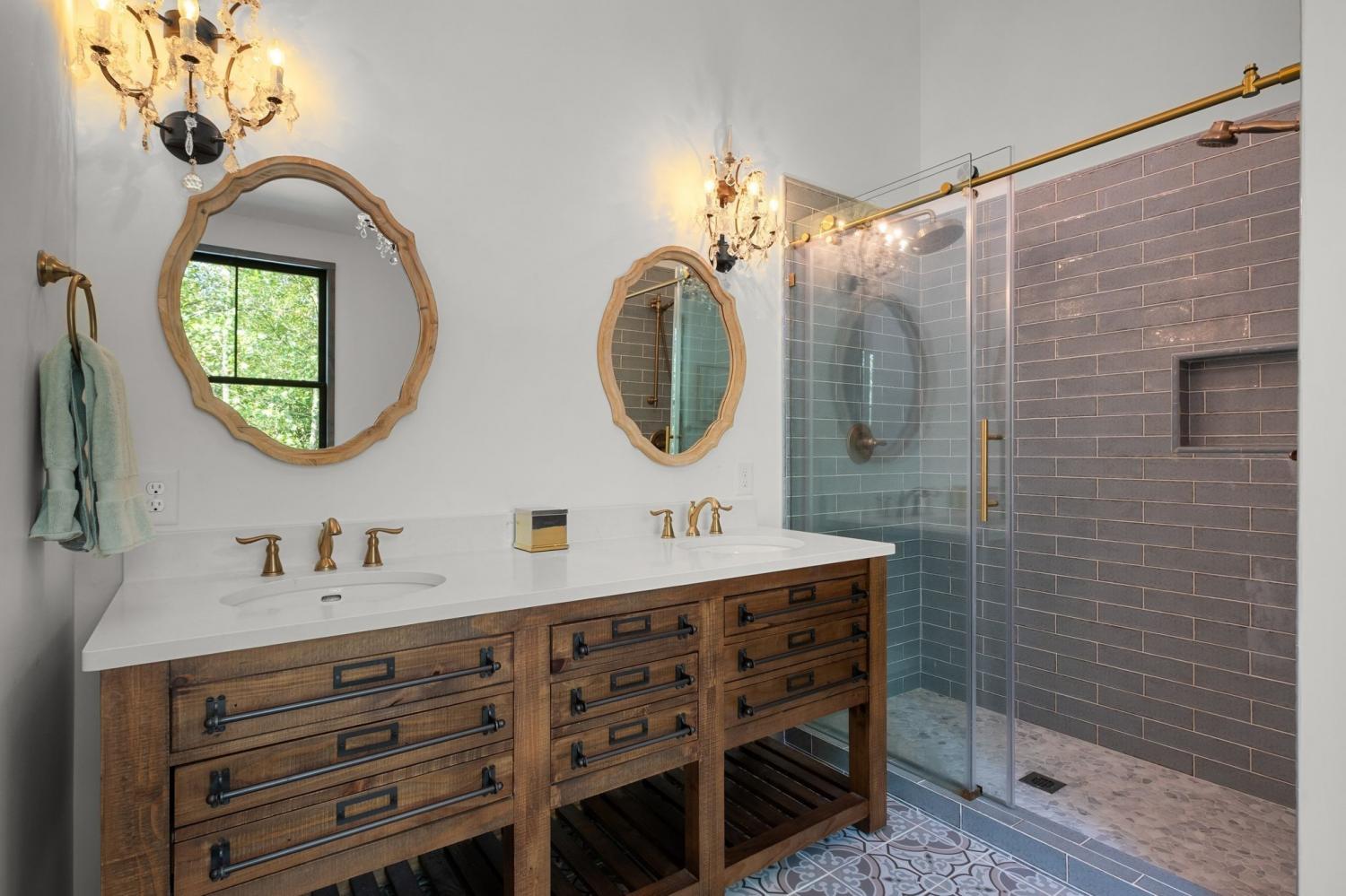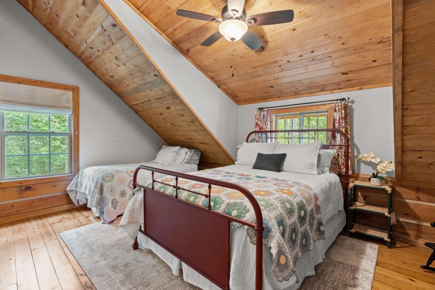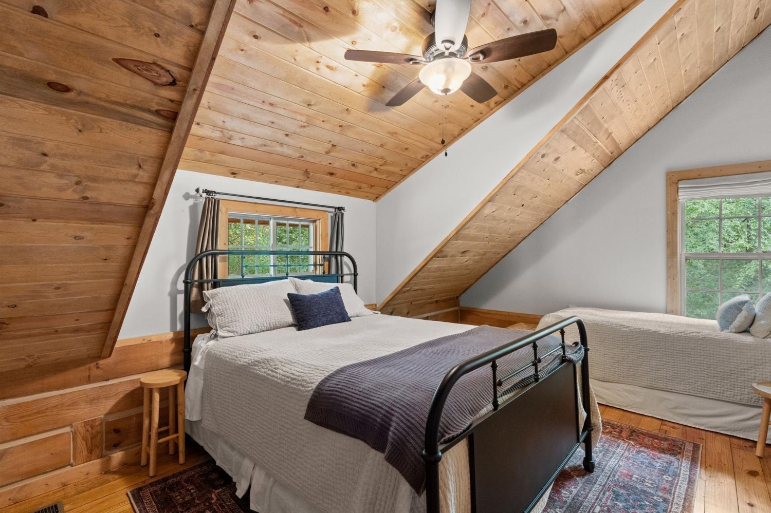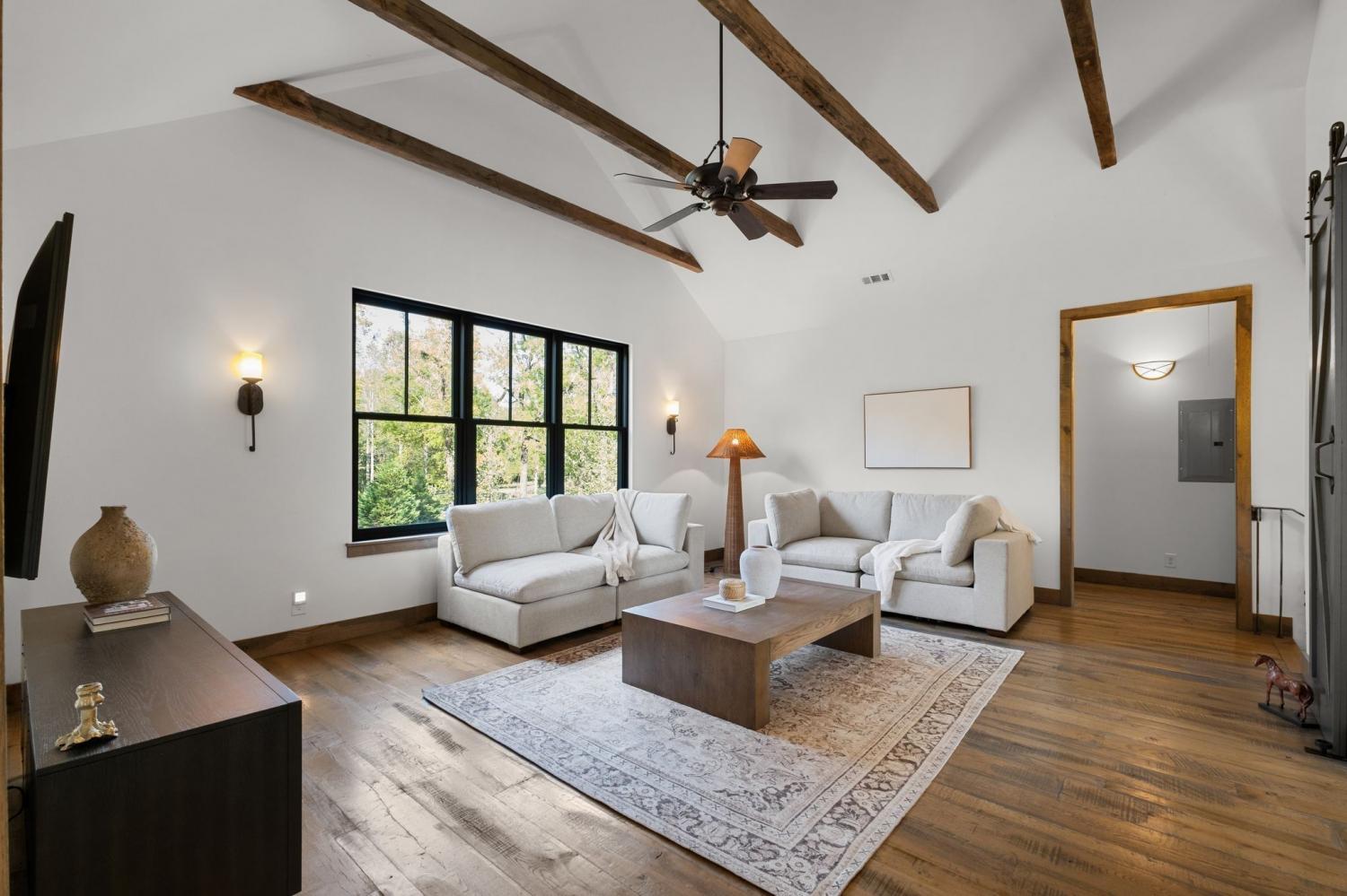 A captivating and remarkable rustic retreat on 13.88 acres in the rolling Tennessee hills, featuring two beautifully crafted homes with a combined 7,975 square feet of refined living. A rare opportunity for multigenerational living, guest accommodations or a tranquil personal escape. The 5,371 square foot primary residence welcomes you into a breathtaking ballroom style great room with soaring 28 foot ceilings, 150 year old Montana timber beams and sunlight pouring in from every angle. The chef’s kitchen with Bertazzoni appliances and a thoughtfully designed scullery makes entertaining feel effortless as gatherings flow out to the terraces. Terracotta stone and Restoration Hardware chandeliers elevate the home with understated elegance. The main level offers a serene primary suite framed by century old Indian teak doors and a spa inspired bath. A second bedroom on this level is ideal for guests or a dedicated office. Upstairs, three spacious bedrooms including an additional suite are complemented by a large studio filled with natural light that can serve as a creative space, lounge, office, or extra bedroom. Outdoor living shines with generous porches and terraces totaling 1,500 square feet, complete with a relaxing swim spa that overlooks the wooded landscape and starry skies. Across the property, a charming 2,604 square foot second residence rests on its own 6.88 acres. It features a sunlit morning room, a commercial Wolf kitchen, a main floor suite, and peaceful views of open meadows protected by the Tennessee Land Trust, ensuring lasting privacy and quiet. Together, these homes create a private sanctuary where thoughtful design, comfort, and nature come together. Every corner invites you to slow down, breathe deeply and enjoy the beauty of peaceful living.
