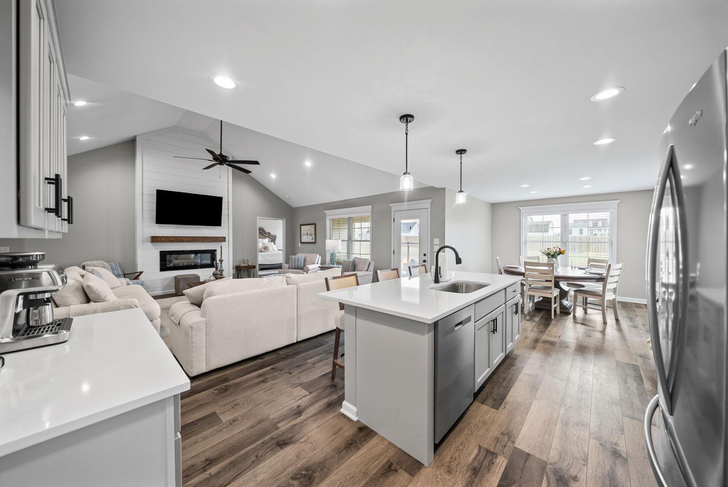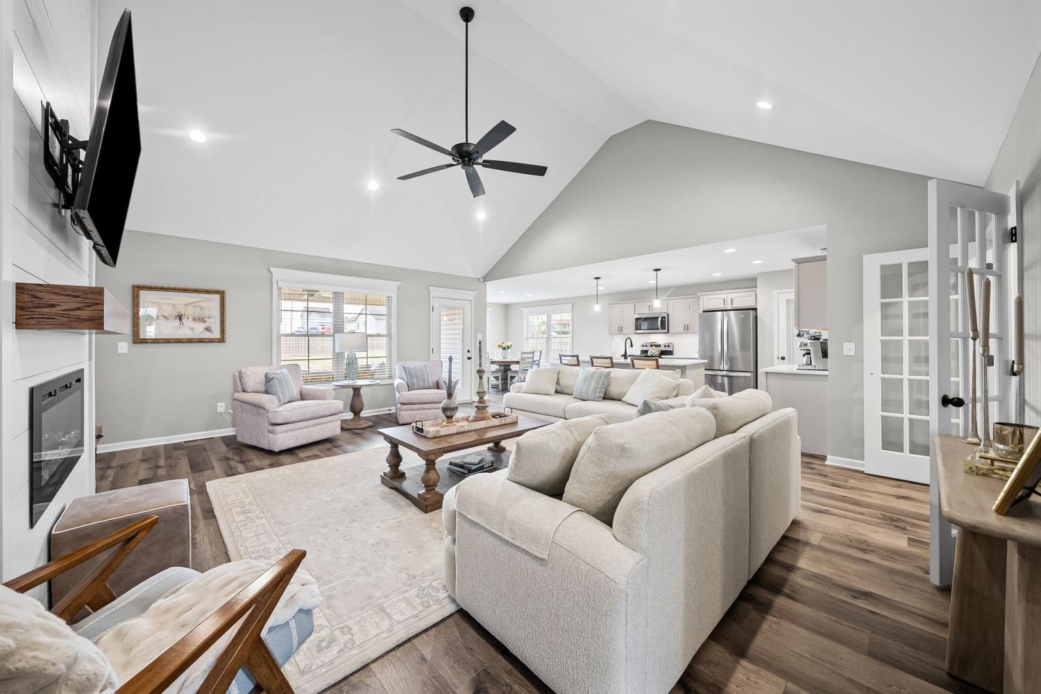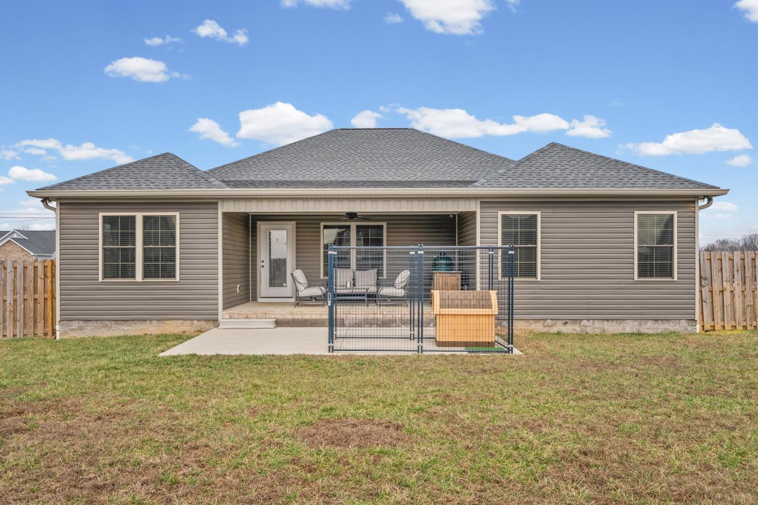 Built in 2024, this 3-bedroom, 2-bath home offers a functional layout with modern finishes throughout. Features include vaulted ceilings with gray accents, LVP/LVT flooring, a pantry, office nook, mudroom, walk-in closets, ceiling fans, and pull-down attic storage. Enjoy the covered front porch with wide concrete and sidewalk, plus a fully fenced backyard. Move-in ready and designed for comfortable everyday living.