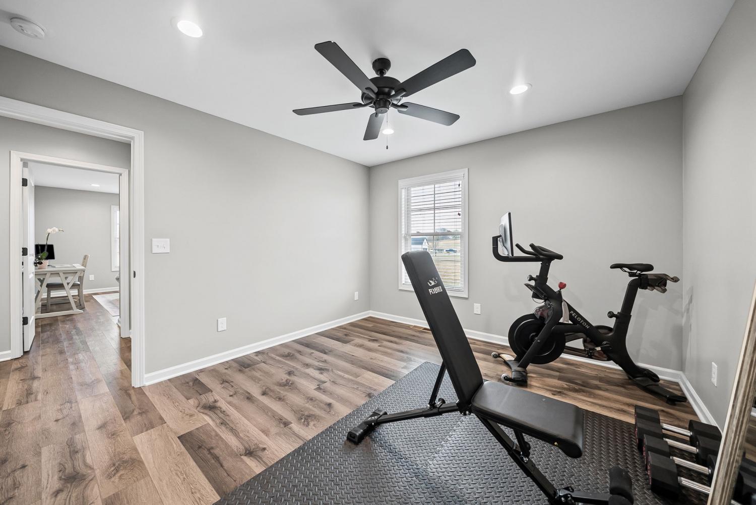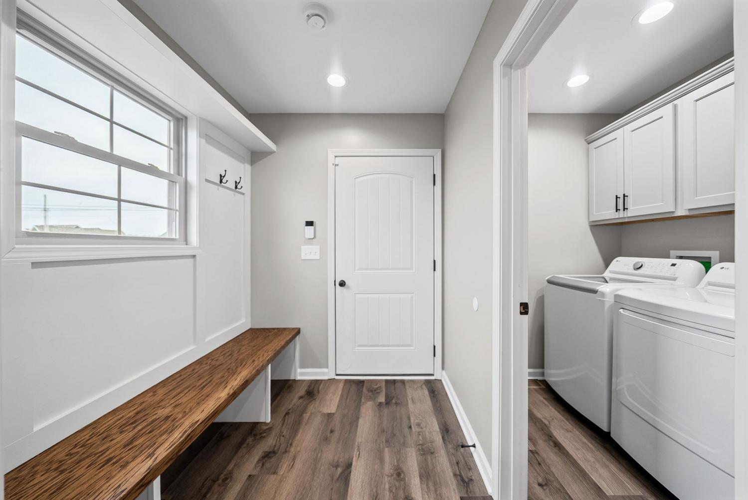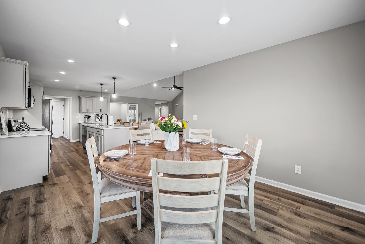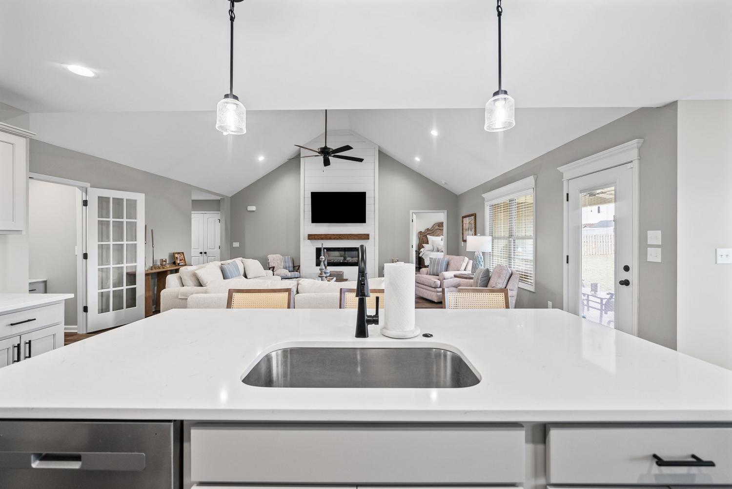 Built in 2024, this 3-bedroom, 2-bath home offers a functional layout with modern finishes throughout. Features include vaulted ceilings with gray accents, LVP/LVT flooring, a pantry, office nook, mudroom, walk-in closets, ceiling fans, and pull-down attic storage. Enjoy the covered front porch with wide concrete and sidewalk, plus a fully fenced backyard. Move-in ready and designed for comfortable everyday living.