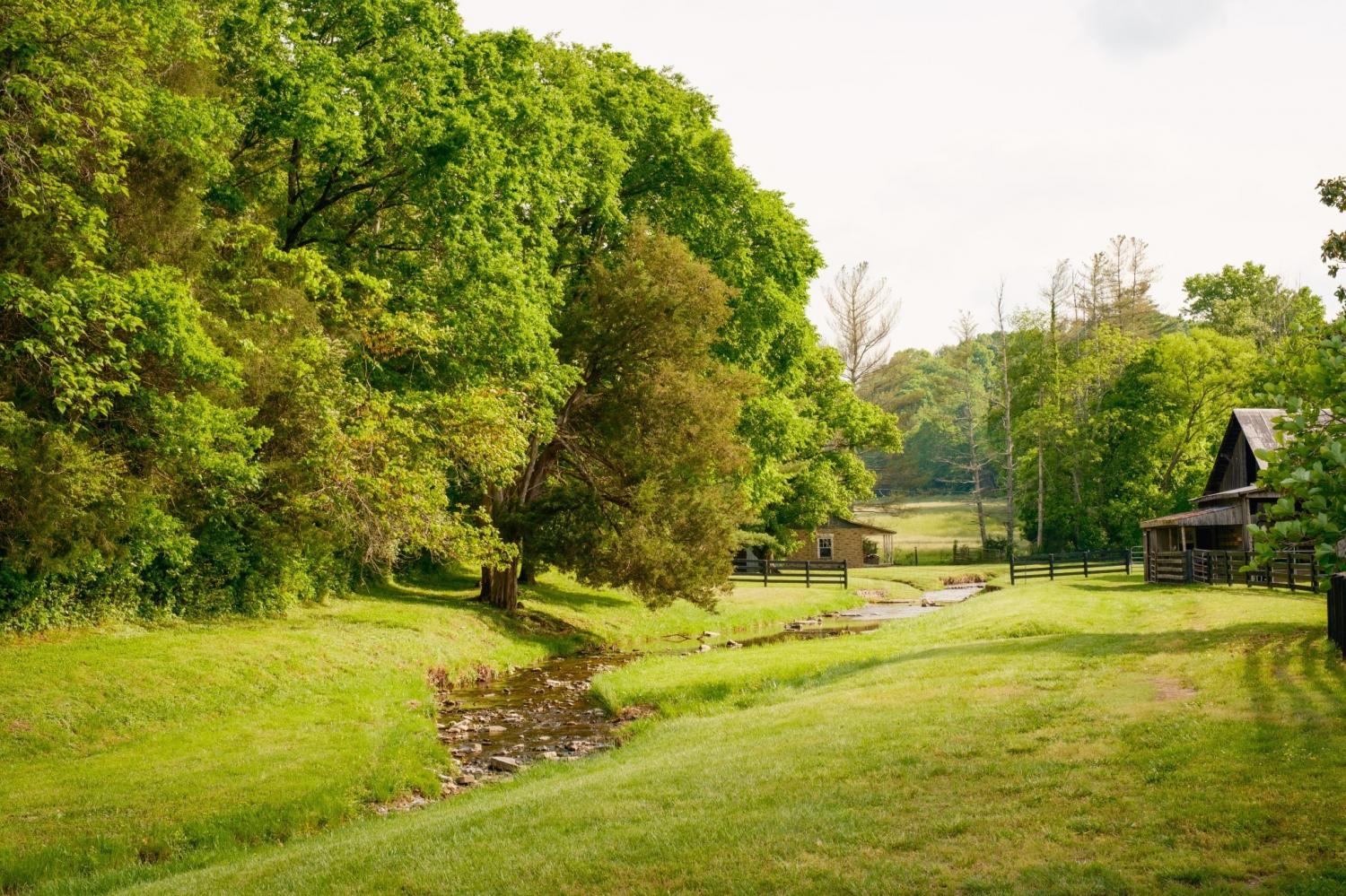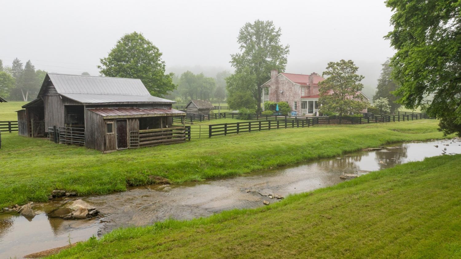 Quintessential Tennessee Farmstead! Discover classic Tennessee living on this picturesque 25-acre farmstead in the heart of Leipers Fork. Tucked beside a gentle, year-round creek, the charming brick farmhouse welcomes you with double-decker rocking chair porches—perfect for unwinding each evening with panoramic sunset views. Inviting you to explore and enjoy, the property features multiple barns, a historic stone spring house, and a sparkling swimming pool. The established garden is complemented by a vintage log garden shed, offering fertile soil for your own homegrown harvest and vibrant blooms throughout the seasons. Extensive, rolling pastures are expertly fenced for livestock, ensuring both privacy and room to roam for horses or cattle. Take in breathtaking vistas from the hilltop, offering a buildable site that overlooks the idyllic Leipers Creek Valley. This farmstead captures the essence of country life with tranquil water features, rich farmland, and all the comforts of a true Tennessee retreat.