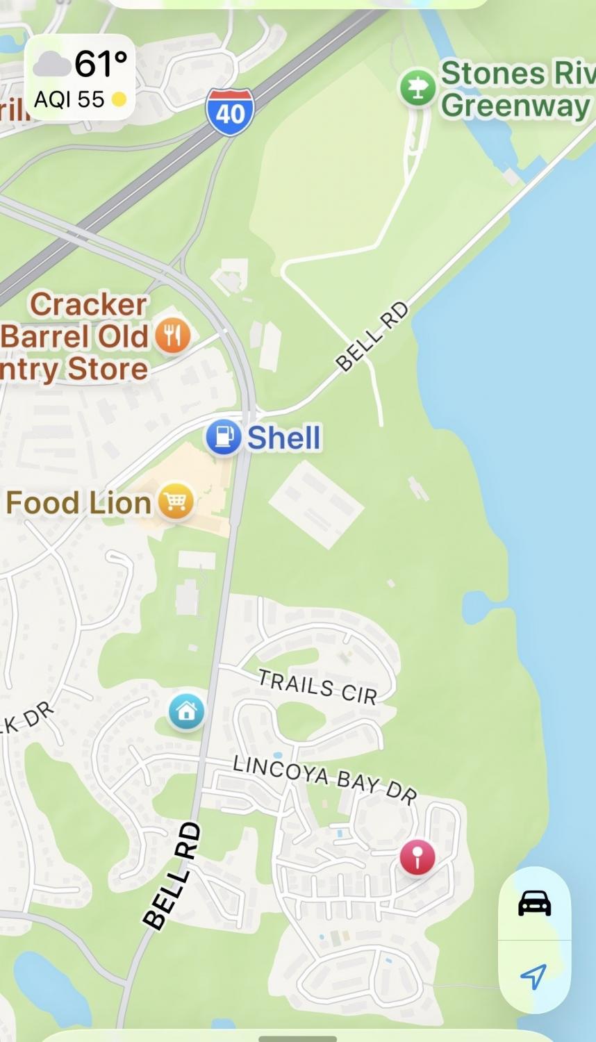 Traveling South on Bell Rd from I40, turn LEFT on to Lincoya Bay Dr. Continue up the hill to the stop sign. Turn RIGHT and follow Lincoya Bay Dr to the Williams Bend entrance. Turn LEFT and follow Lincoya Bay Dr to Unit 1722.