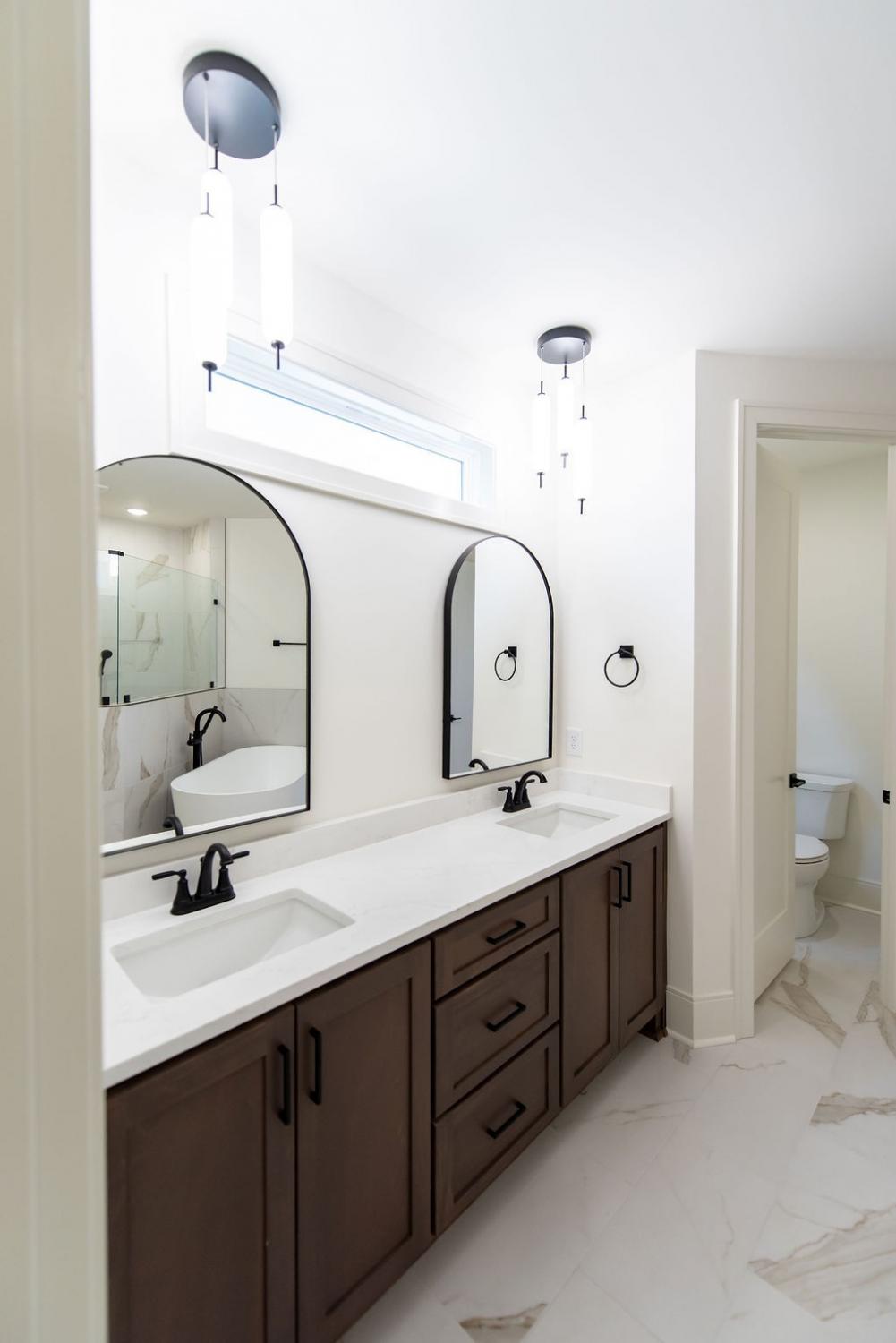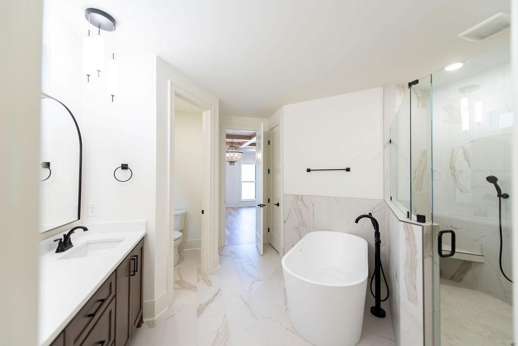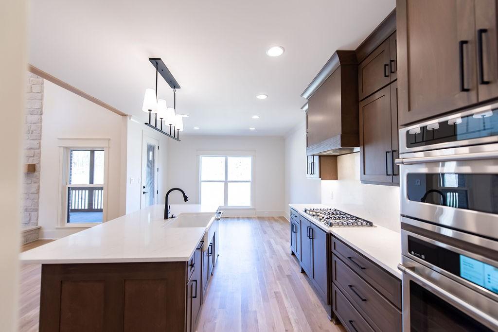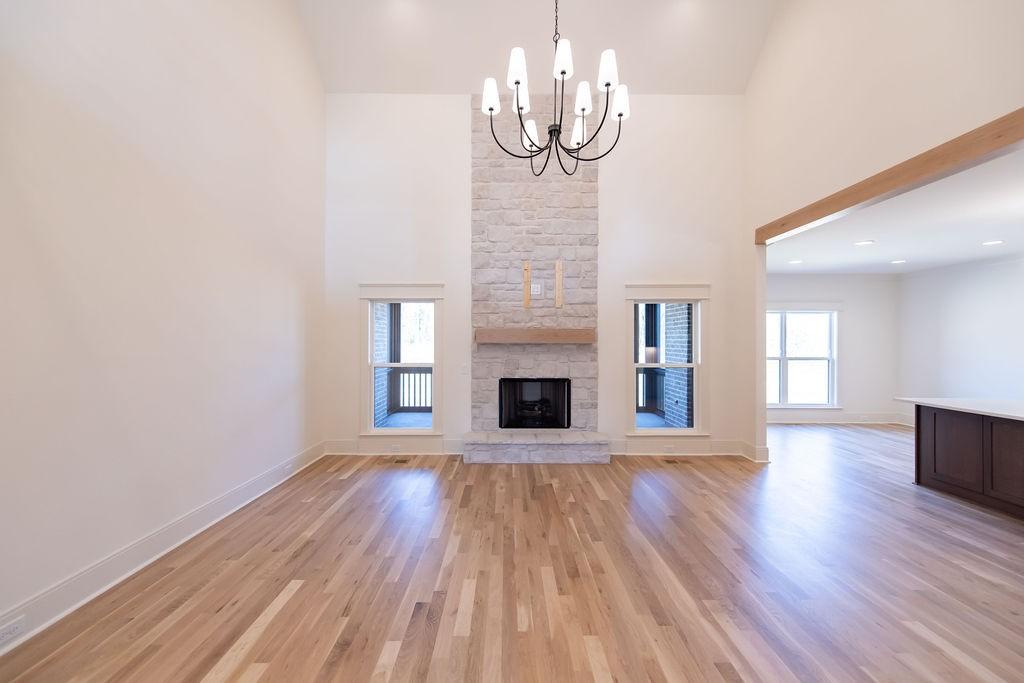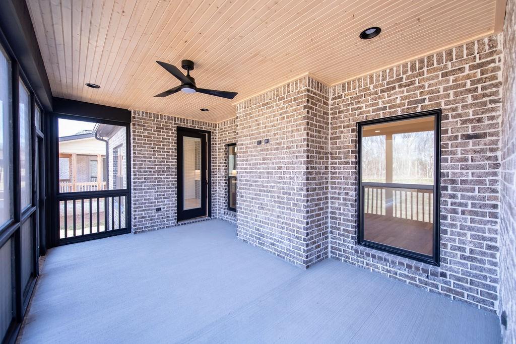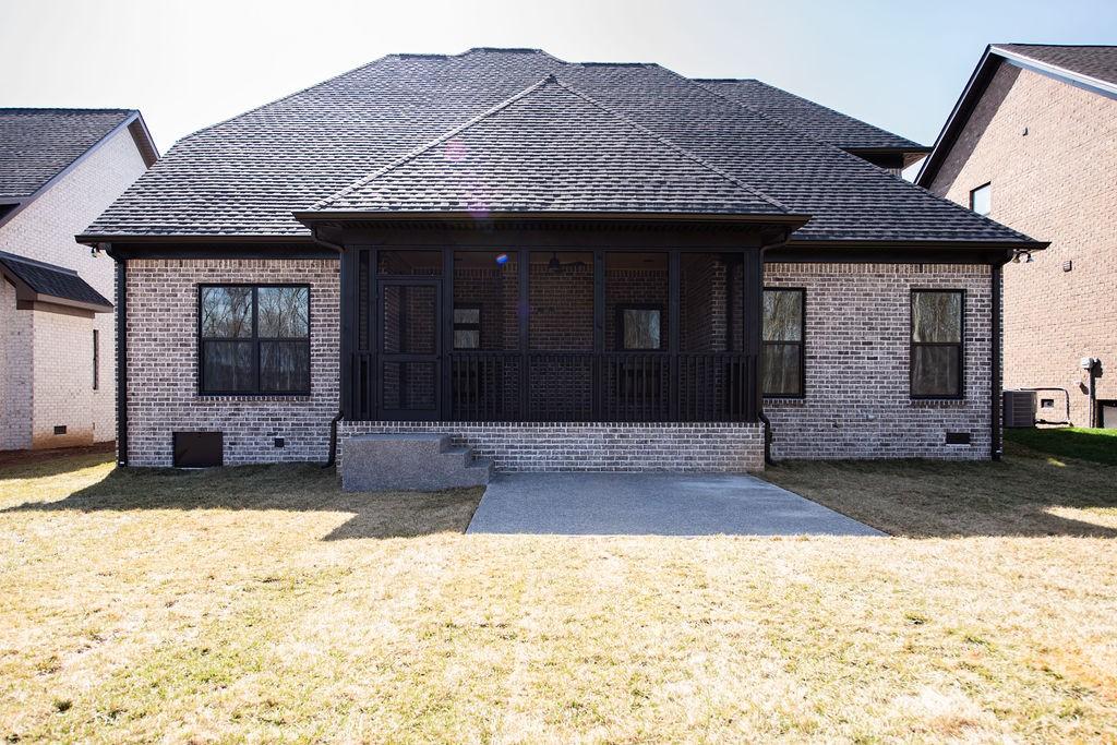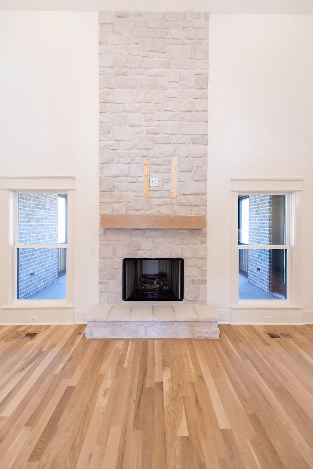 New Construction in Stonehollow Subdivision by Universal Builders – Plan #2717! This stunning all-brick home with stone accents offers 4 bedrooms and 3.5 baths with a thoughtfully designed layout and high-end finishes throughout. The primary suite and private study are located on the main level, while three additional bedrooms and a bonus room are upstairs, including Bedroom #2 with an ensuite bath. Enjoy sand-and-finish hardwood floors throughout the main level (excluding wet areas), stairway, and upstairs landing, with plush carpet in upstairs bedrooms and bonus room. The great room features a vaulted ceiling and a dramatic floor-to-ceiling stone surround gas fireplace, creating an inviting and elegant gathering space. The kitchen boasts custom wood cabinetry, quartz countertops, and premium GE Café appliances including gas cooktop, oven, microwave, dishwasher, and refrigerator. Quartz countertops continue in all bathrooms for a cohesive, upscale finish. The luxurious primary suite showcases custom white oak ceiling trim and a spa-inspired bath with a freestanding tub and floor-mount faucet, separate tiled shower, double vanities, and a large walk-in closet. Outdoor living is enhanced with a screened-in covered back porch plus a separate patio—perfect for relaxing or entertaining. Additional features include an epoxied and sealed garage floor, tankless water heater, and full yard sod. Quality craftsmanship, elegant finishes, and modern design make this home a must-see in Stonehollow Subdivision.