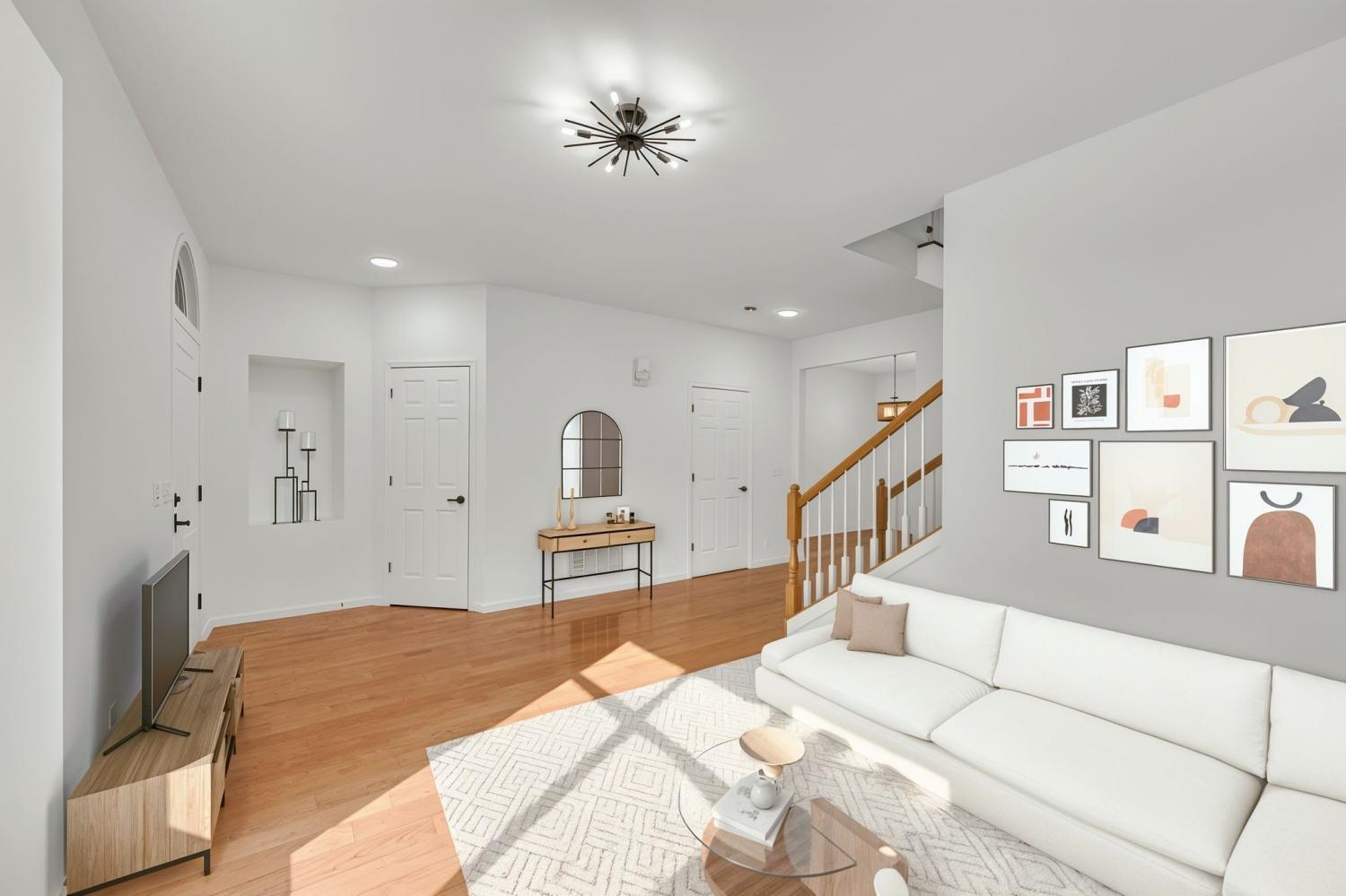 Completely stunning, fully updated townhome in an incredibly convenient location, featuring genuine hardwood flooring throughout. The basement level offers the perfect setup for a teen hangout or mother-in-law suite, featuring an open recreation area, laundry room, storage, and an office space. The kitchen has been beautifully remodeled with new countertops, new cabinets, a modern sink and faucet, and fresh tile flooring that continues into the eating area. The main-level half bath has also been refreshed with new flooring, a new toilet, and an eye-catching updated sink. Upstairs, you’ll find extra-large bedrooms, including the showstopper of the entire home: the luxurious master bathroom. It features tile floors, a full tile accent wall, a new glass-enclosed shower, a stand-alone soaking tub, and a double vanity. Outside, enjoy new landscaping and the convenience of two parking spots right out front.