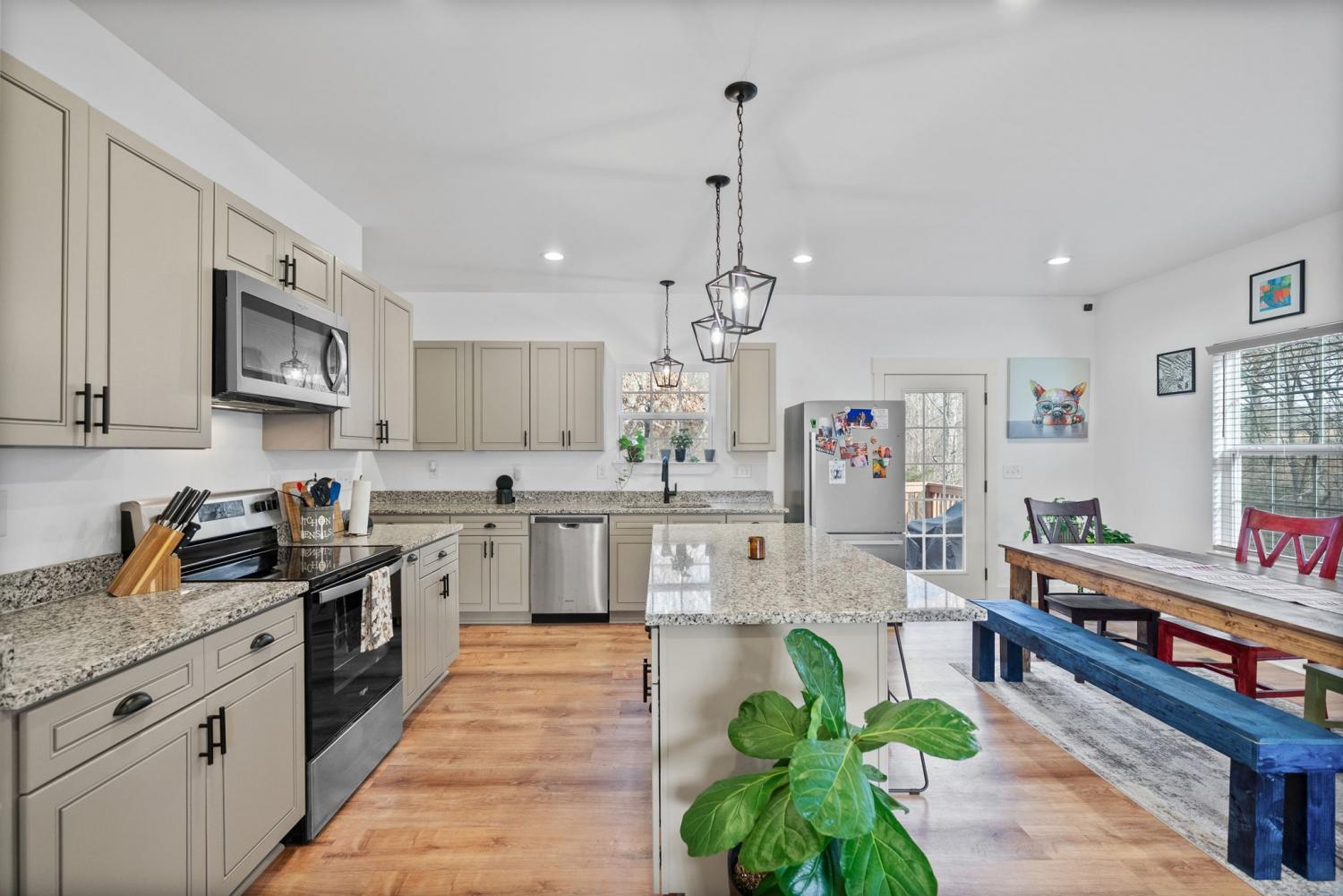 Like-new, move-in ready home at the end of a quiet cul-de-sac with minimal traffic. The open-concept main level offers seamless flow between the living, dining, and kitchen areas—perfect for entertaining or everyday living. The kitchen features stainless steel appliances, granite countertops, and a large island. Primary bedroom on the main floor. LVP flooring downstairs and carpet in upstairs bedrooms. No backyard neighbors, providing added privacy on the back deck. Eligible buyers may qualify for 0% down USDA financing. Conveniently located less than 7 minutes to things like Walmart, Kroger, Lowes, in Springfield. Tons of restaurants, food and entertainment nearby.