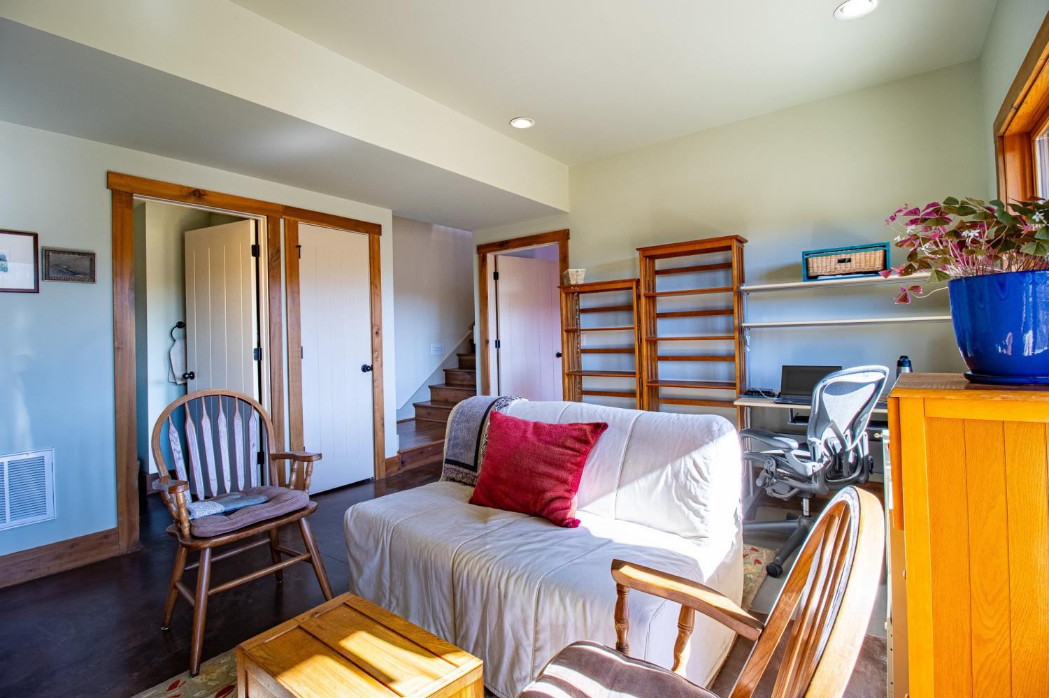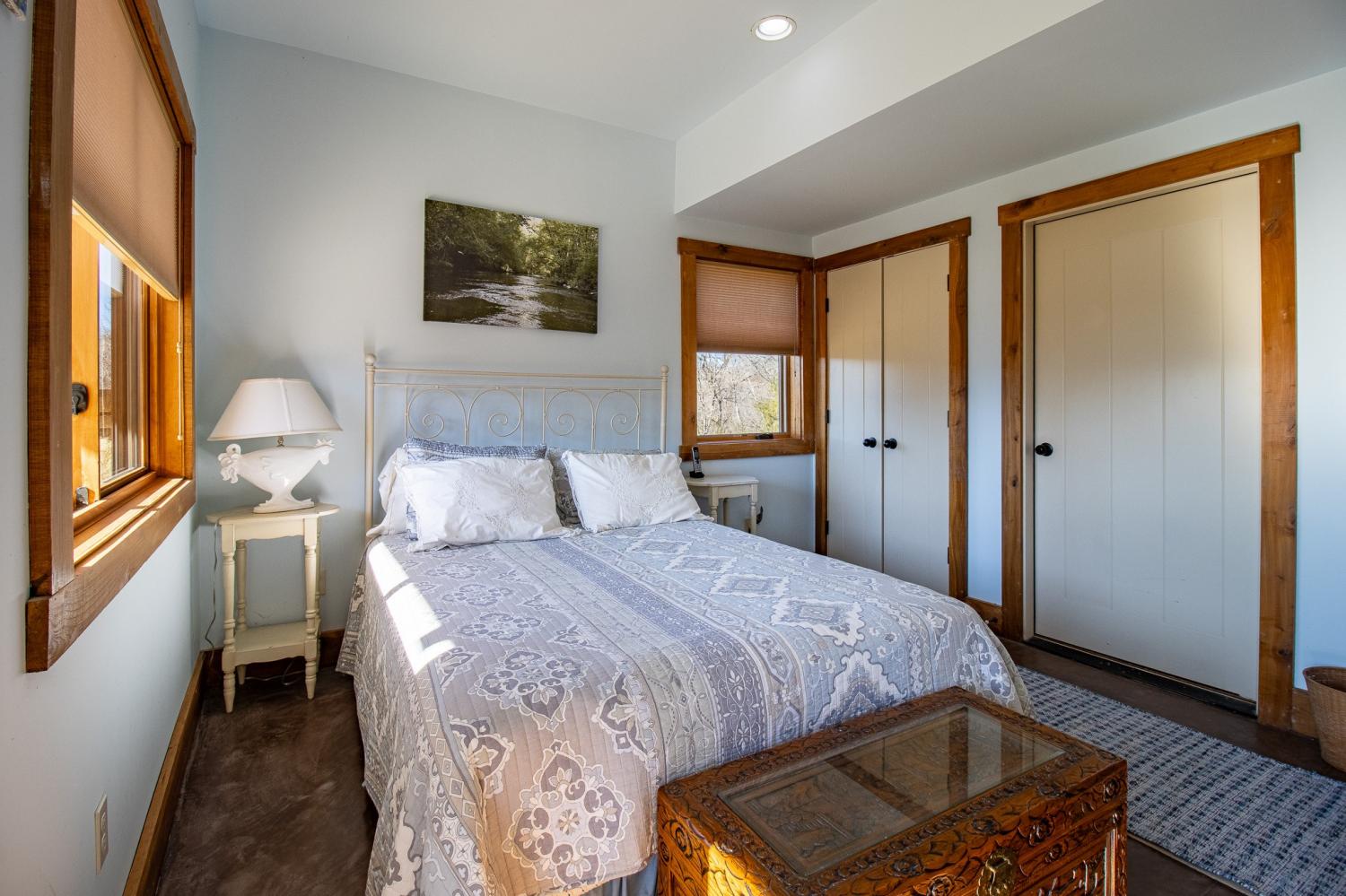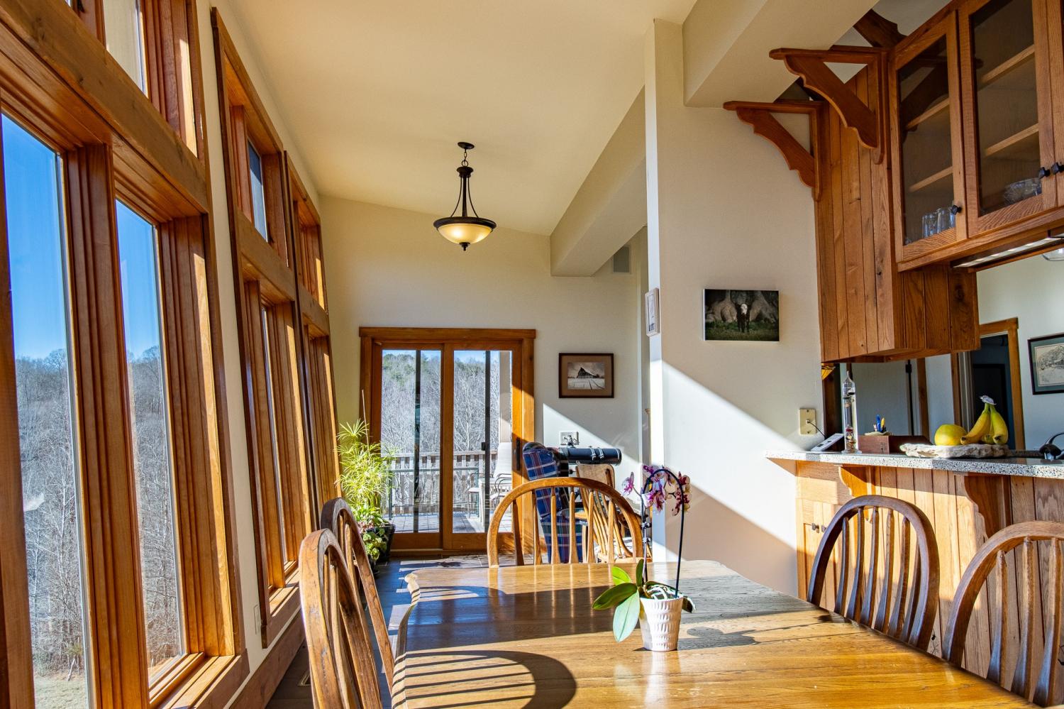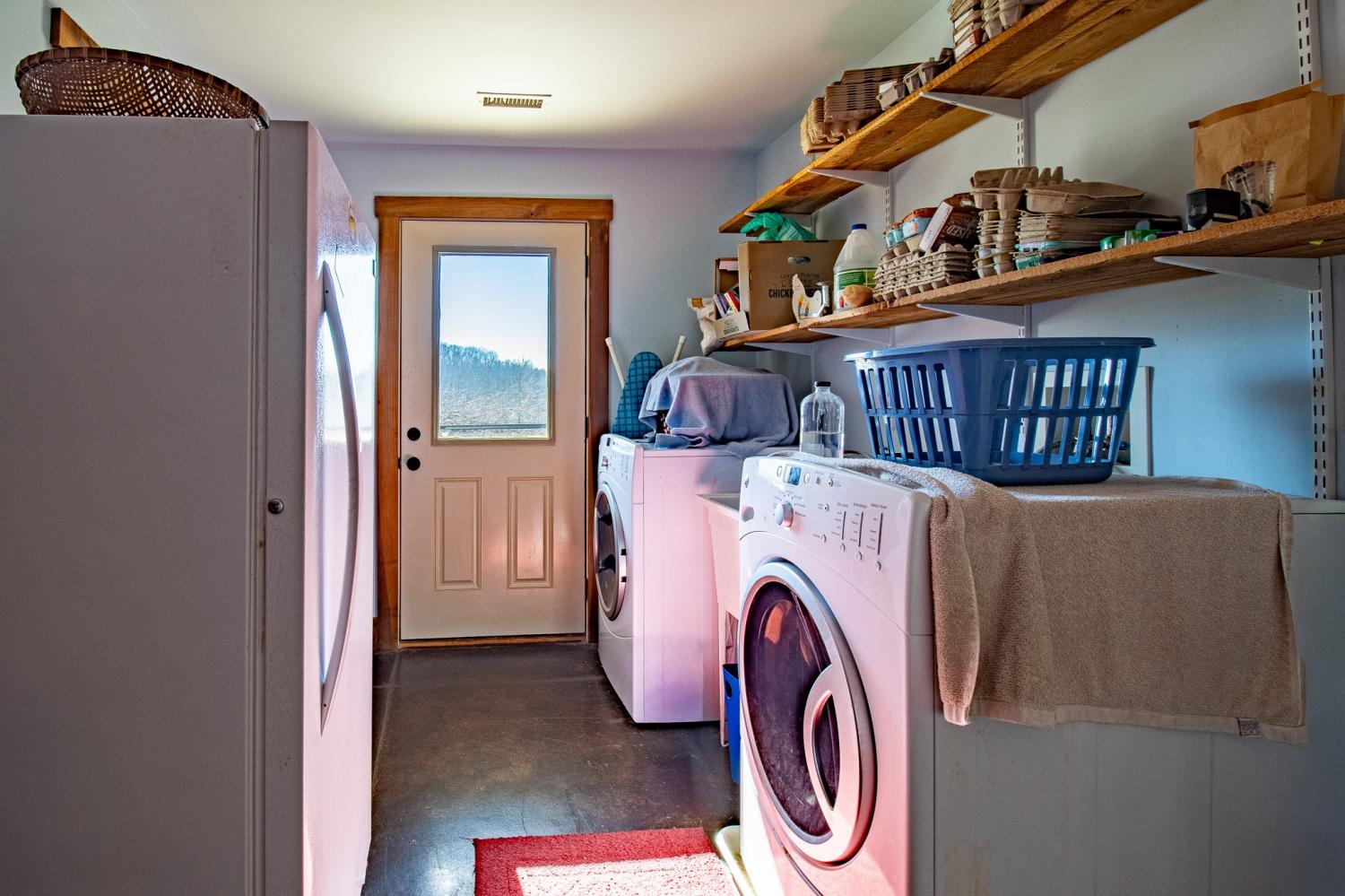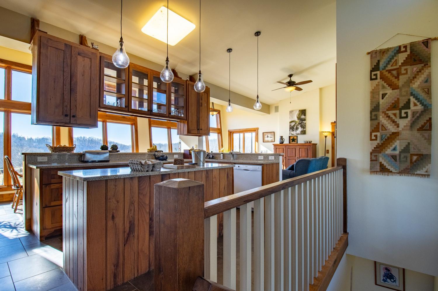 Grow Your Own Food. Produce Your Own Power. Live Exceptionally Well, Nestled in Nature. This LEED Platinum–certified home blends sustainability, craftsmanship, and agricultural abundance. Designed by Exoterra Architects and built by Ryan Nichols with Green Home, it exemplifies stewardship focusing on resource efficiency, resilience, and cultivates an intimate connection with the land. The main level features a vaulted ceiling, open floor plan, and expansive views of rolling hills and pasture. The primary suite on the main level offers dual vanities, tiled walk-in shower, and a south-facing porch overlooking dry-stacked stone terraces and gardens. Constructed with reclaimed materials throughout, the home showcases custom oak kitchen cabinetry, oak flooring and recycled glass countertops. The lower level opens to grade and includes a sitting room with a Morso wood-burning stove, laundry room, built-in root cellar, full bath, and second bedroom with walk-out patio. Exterior finishes include locally harvested fieldstone and Nichiha siding. This home works WITH nature and resource resilience is built in with solar array, geothermal HVAC system, three EV charging stations, Ford home integration system (use a compatible Ford truck as backup power), passive solar design that captures winter sun and stays shaded in summer, rainwater harvesting system and energy star appliances. A rare highlight is the mature blueberry grove, producing hundreds of pounds annually. The property also features a 5-year-old chestnut orchard with 25 trees, fenced fields, muscadine grape vines, and established gardens—ideal for farm-to-table living. A 20' x 40' two-bay farm shed with an enclosed shipping container provides excellent storage or workshop space. See 3D tour. Listing agent can meet for a guided tour of the home and land with advanced scheduling.