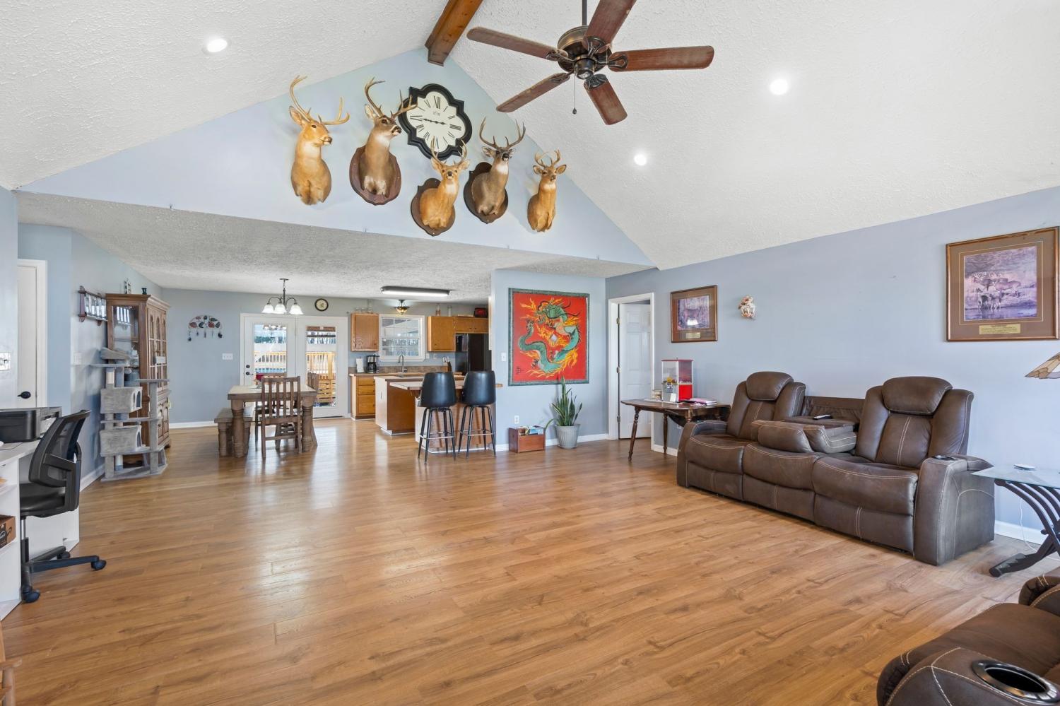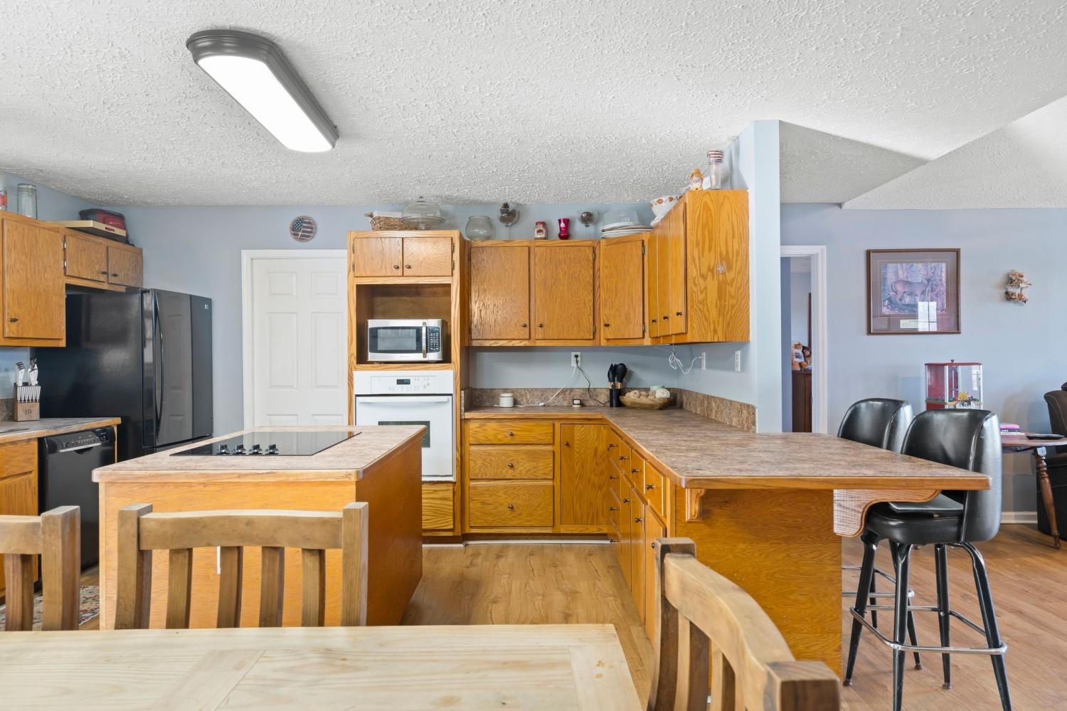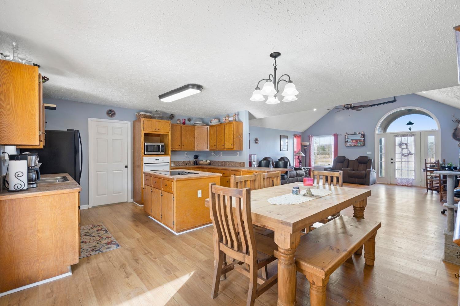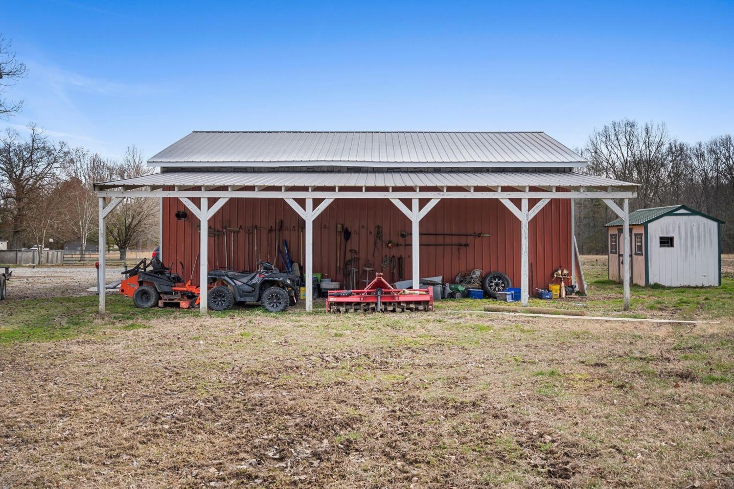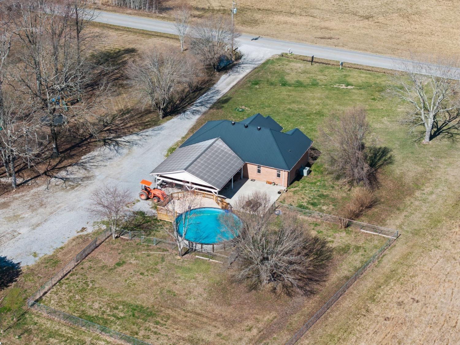 Welcome to a rare opportunity to own a true homestead-ready property offering 16.5 level, usable acres, a large workshop, fenced chicken coop area and the infrastructure needed for farm, hobby, or rural living. This all brick, 3 bedroom, 2 bath ranch-style home provides an open floor plan perfect for everyday country life. The upstairs area of this ranch home offers a large attic/storage area that is partially drywalled already for future expansion. A substantial (30'x40') shop building with tall ceiling and concrete floor supports equipment storage, livestock, and serious workshop use. Shop has separate electric meter. Covered areas and fenced spaces allow for immediate use for animals, gardens, or expansion of a working homestead. A fenced chicken coop with dedicated water spigot supports easy, everyday homestead living, while the above-ground pool with newer deck offers a perfect place to unwind and enjoy peaceful country views. Outdoor features include a covered rear area, large concrete pad, and an above-ground pool with surrounding deck—ideal for relaxing after a day on the land. Mature fruit trees (apple and pear) and a 1-acre garden patch are established for your enjoyment. The acreage offers privacy, flexibility, and room to grow, whether your vision includes farming, recreation, or simply slowing down. Properties with this combination of land, infrastructure, and versatility are increasingly hard to find. Wonderfully low taxes! Schedule your showing soon to experience the full potential this property offers.